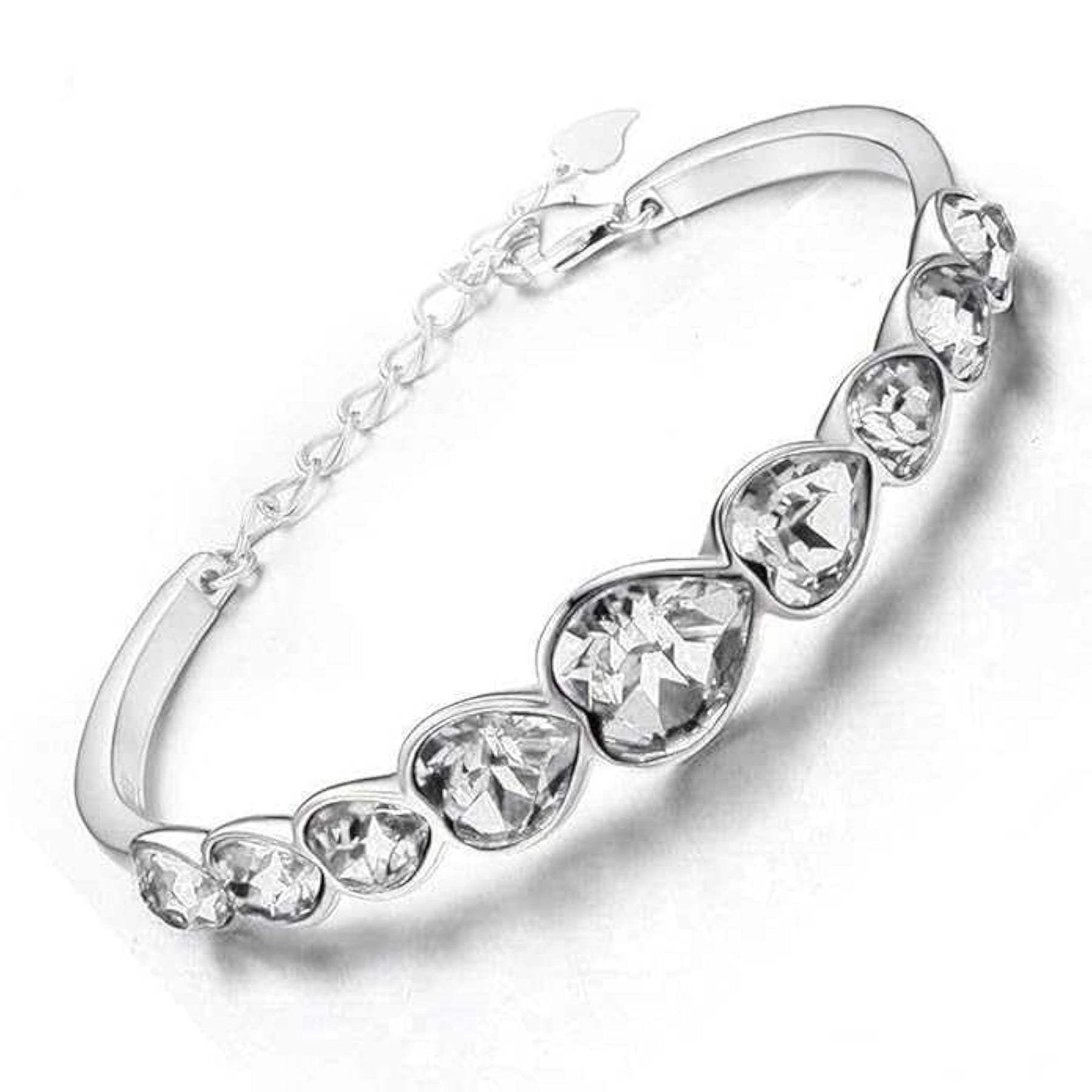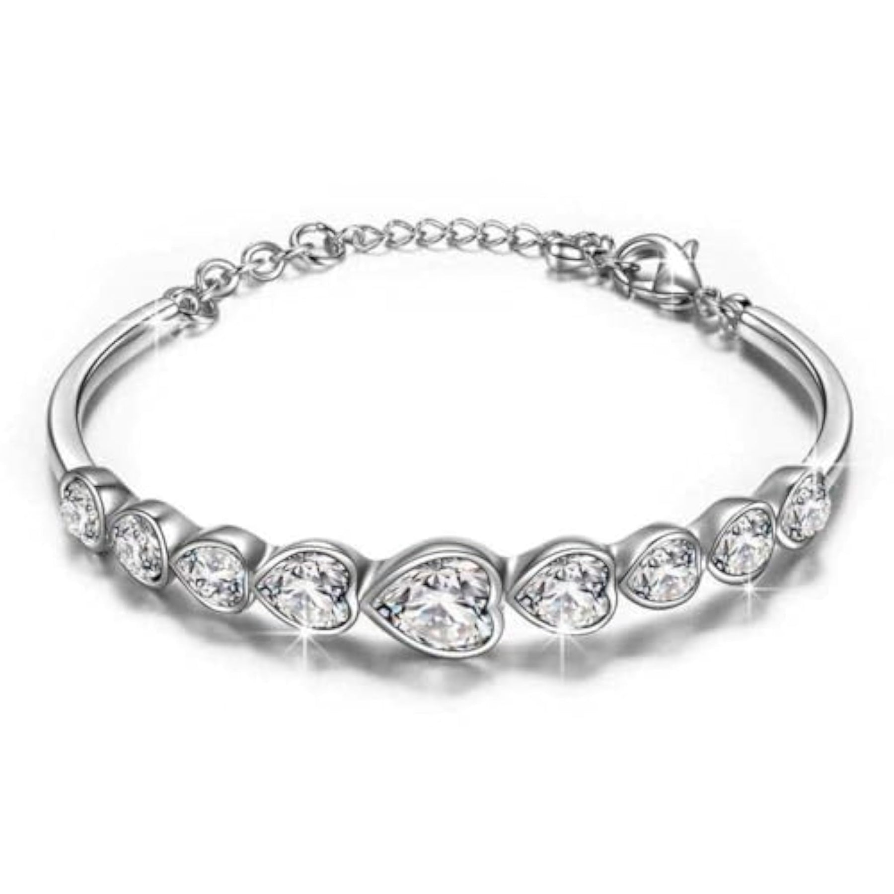 This elegant silver plated heart bracelet is a perfect accessory for teen girls. Adorned with sparkling cubic zirconia stones, it features a secure lobster claw closure.