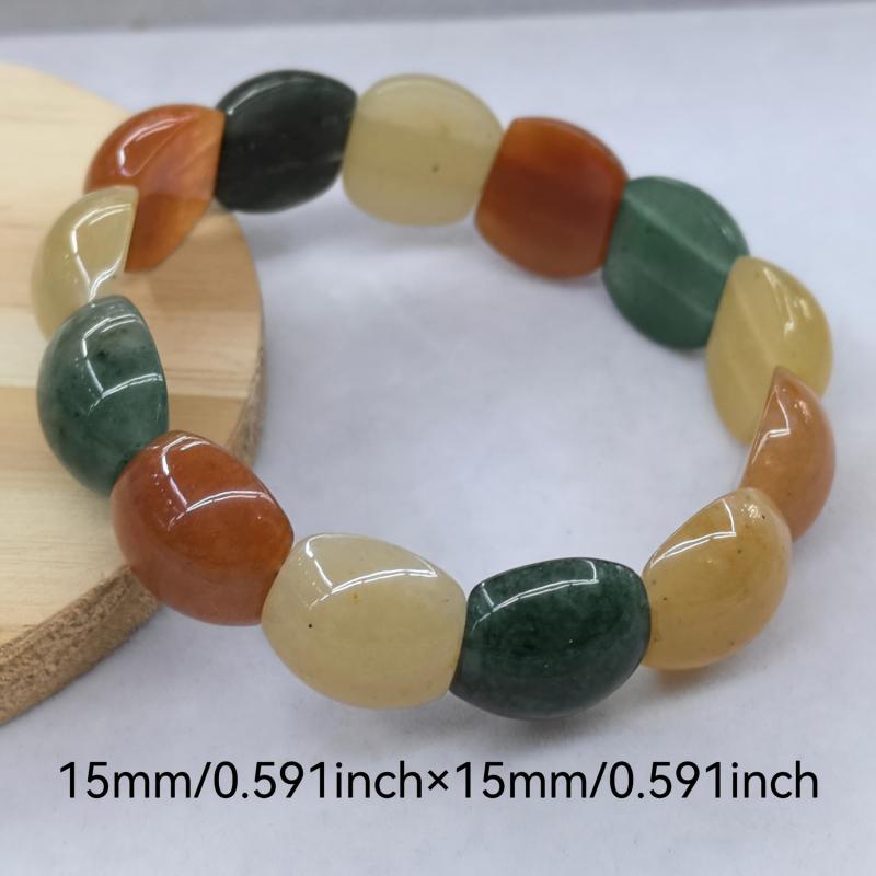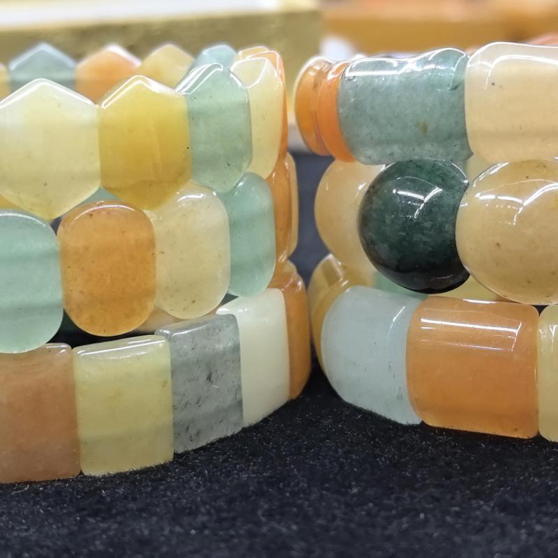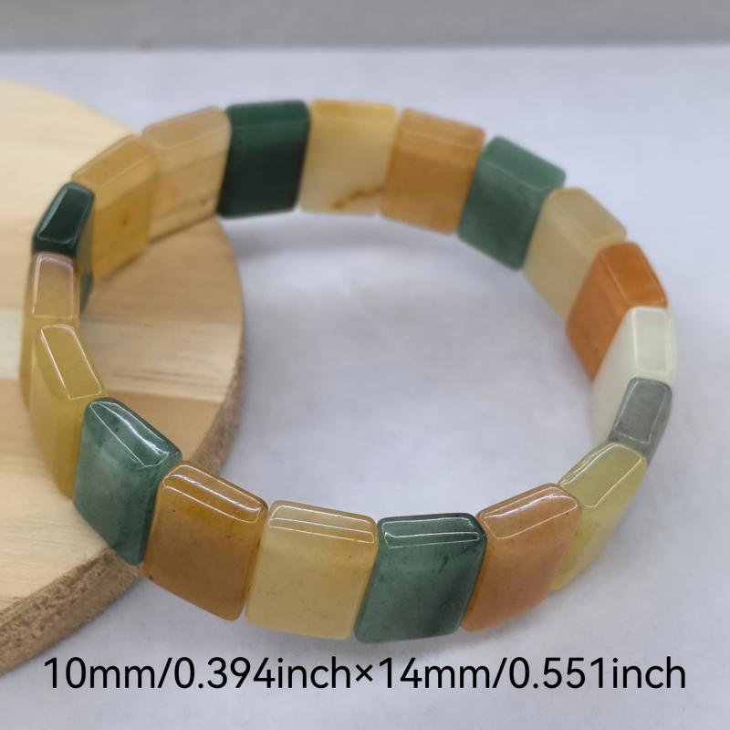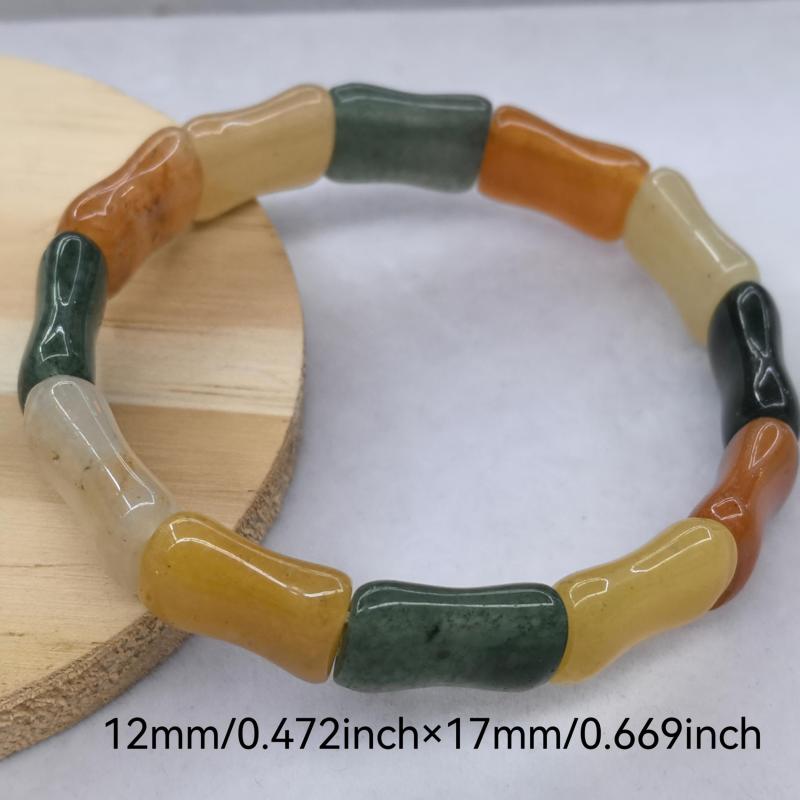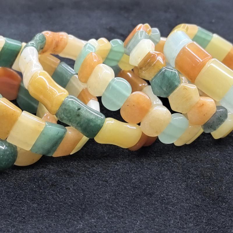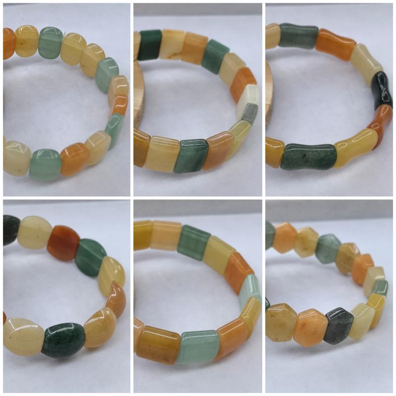 Add a touch of bohemian style to your look with this colorful aventurine stone bracelet featuring square, half round tube, and bamboo shapes. Perfect for casual attire and a great addition to your bohemian jewelry collection.