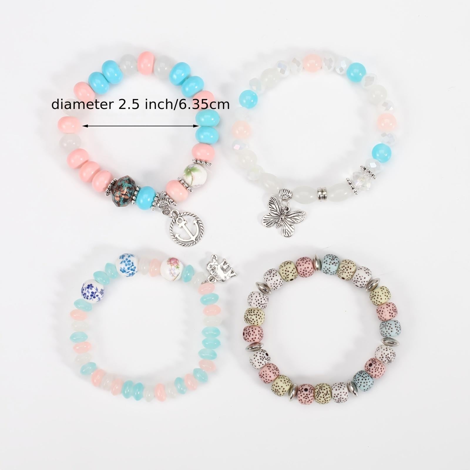 This Bohemian layered bracelet features elephant, anchor, and butterfly shaped pendants. It is stretchable, stackable, and perfect for summer beach jewelry. Suitable for both men and women.