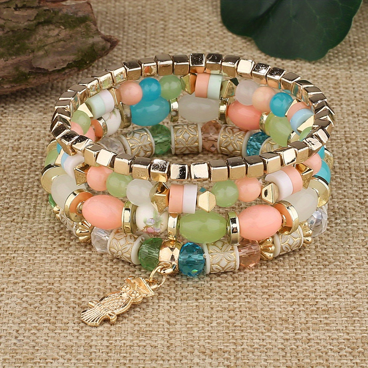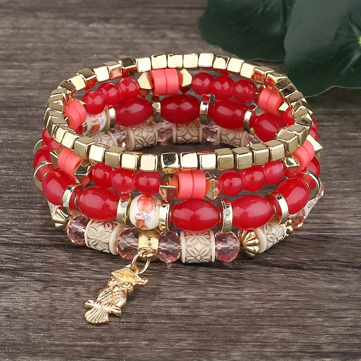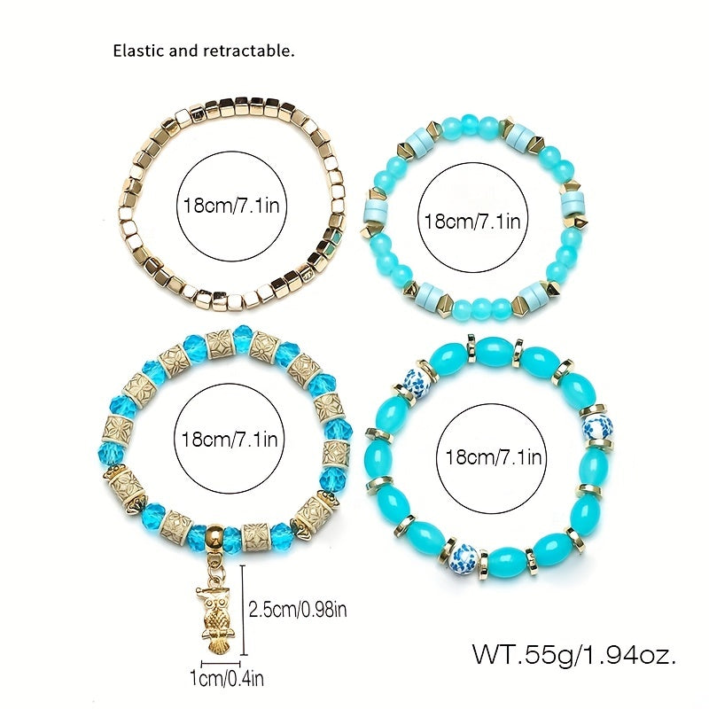 This bracelet features a bohemian style with beaded design, owl pendant, and can be used as both a hand ring and couple bangle. Perfect for adding some charm to your outfit.