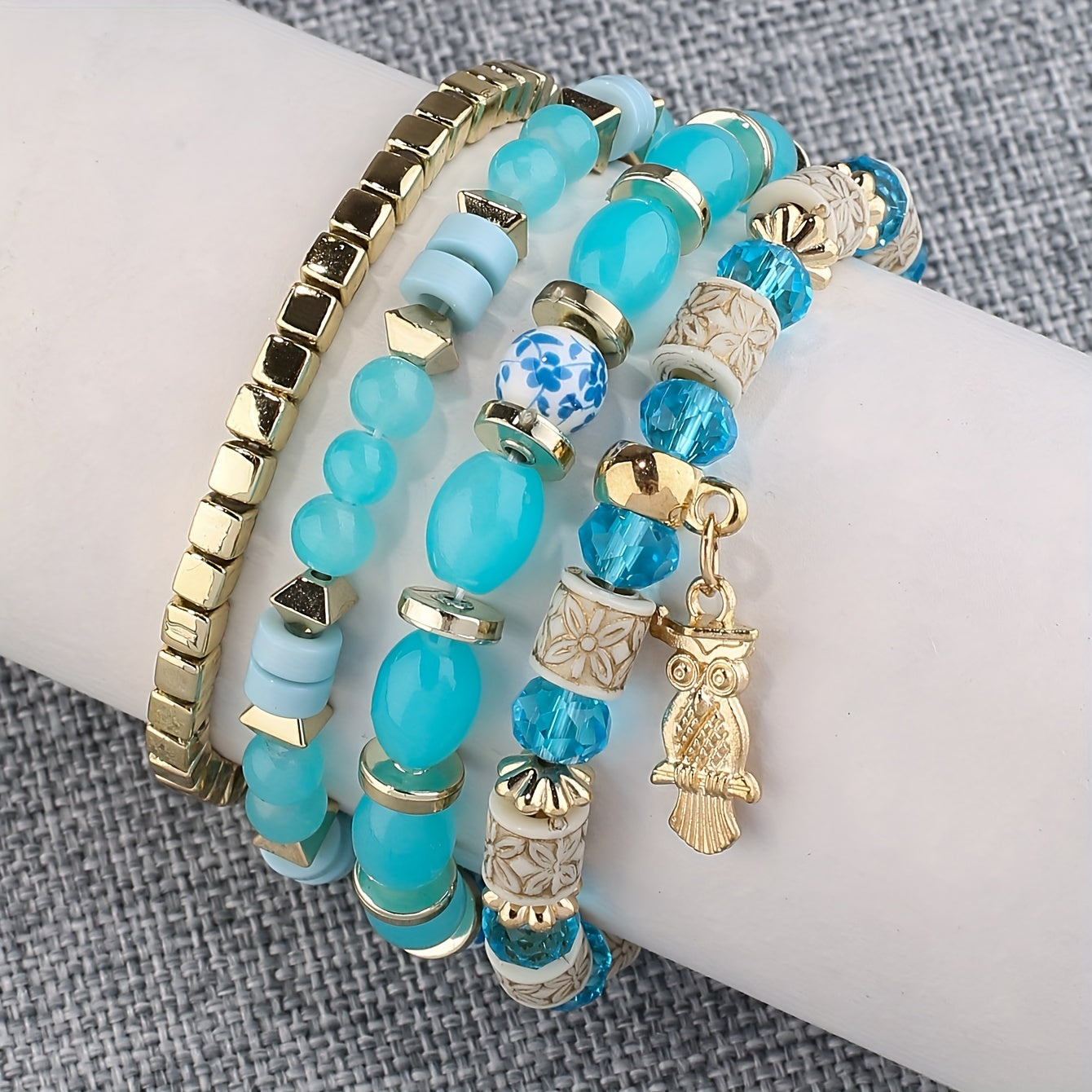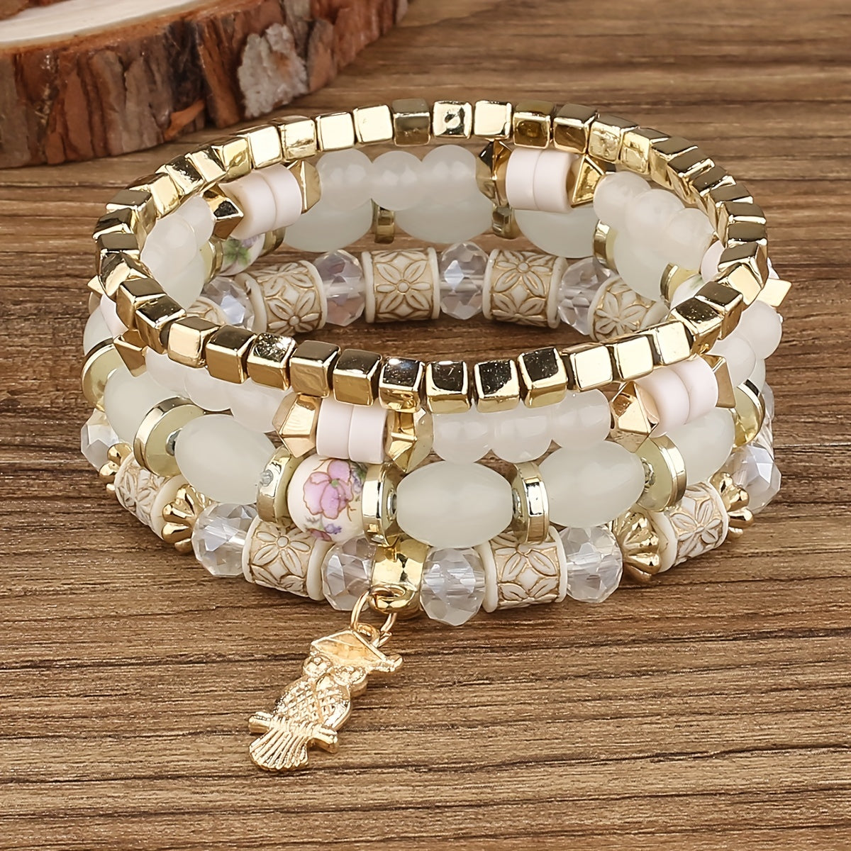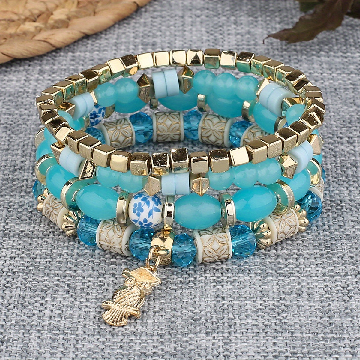 This bracelet features a bohemian style with beaded design, owl pendant, and can be used as both a hand ring and couple bangle. Perfect for adding some charm to your outfit.