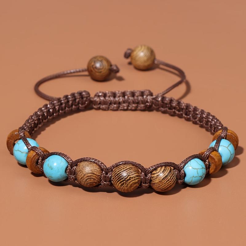 Unisex lucky gift bracelet perfect for parties, teachers' back to school, graduation season. Made with turquoise and coffee brown colors.
