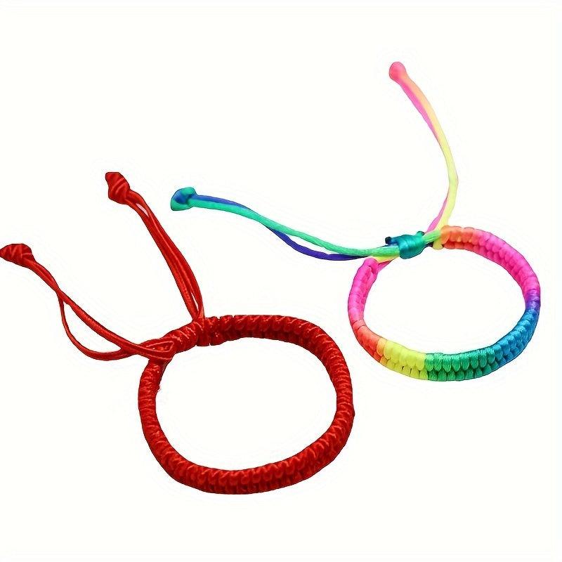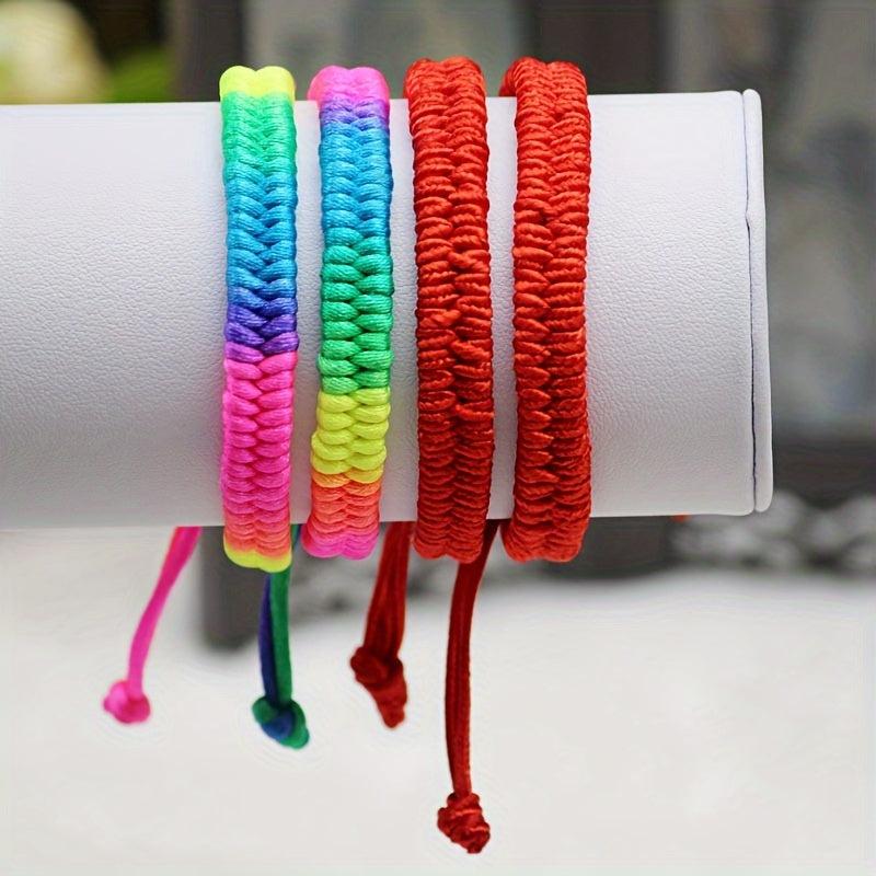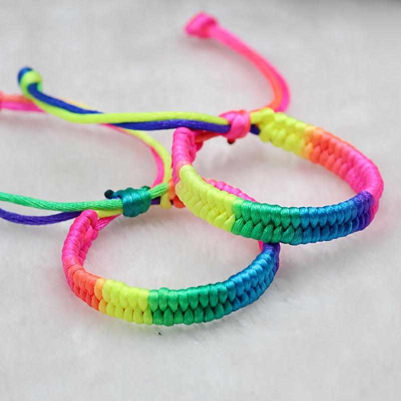Add a pop of color to your look with this bohemian braided rainbow slider bracelet. The adjustable design ensures a perfect fit for your wrist.