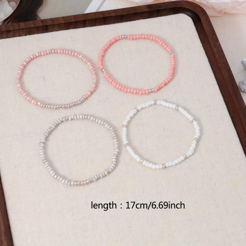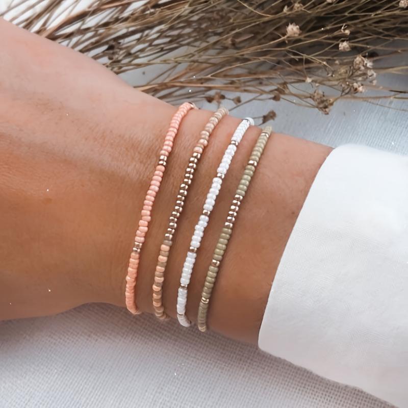 Enhance your daily style with this 4-piece bohemian beaded bracelet set perfect for casual wear and vacation. Mix and match for a fun look.