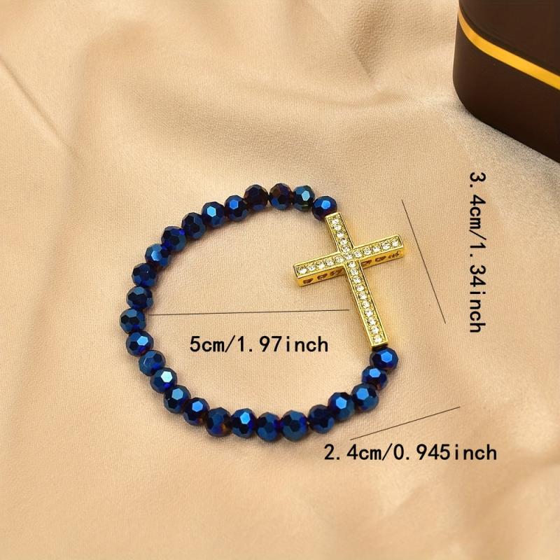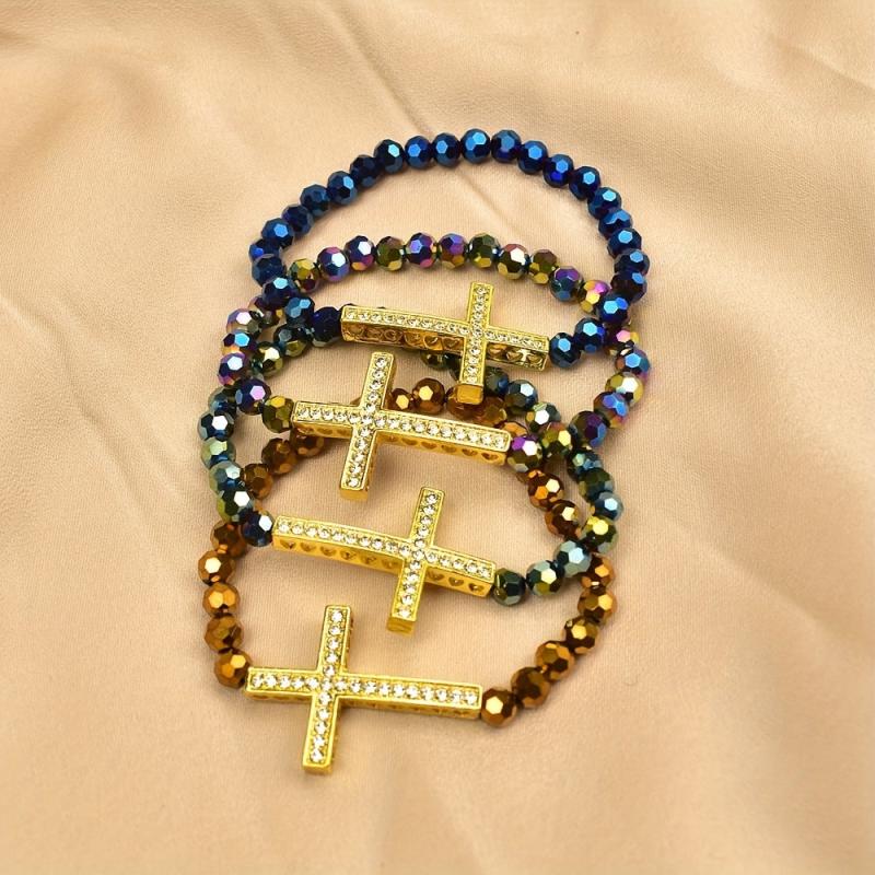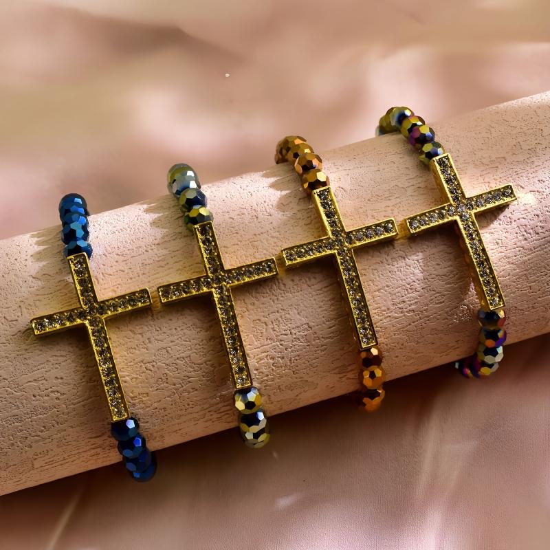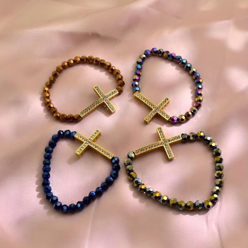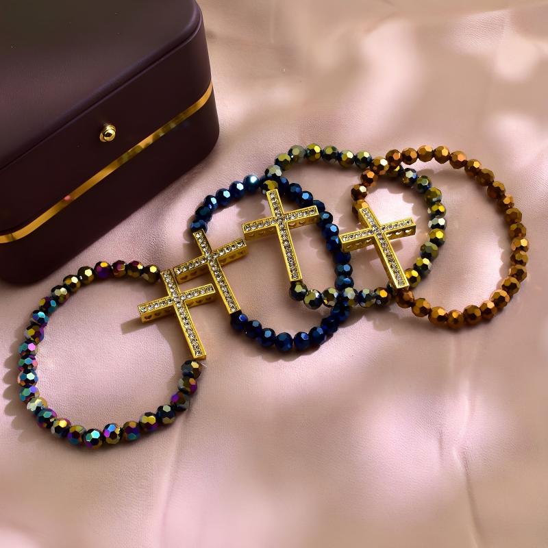 This 4-piece bracelet set features a classic bohemian style with cross element design. It is perfect for daily wear and makes a thoughtful gift for religious occasions.