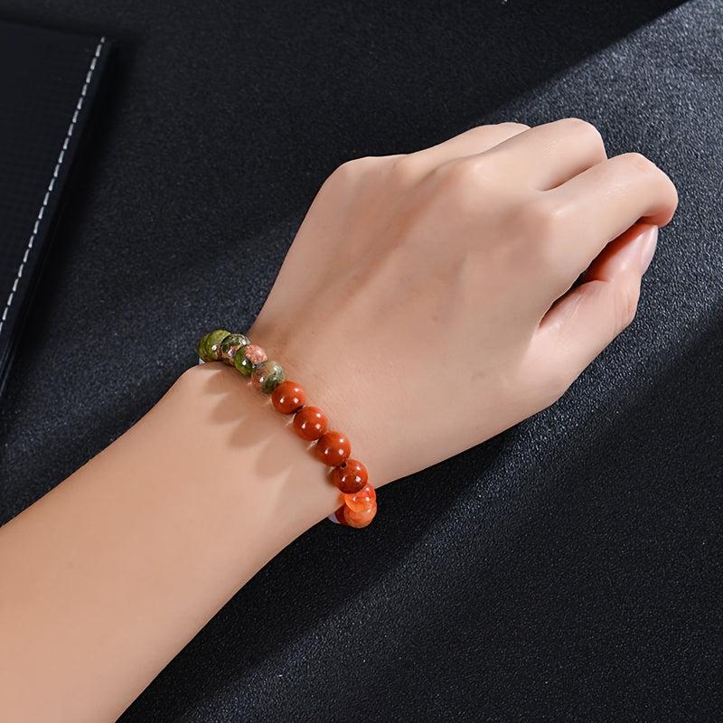 This set of 8mm stone beaded bracelets is perfect for yoga enthusiasts, friends, and family. The bohemian style adds a touch of nature-inspired beauty to any outfit.