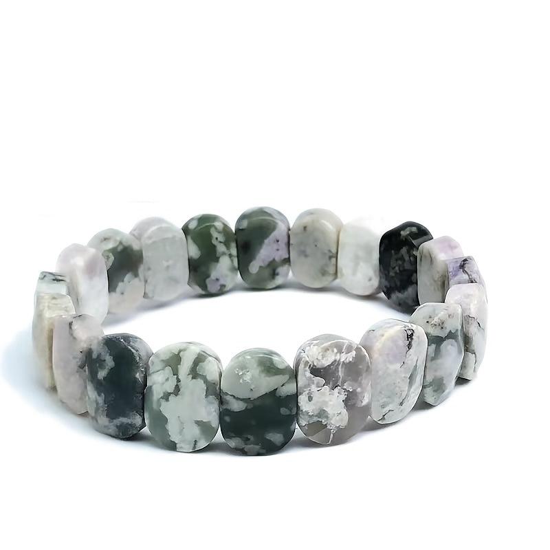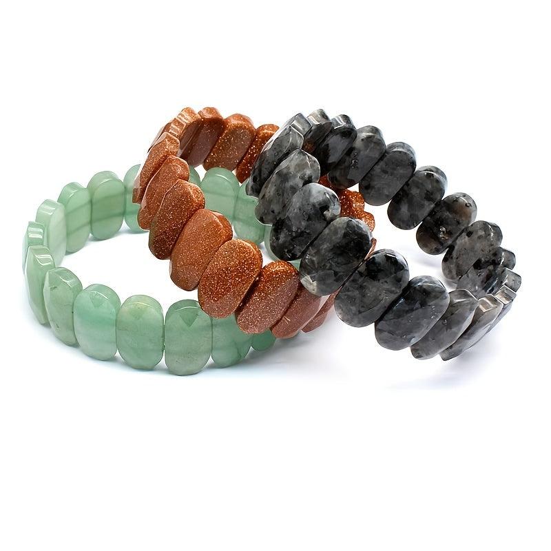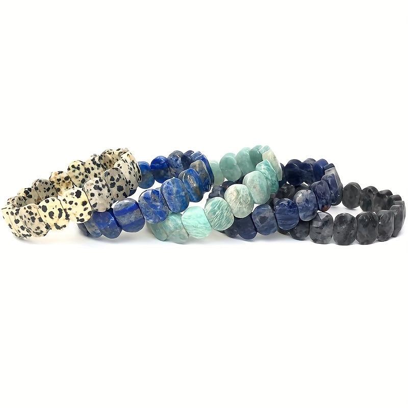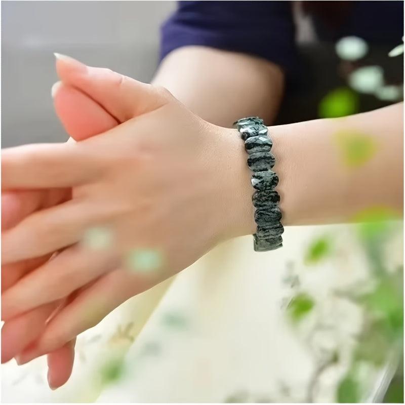 This bohemian style bracelet features green natural stones and an elastic band, suitable for both men and women.
