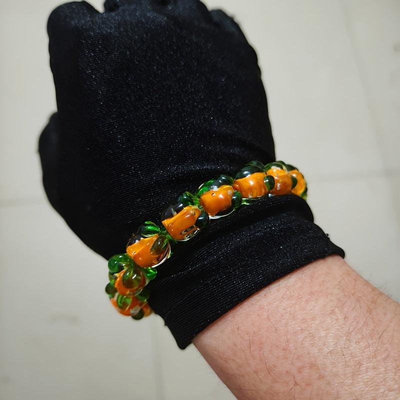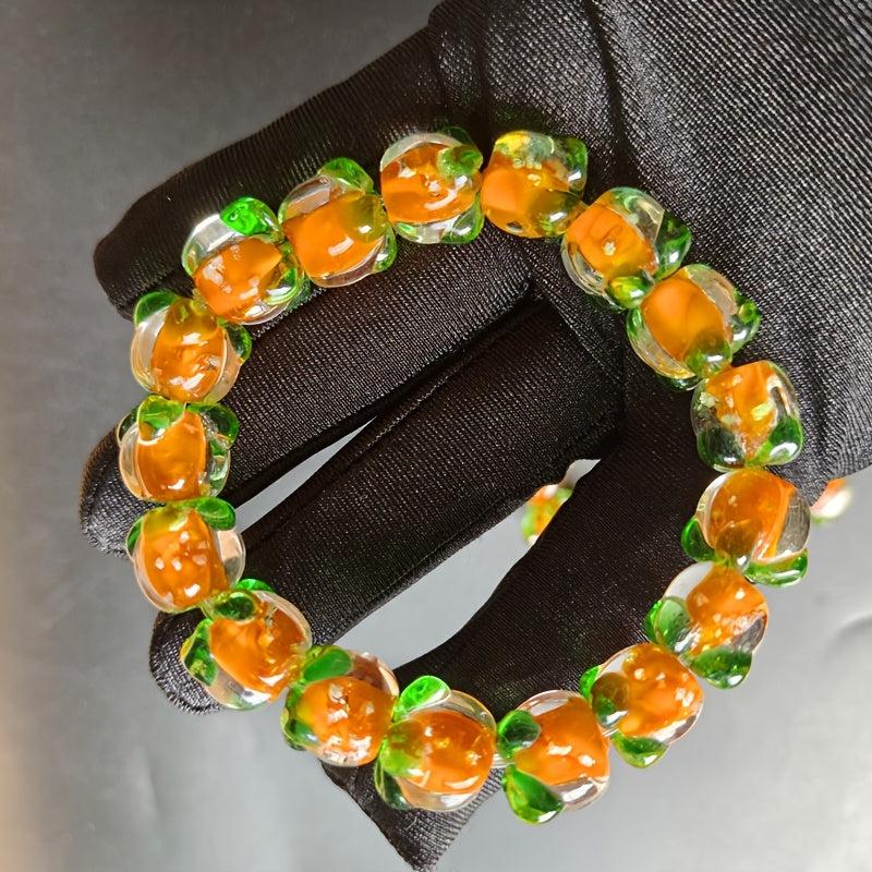 Add a touch of playfulness to your outfit with this bohemian beaded bracelet. Featuring orange and green synthetic stone beads in a gradient design, this bracelet is a perfect gift for graduation parties or year-round wear.