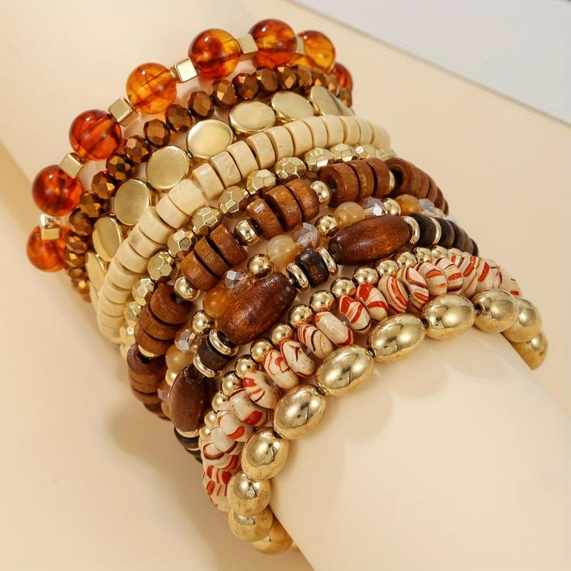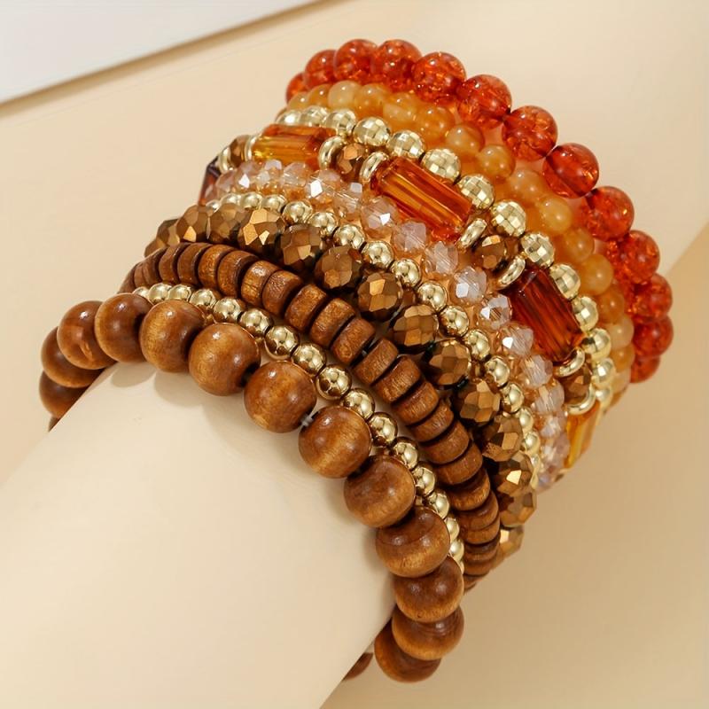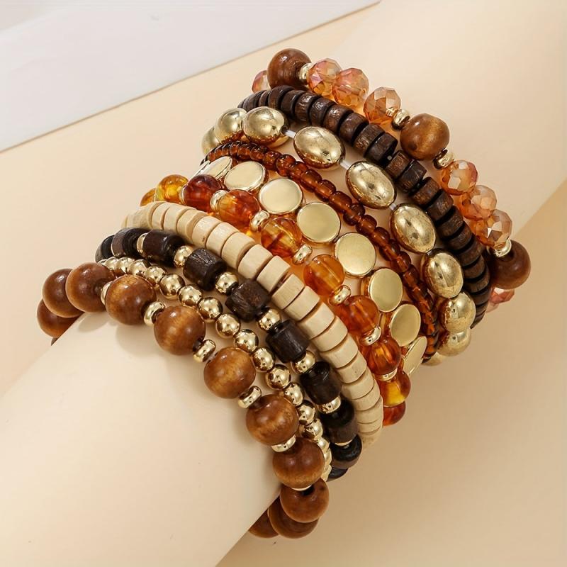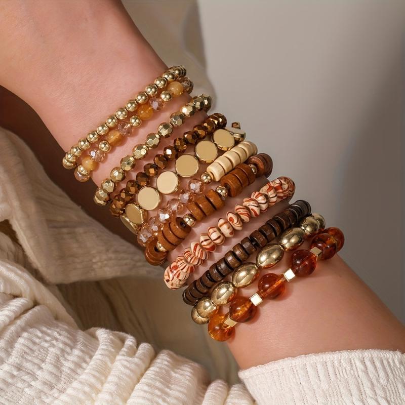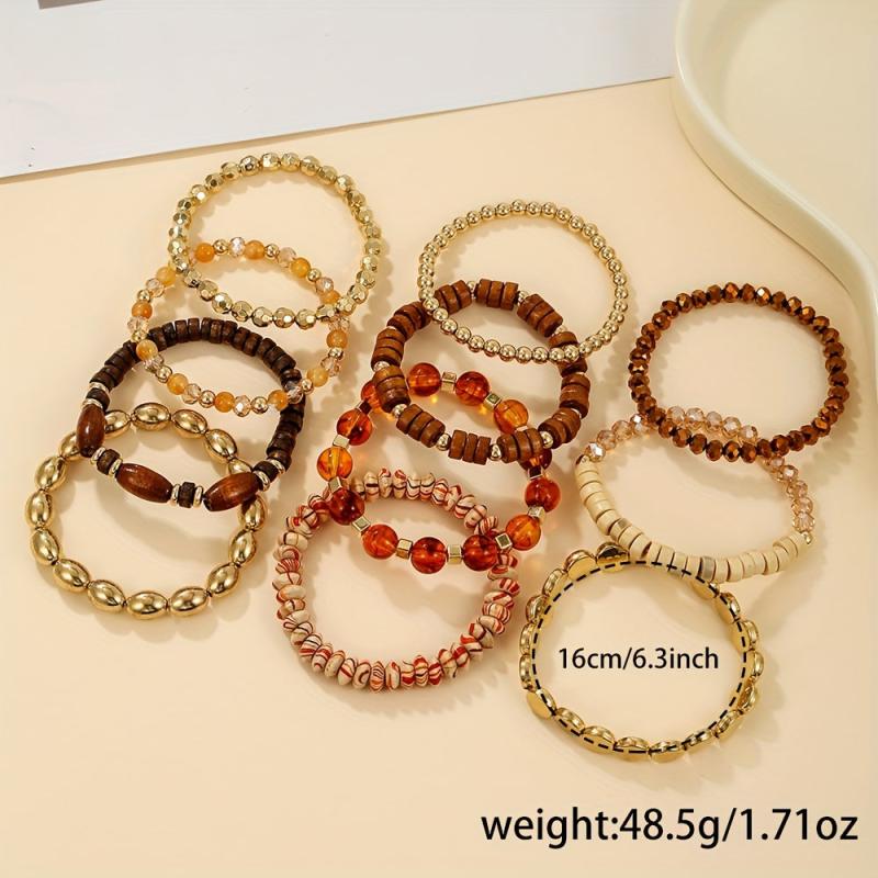 Elevate your style with this 10 11pcs beaded bracelet set made of acrylic, wooden, and CCB beads. Perfect for parties and versatile for all seasons.