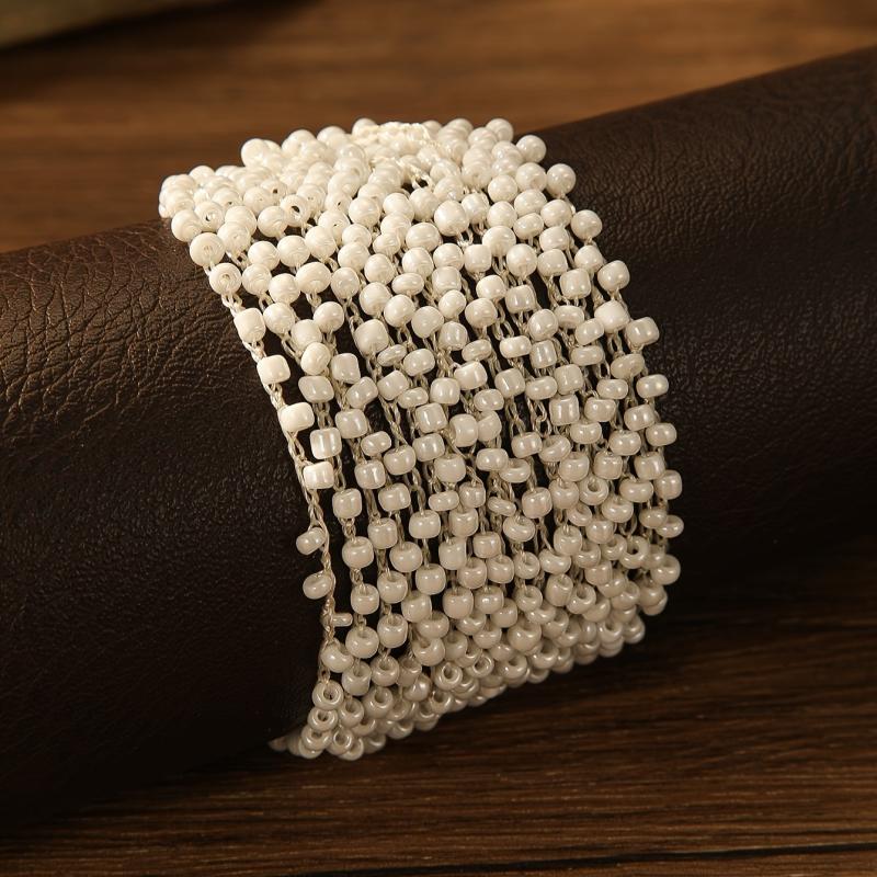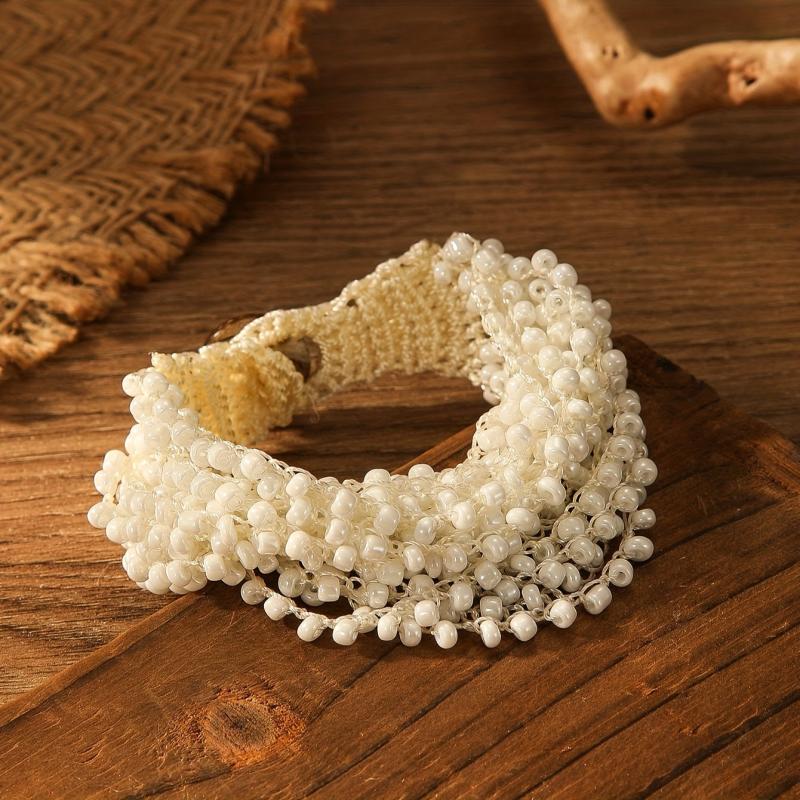 This boho beaded bracelet features a vintage crochet style, perfect for festivals and casual wear.