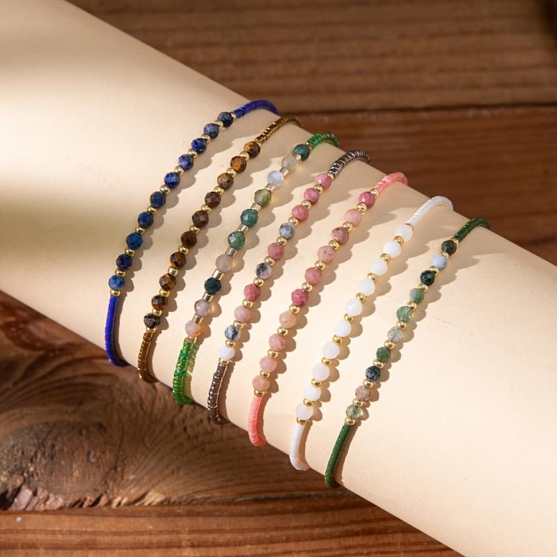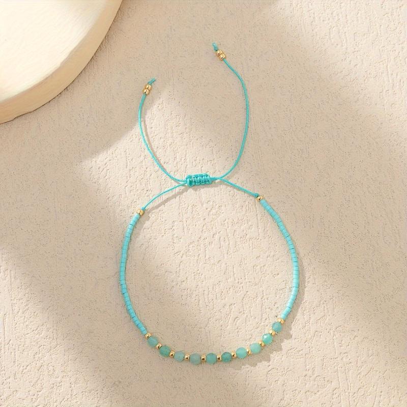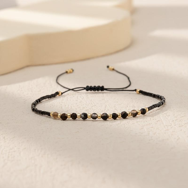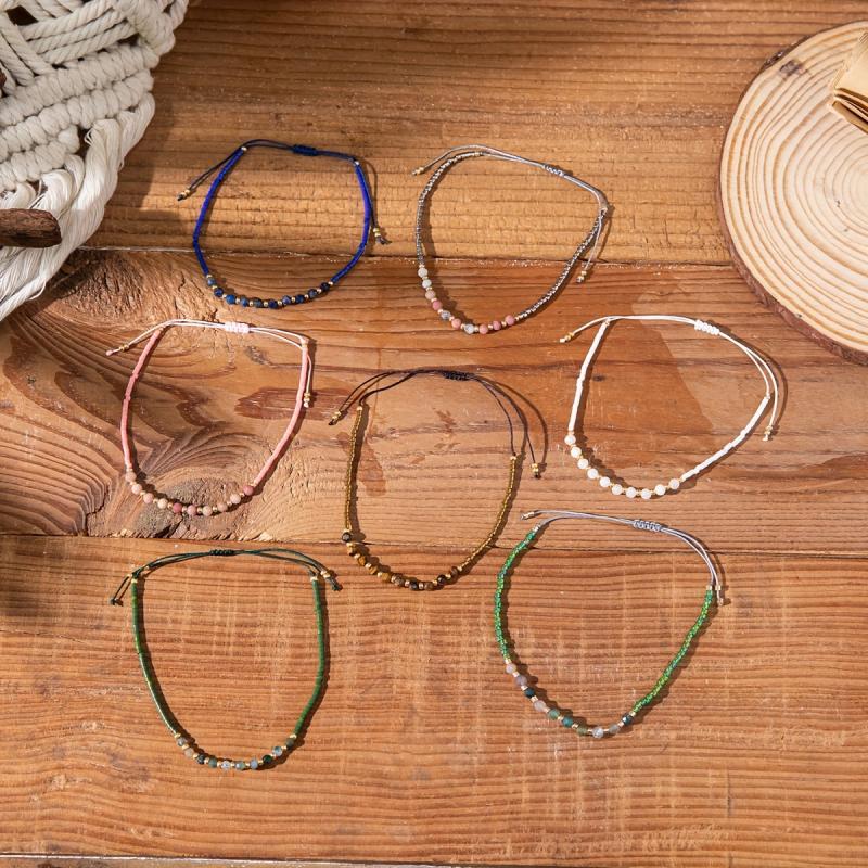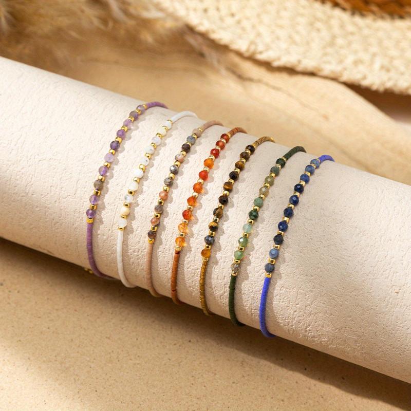 Elevate your style with this handwoven beaded bracelet featuring natural stone and glass seeds. Perfect for a boho-chic look.
