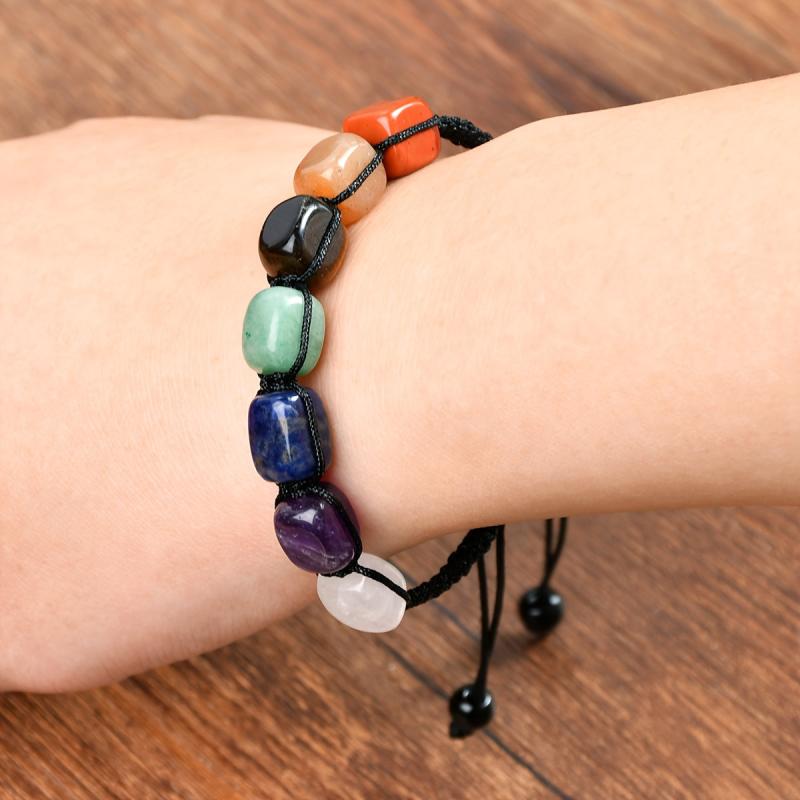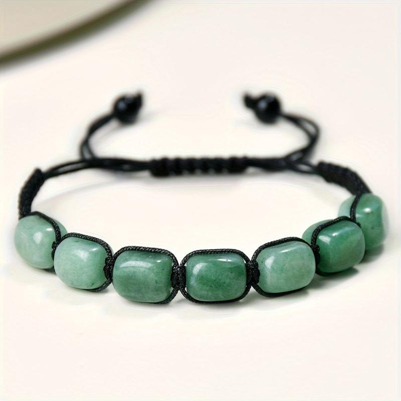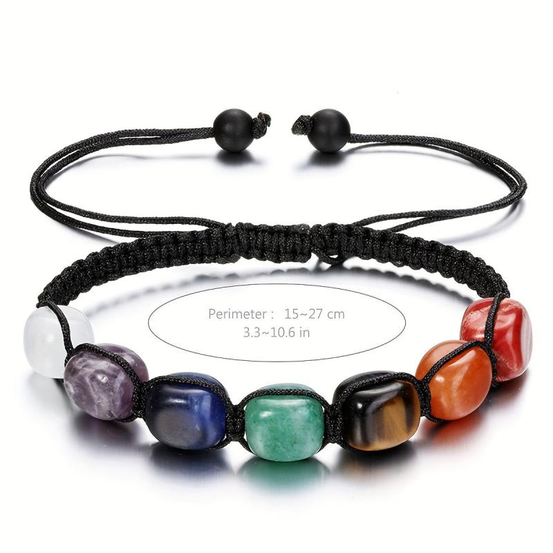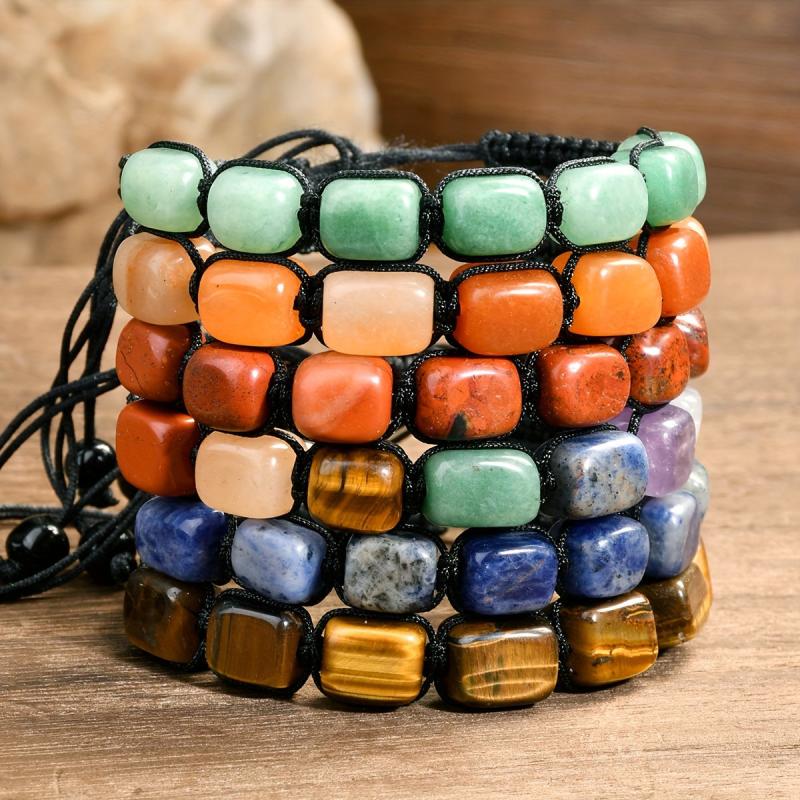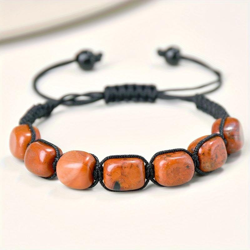 Elevate your summer look with this bohemian braided bracelet featuring natural stone beads in earthy tones. Perfect for beach vacations and casual wear, this unisex bracelet has an elastic cord closure for easy wear.