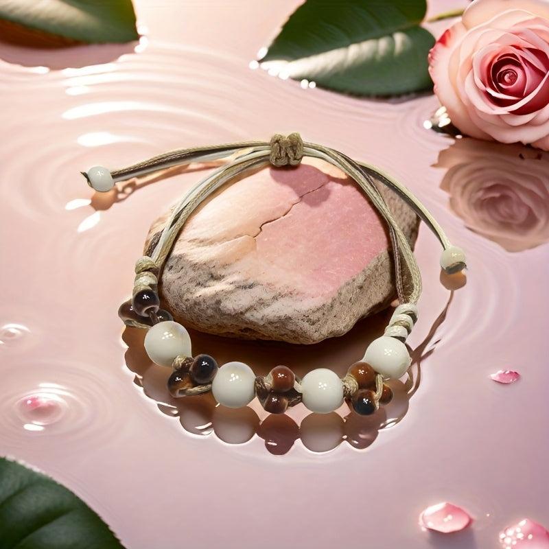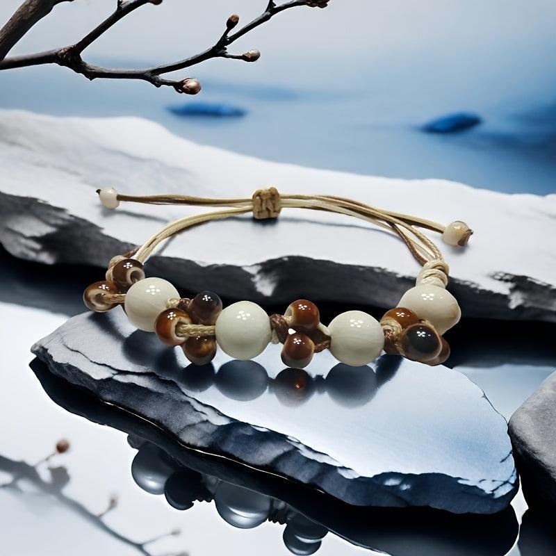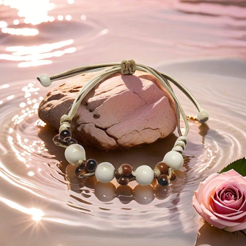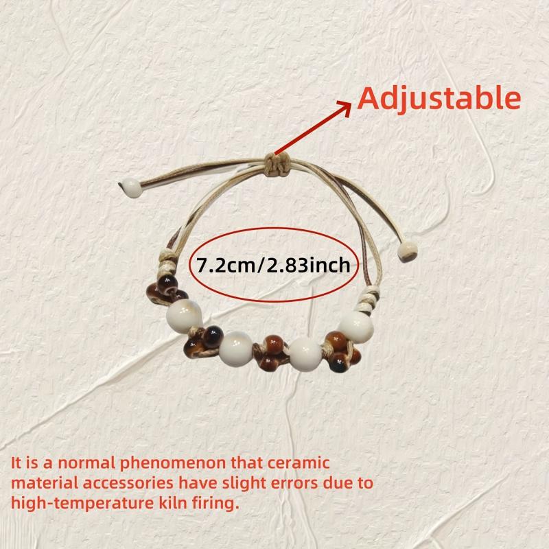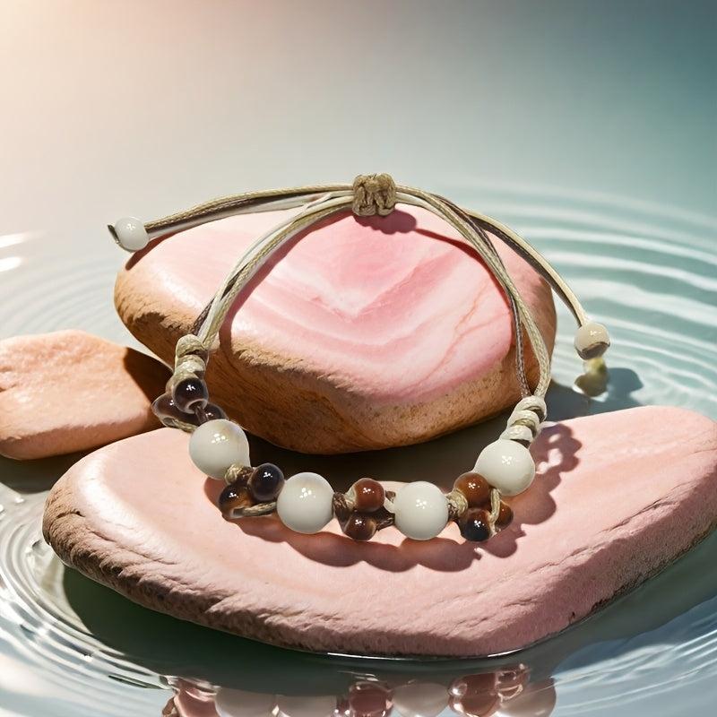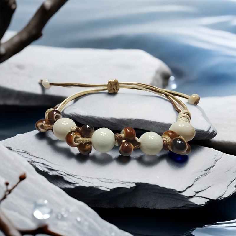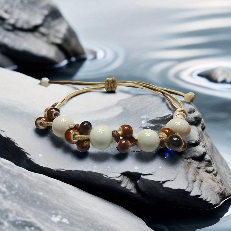 This boho ceramic bead bracelet features an ice crack texture with beige and brown ceramic beads. It is perfect for casual attire, travel, parties, and gifting.