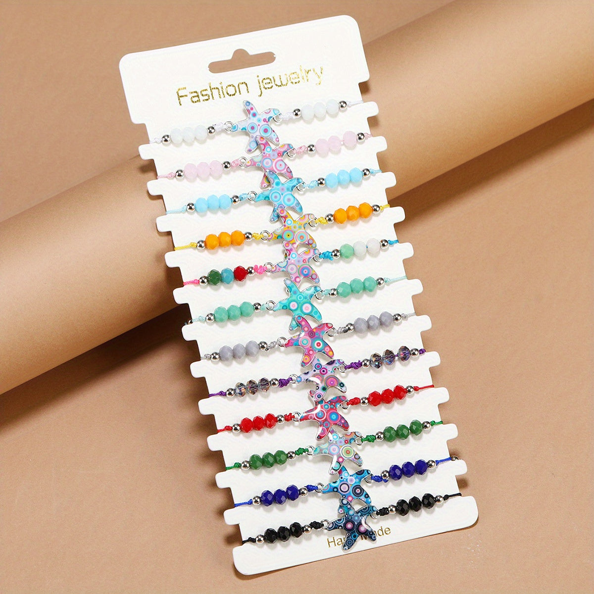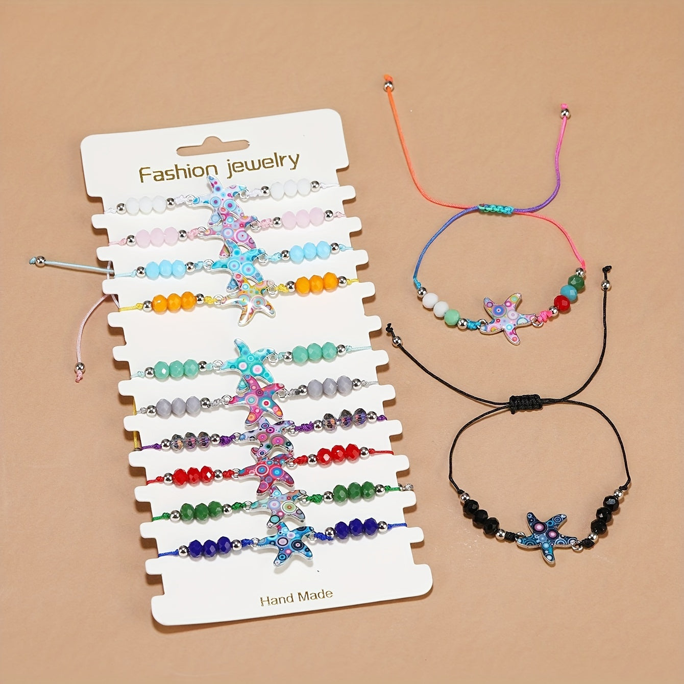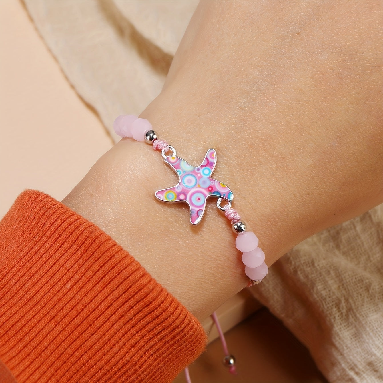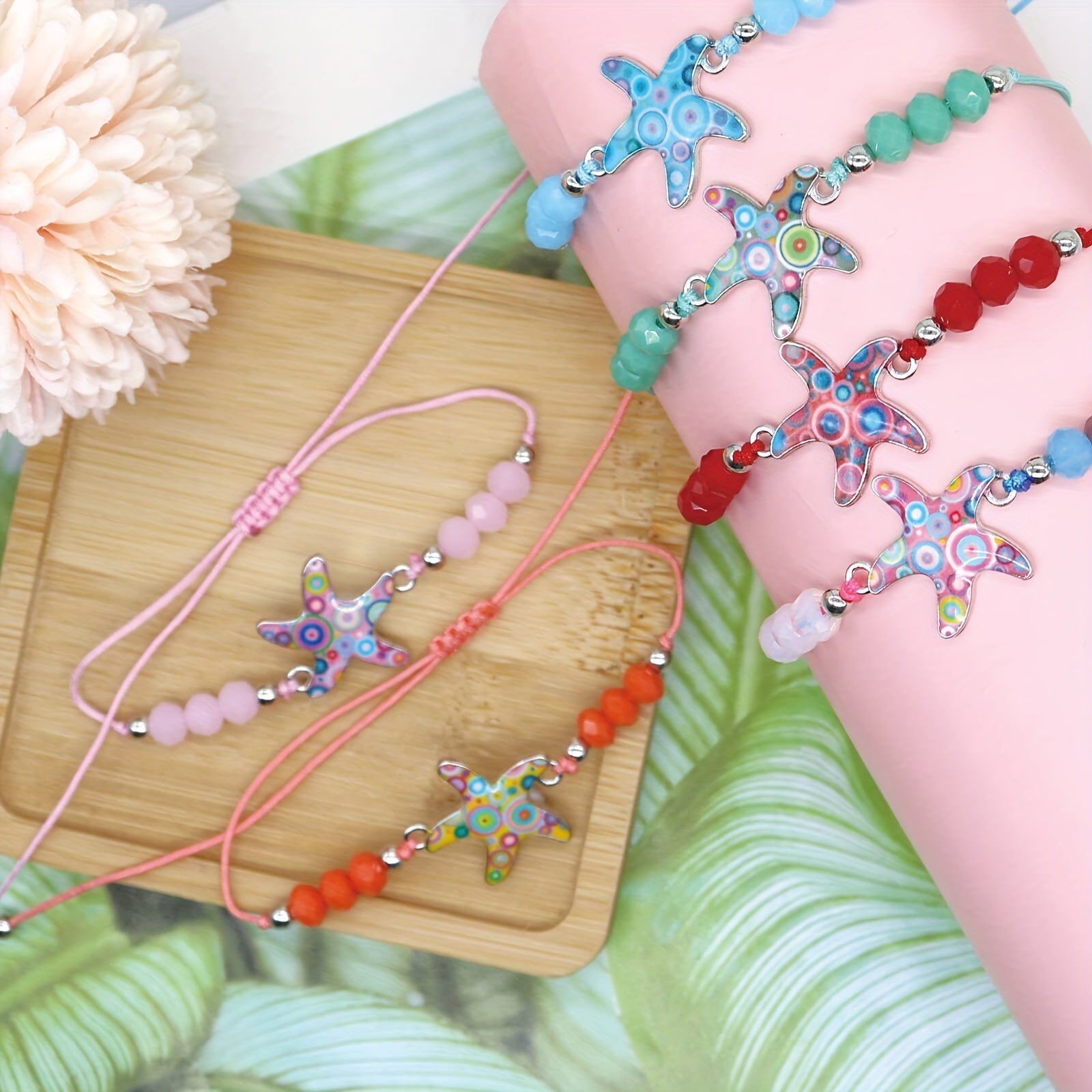 Add a touch of bohemian style to your summer look with this crystal beaded woven bracelet featuring a charming alloy starfish. Perfect for beach holidays and a great addition to your friendship accessories.