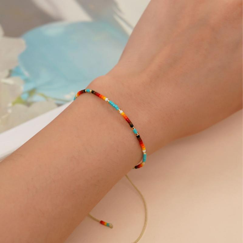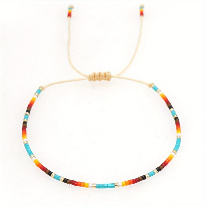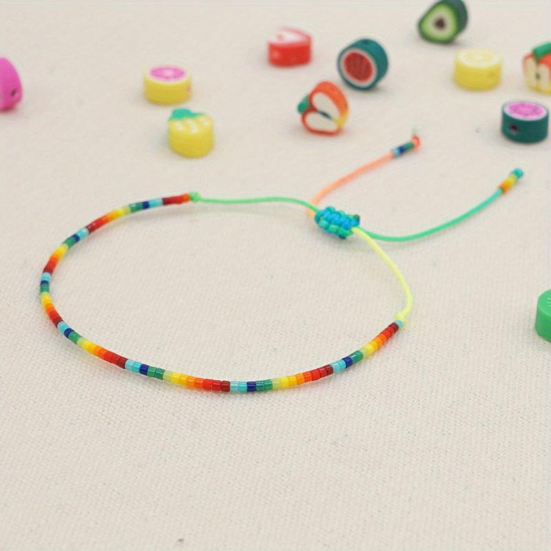 This Bohemian ethnic style bracelet features a beautiful gradient bead design, perfect for couples. Hand-woven with rainbow colors, this women's small bracelet is a trendy piece of jewelry for women. Great for teen girls and affordable!