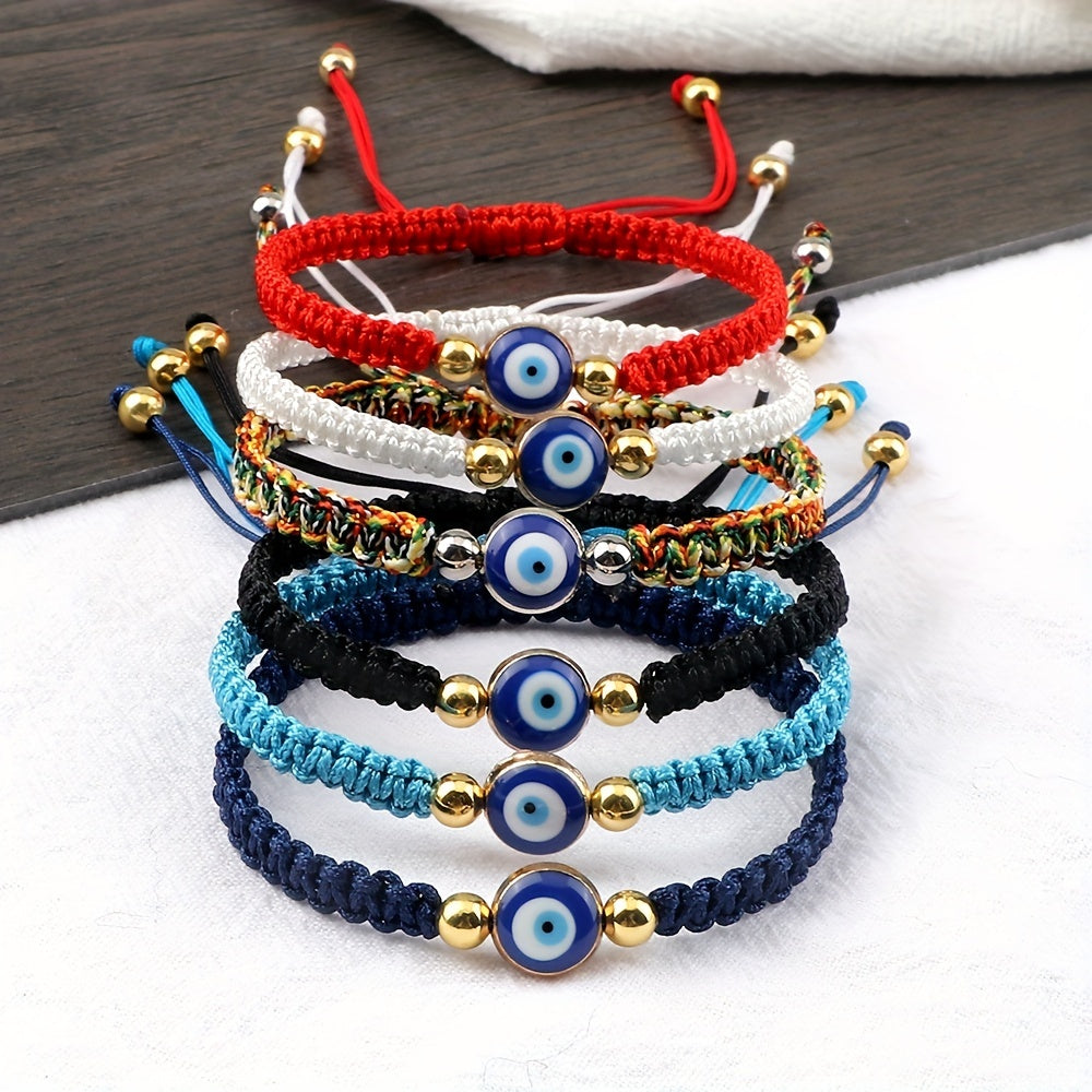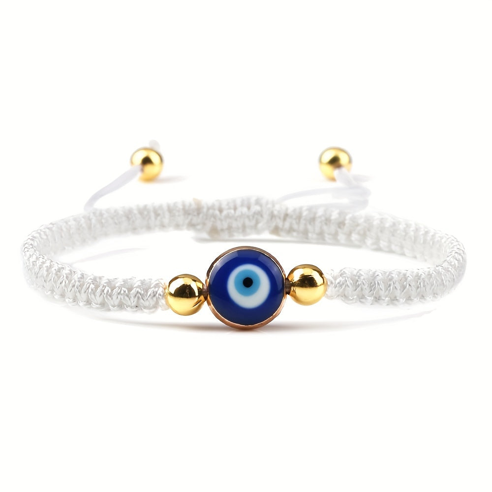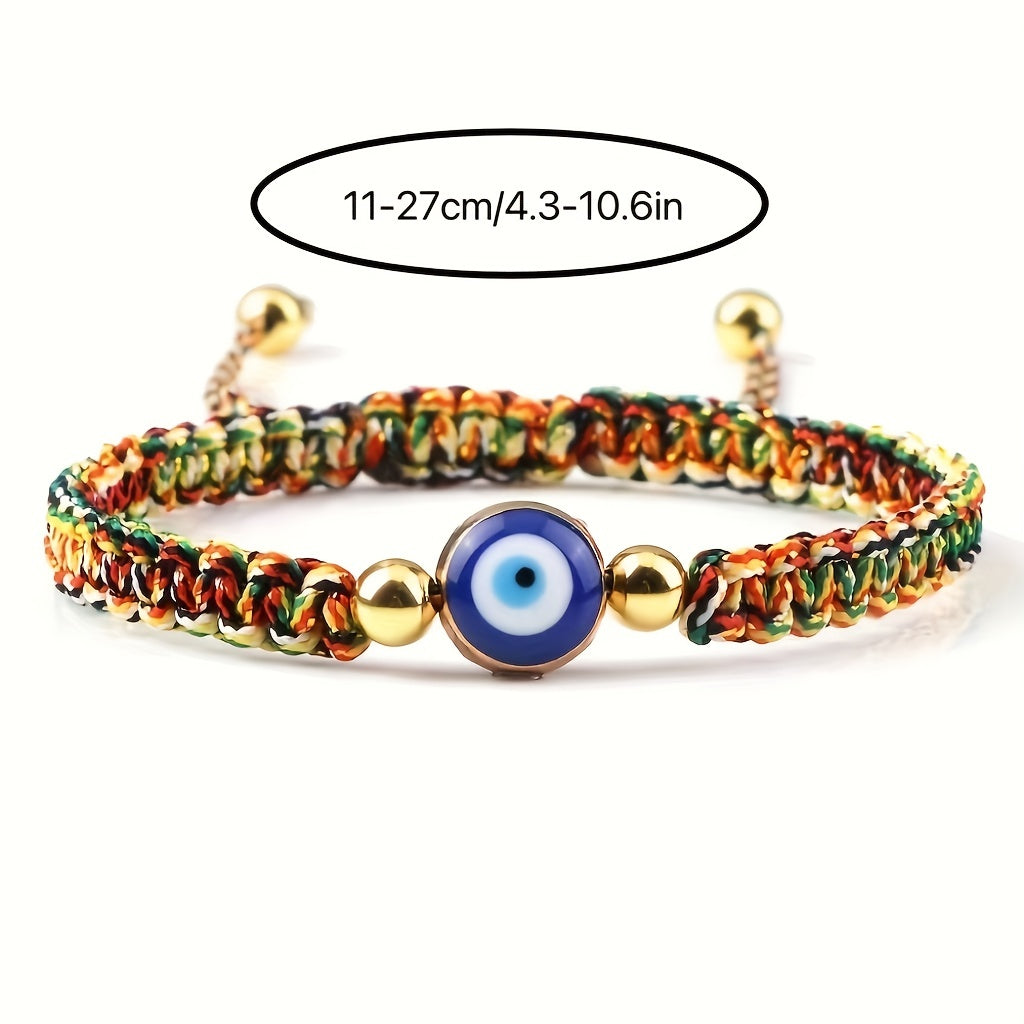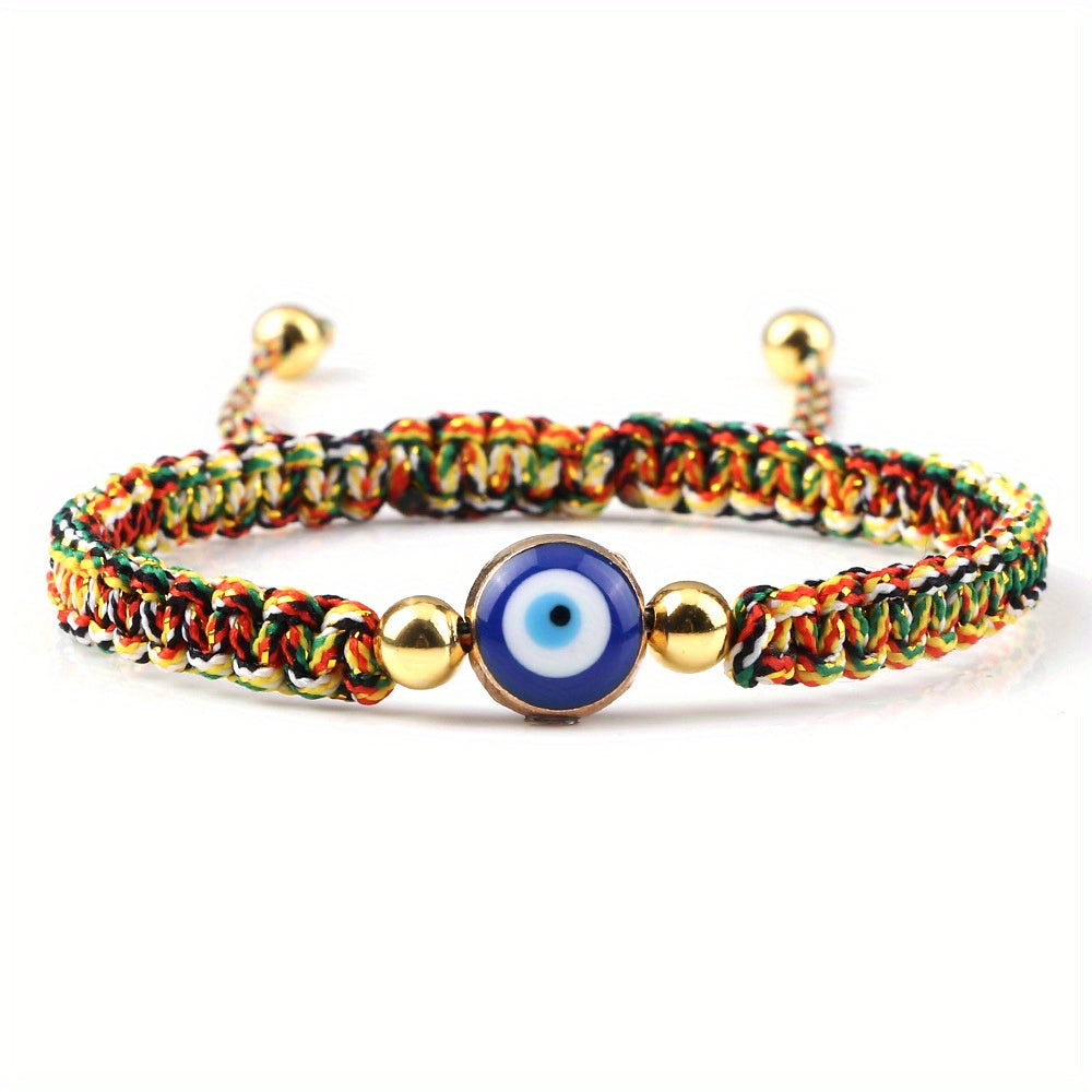 Add a pop of color to your summer look with this boho Evil's Eye rope bracelet. Perfect for holidays and beach trips, this Mexican-inspired bracelet is a fun accessory for any outfit.