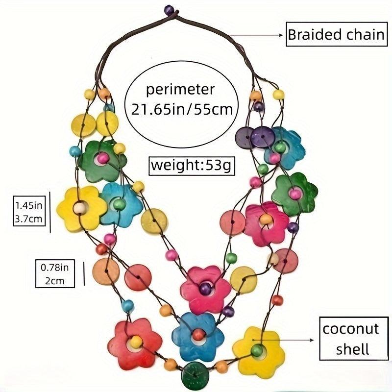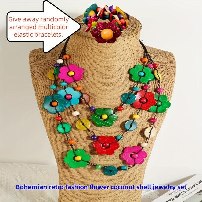 Embrace bohemian style with this retro flower coconut shell jewelry set. Perfect for year-round festivals and birthdays. Each set includes 2 pieces with colors randomly arranged.