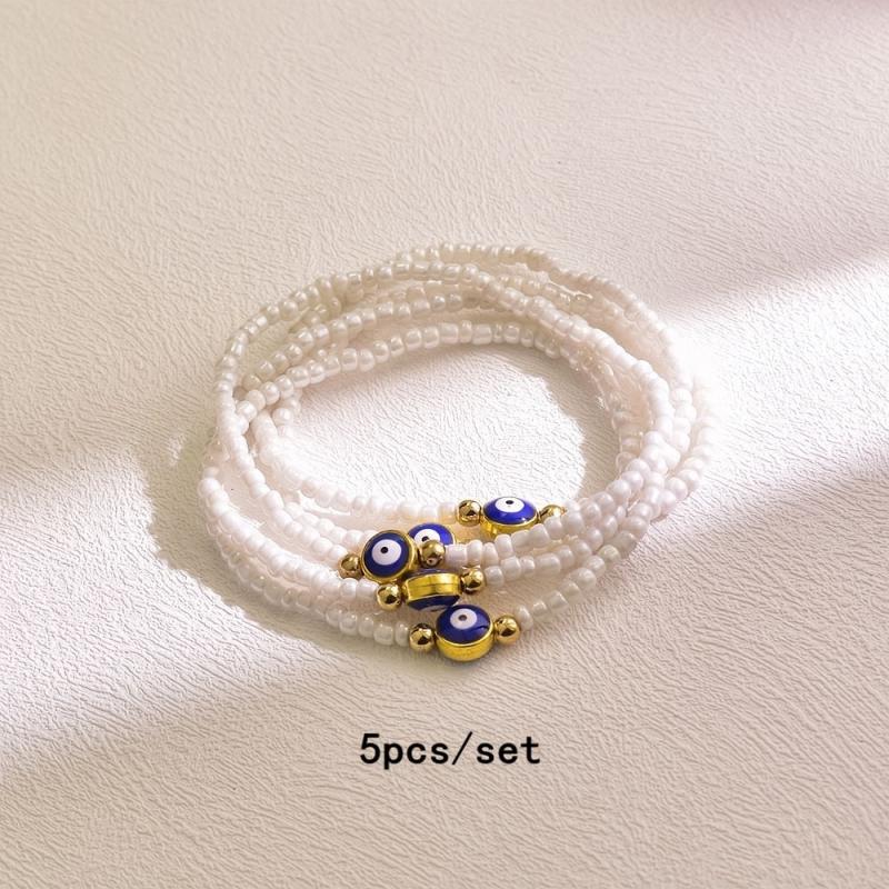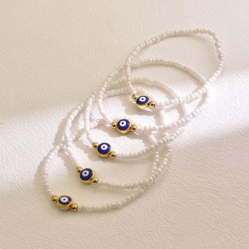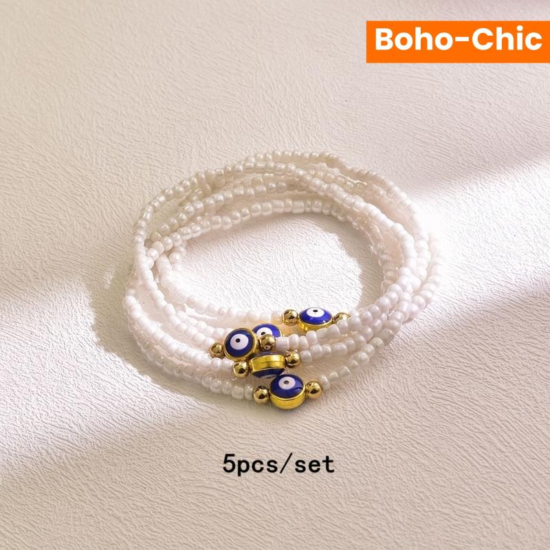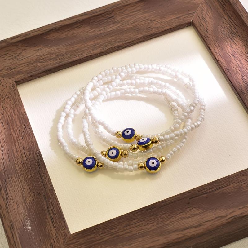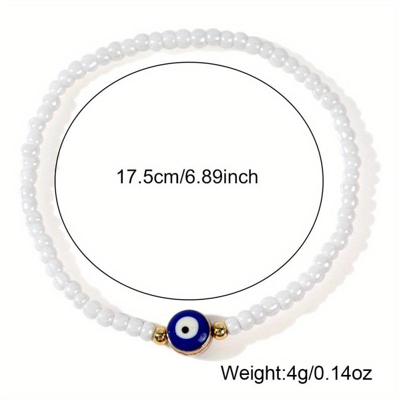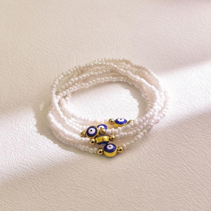 This boho-inspired bracelet features glass beads and an Evil Eye charm. It makes a perfect gift for women, couples, and friends on birthdays and holidays.