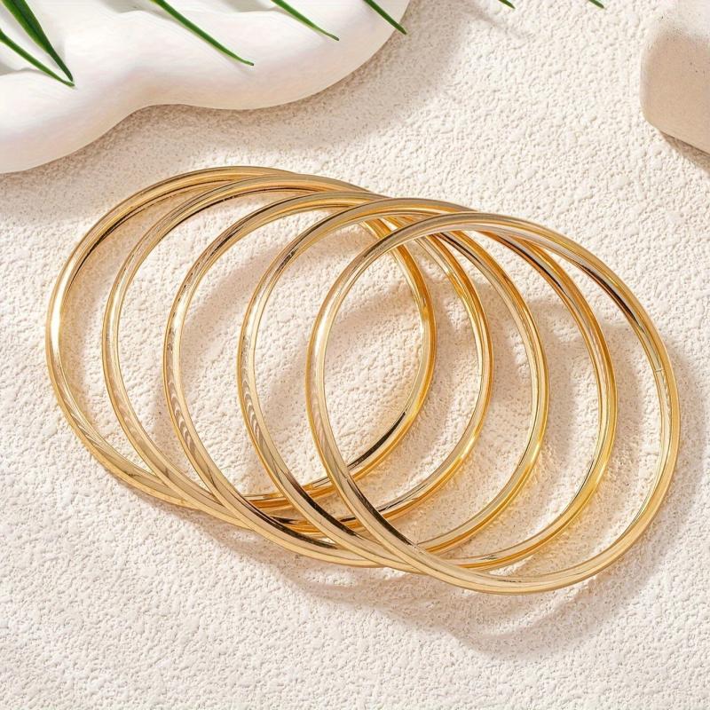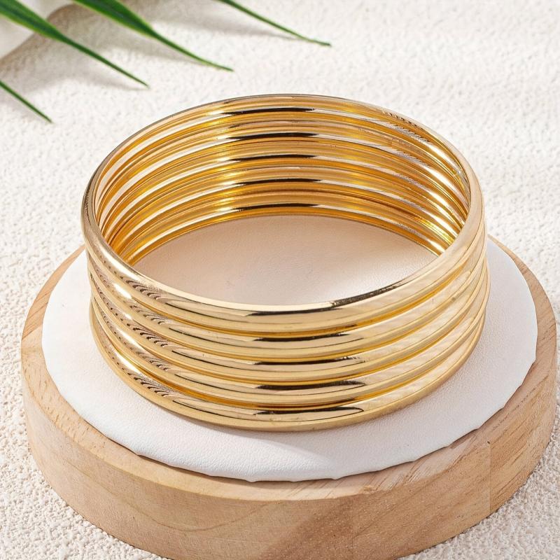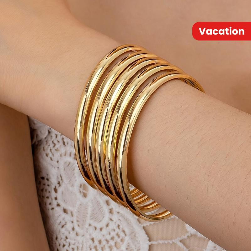 Elevate your style with this boho-chic metal bracelet set. These stackable wristbands are versatile, adding a touch of glamour to any outfit throughout the year.