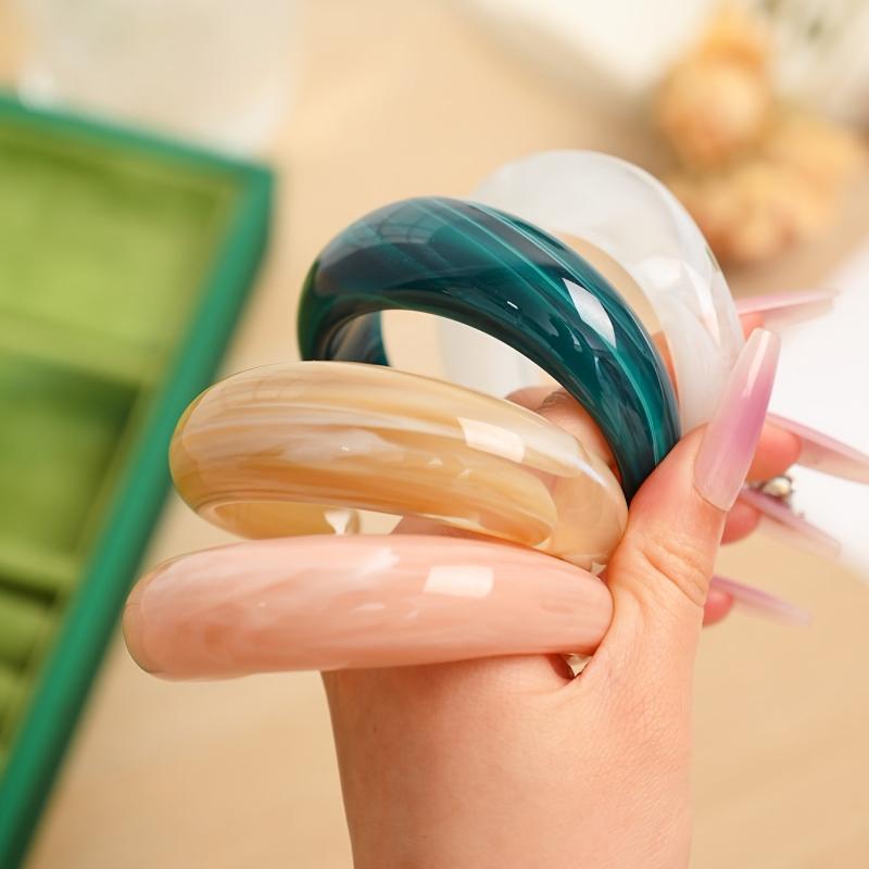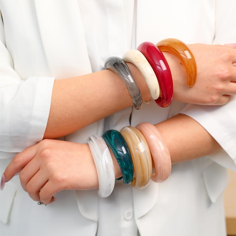 Elevate your beach vacation or music party look with this Bohemian style bracelet featuring a vibrant multicolor gradient design. Made of high-quality acrylic resin, this cuff bracelet is perfect for casual wear.