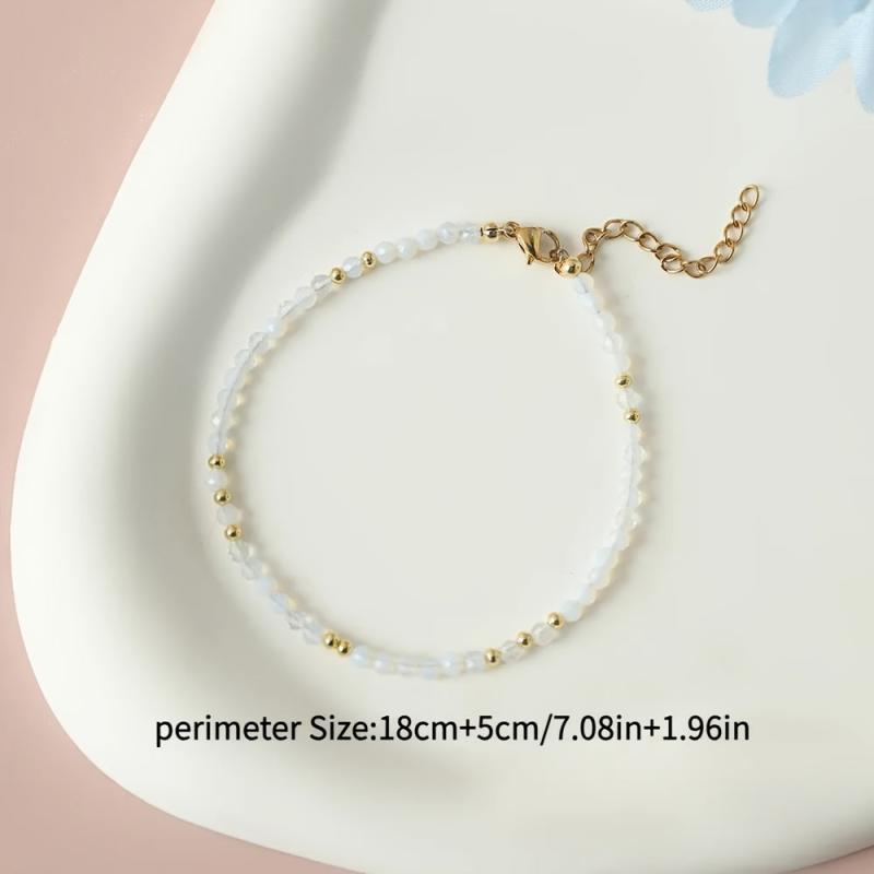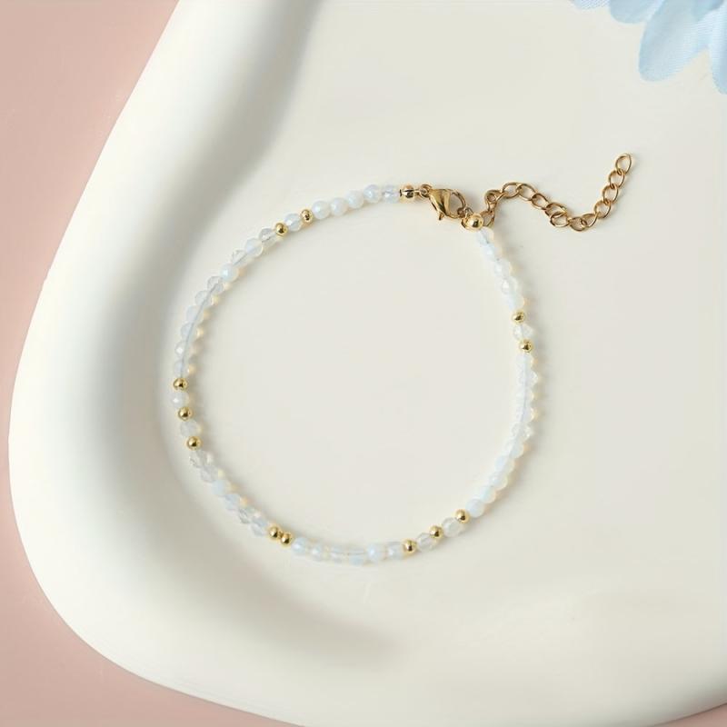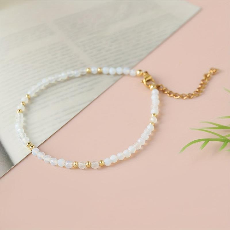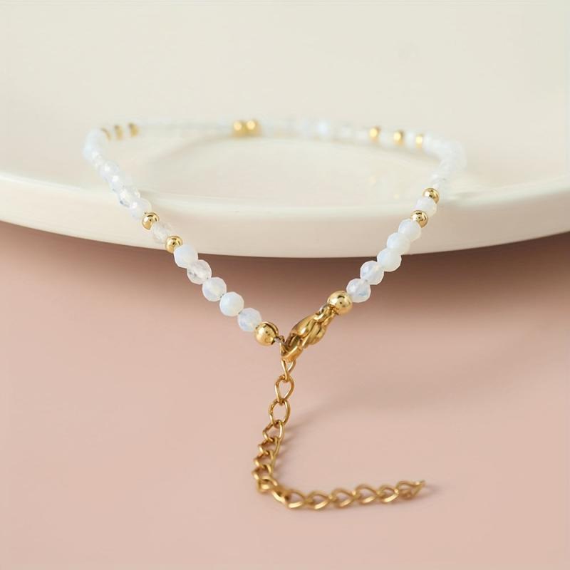 Add a touch of boho chic to your outfit with this stylish natural stone bracelet. Featuring golden tone accents and beads, this versatile accessory is perfect for daily wear or special occasions. Elevate your summer look with this trendy piece of jewelry.