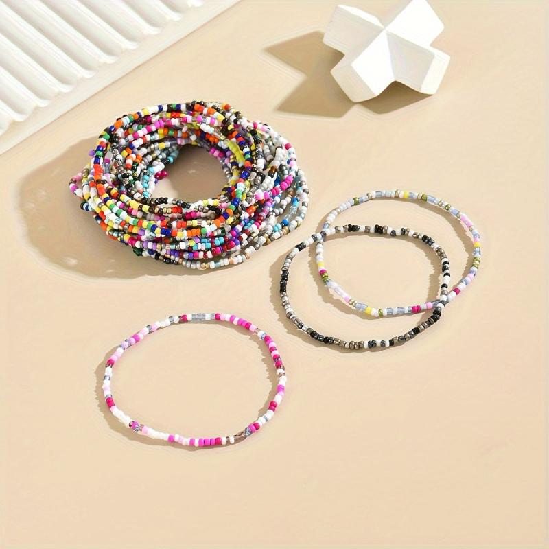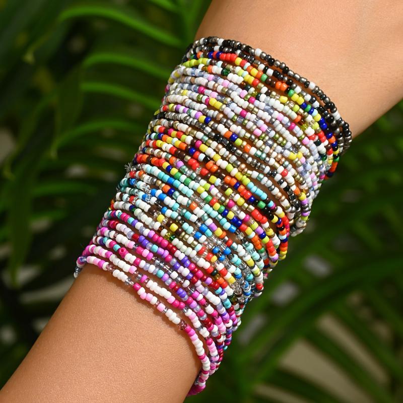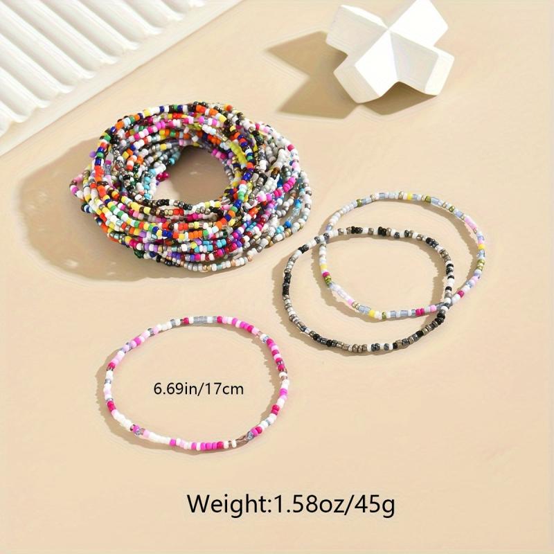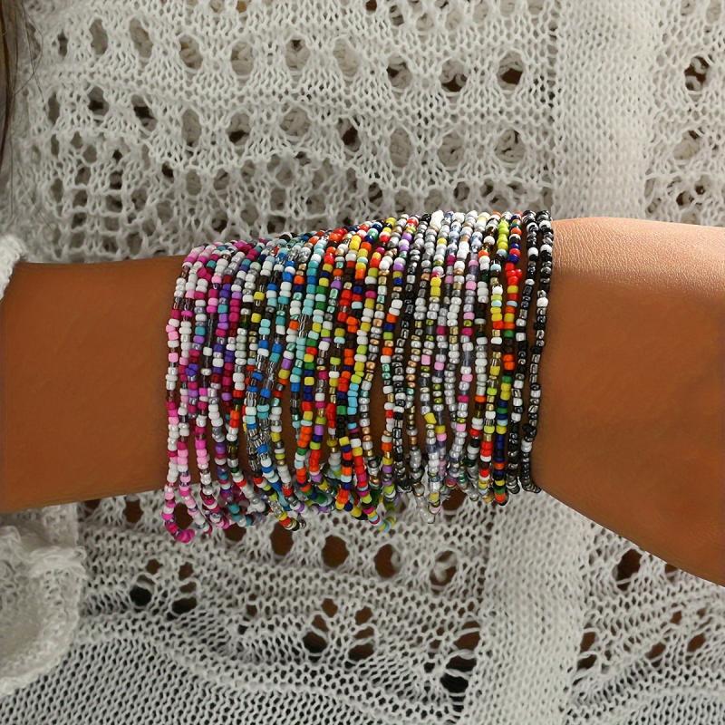 Add a touch of bohemian style with this set of 30 seed bead bracelets. These versatile accessories are ideal for daily wear or parties, perfect for all seasons.