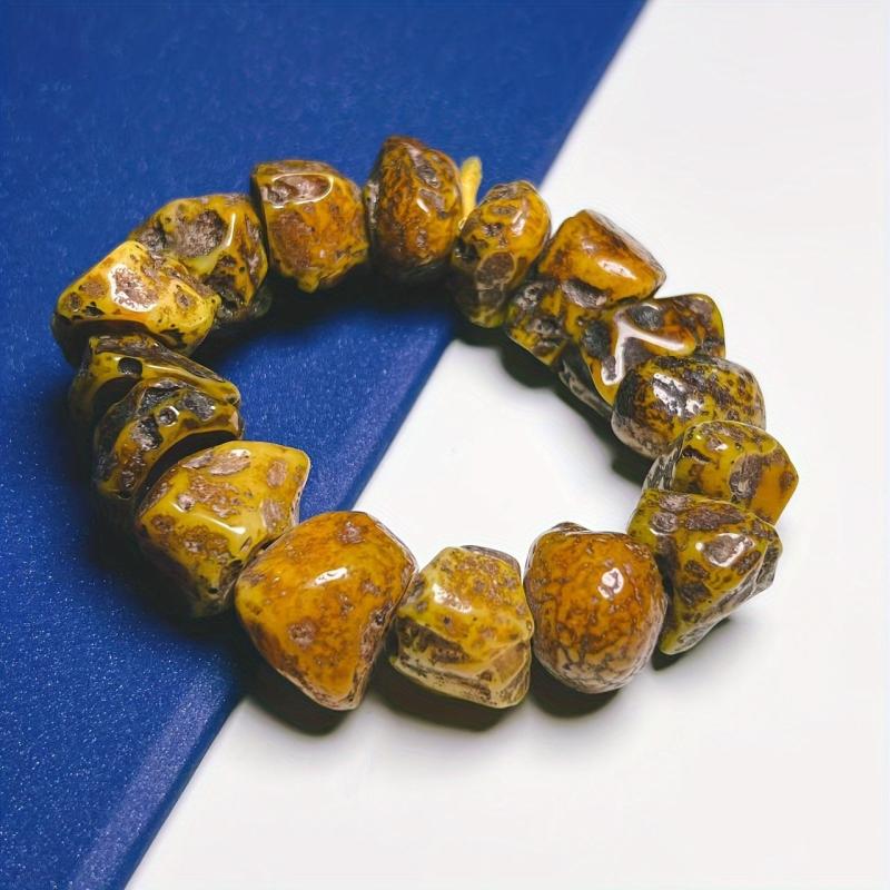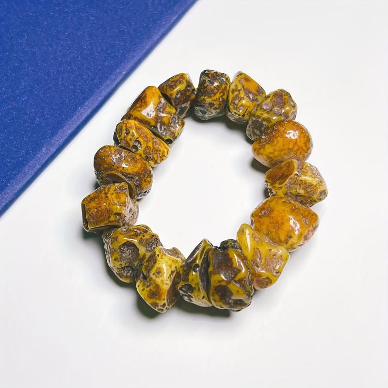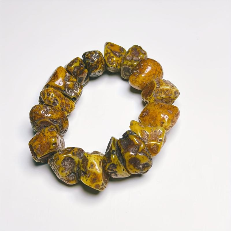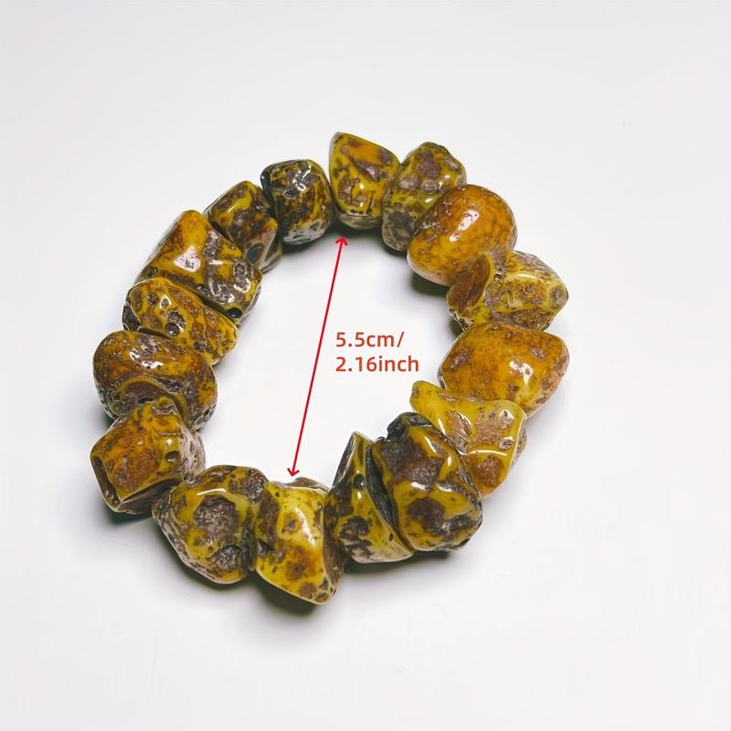 This one-of-a-kind resin bracelet features unique large cut amber beads that are perfect for adding a boho touch to your casual attire or special occasions.