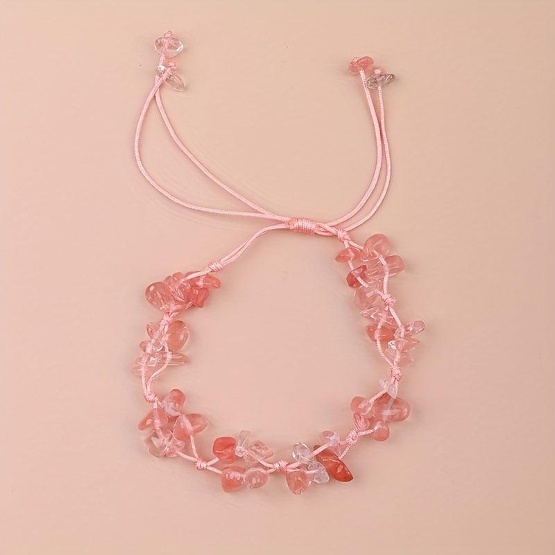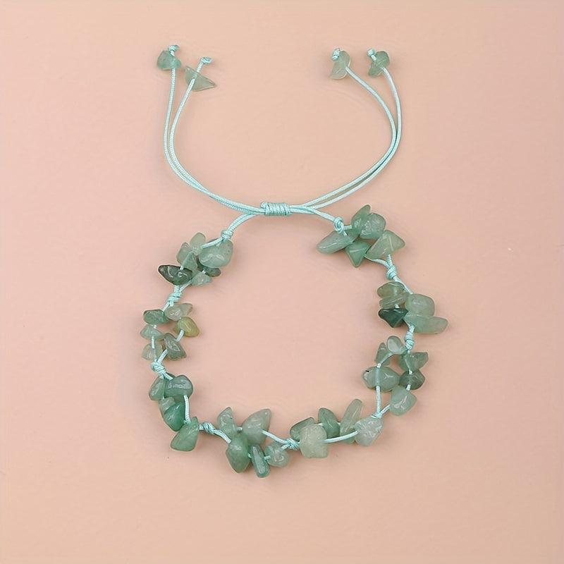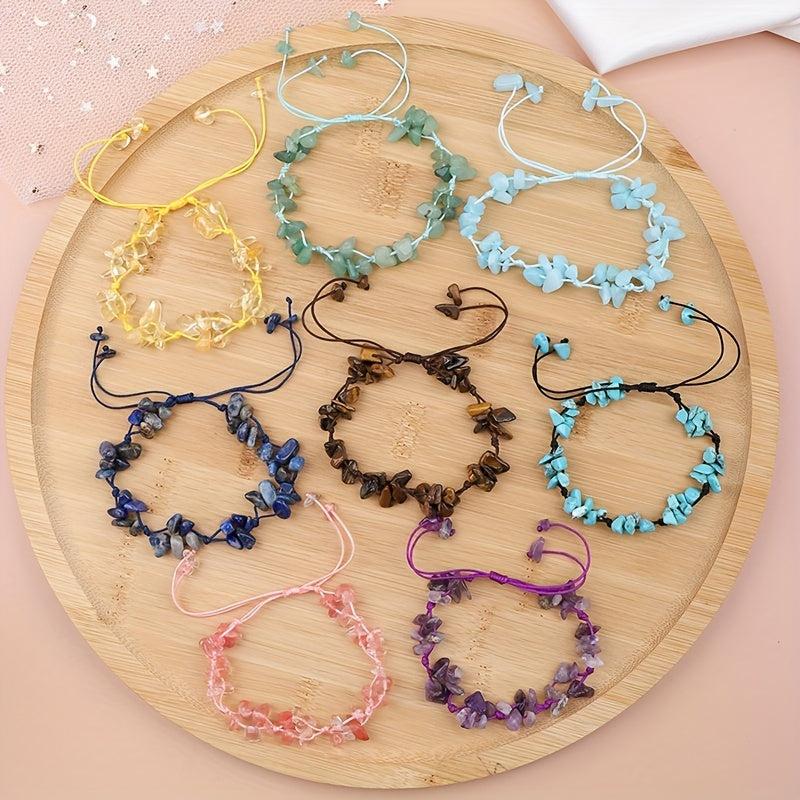This boho style bracelet features a mix of colorful irregular stones woven into a unique design, making it a creative and stylish accessory for the summer and holidays.
