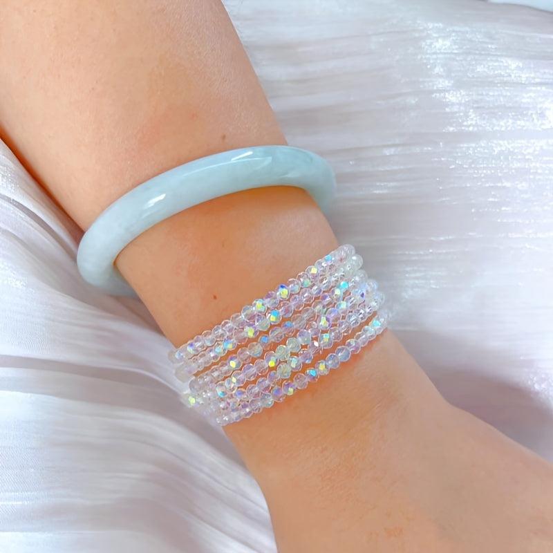 Elevate your style with this 5 pack of sparkling artificial crystal beaded bracelets. Perfect for daily wear or as a thoughtful gift.
