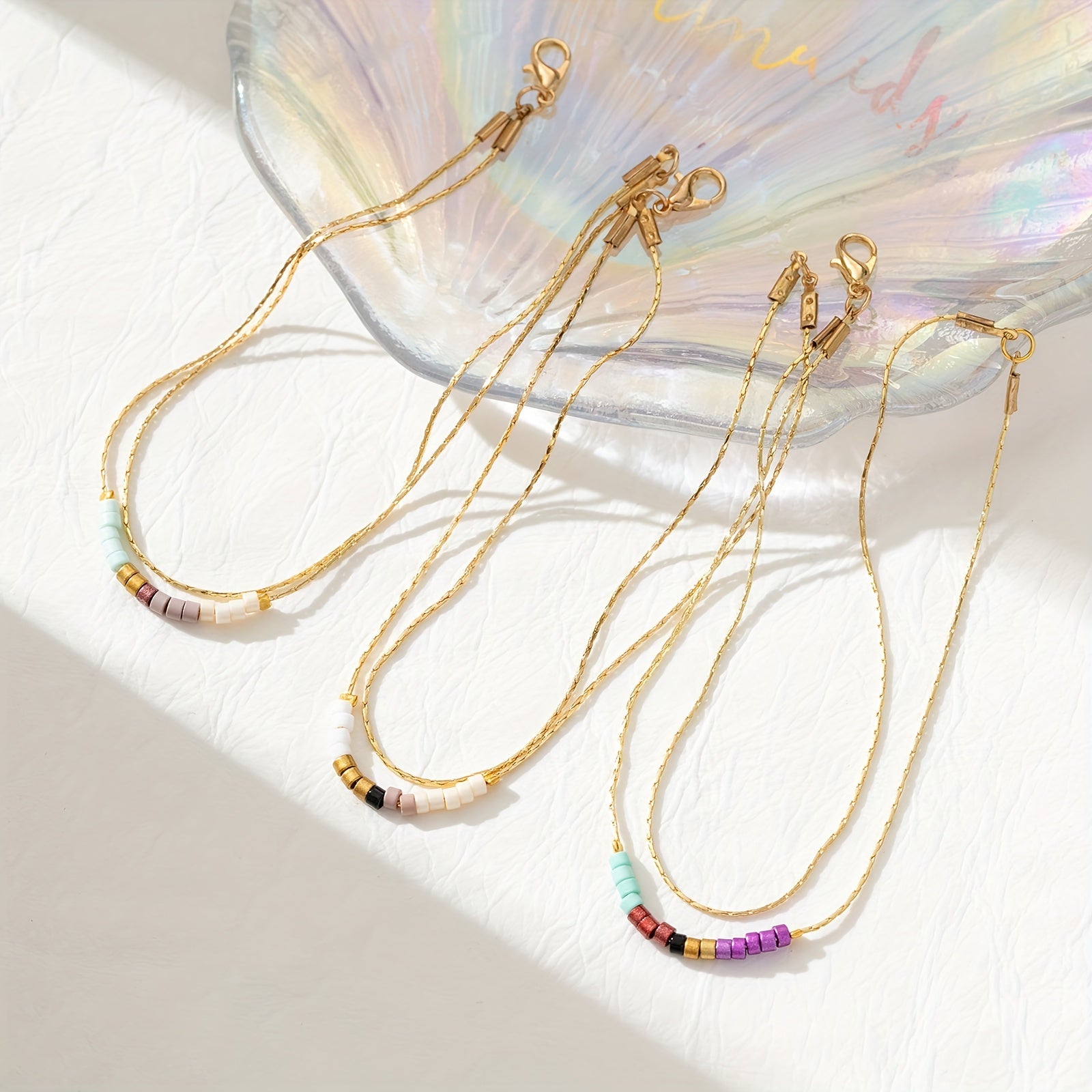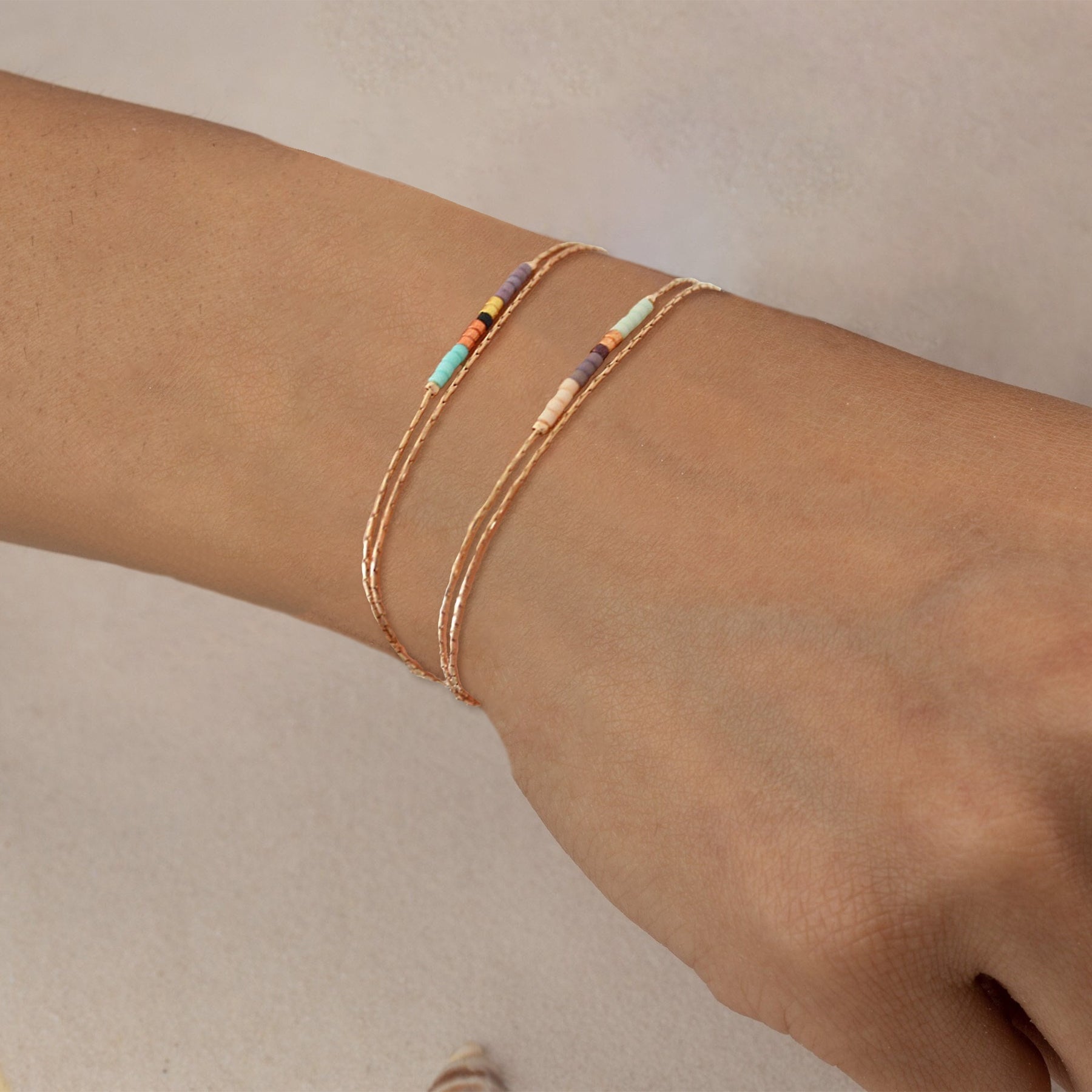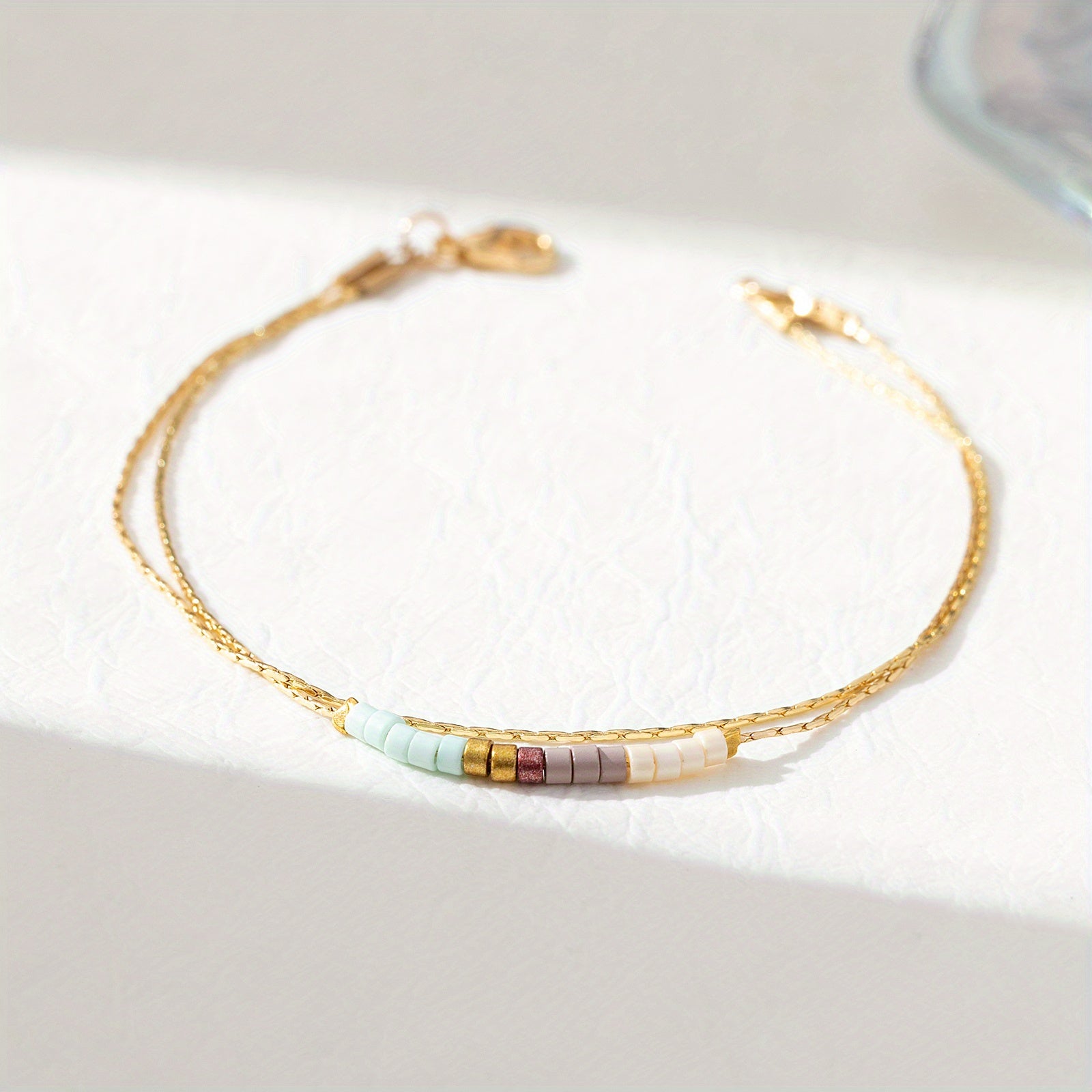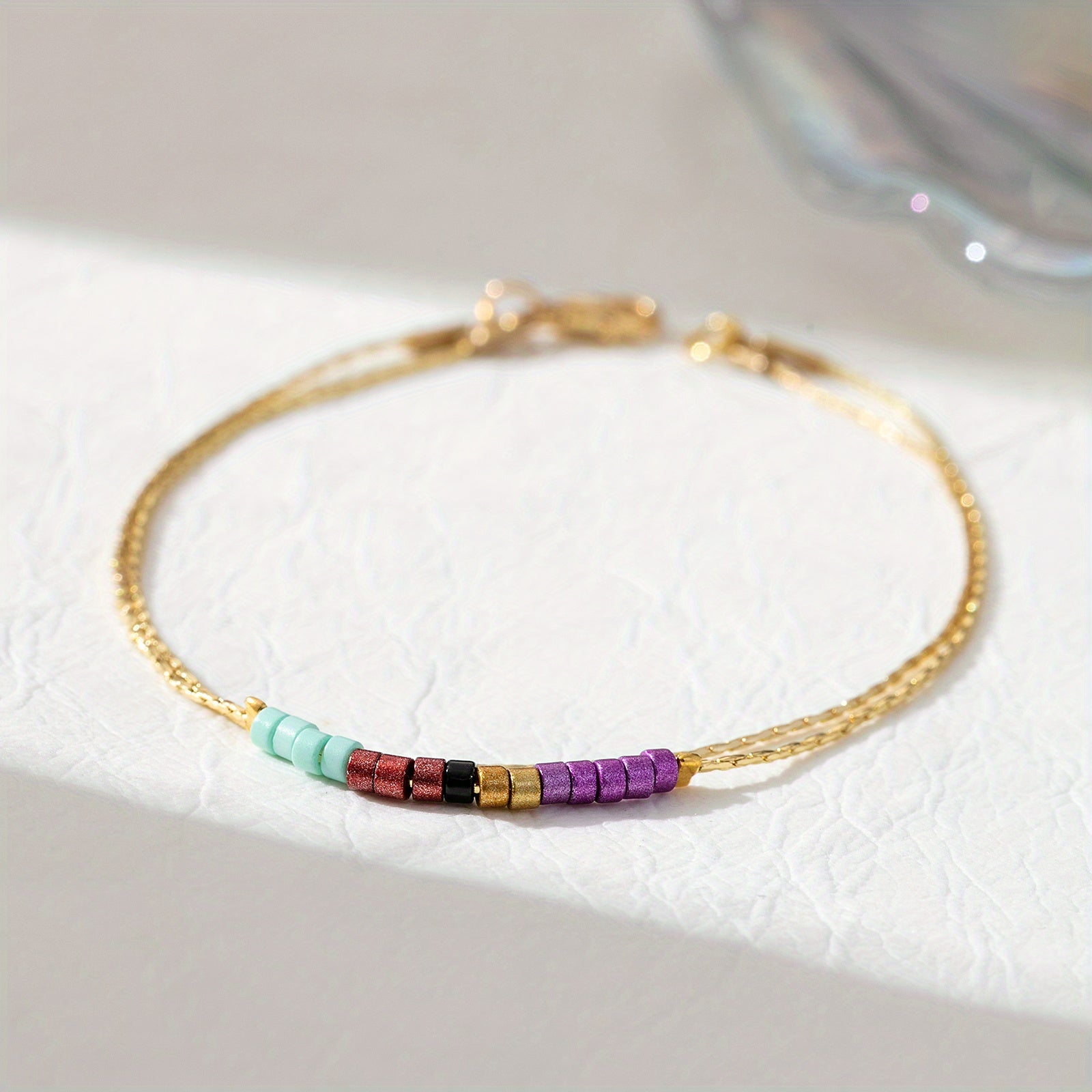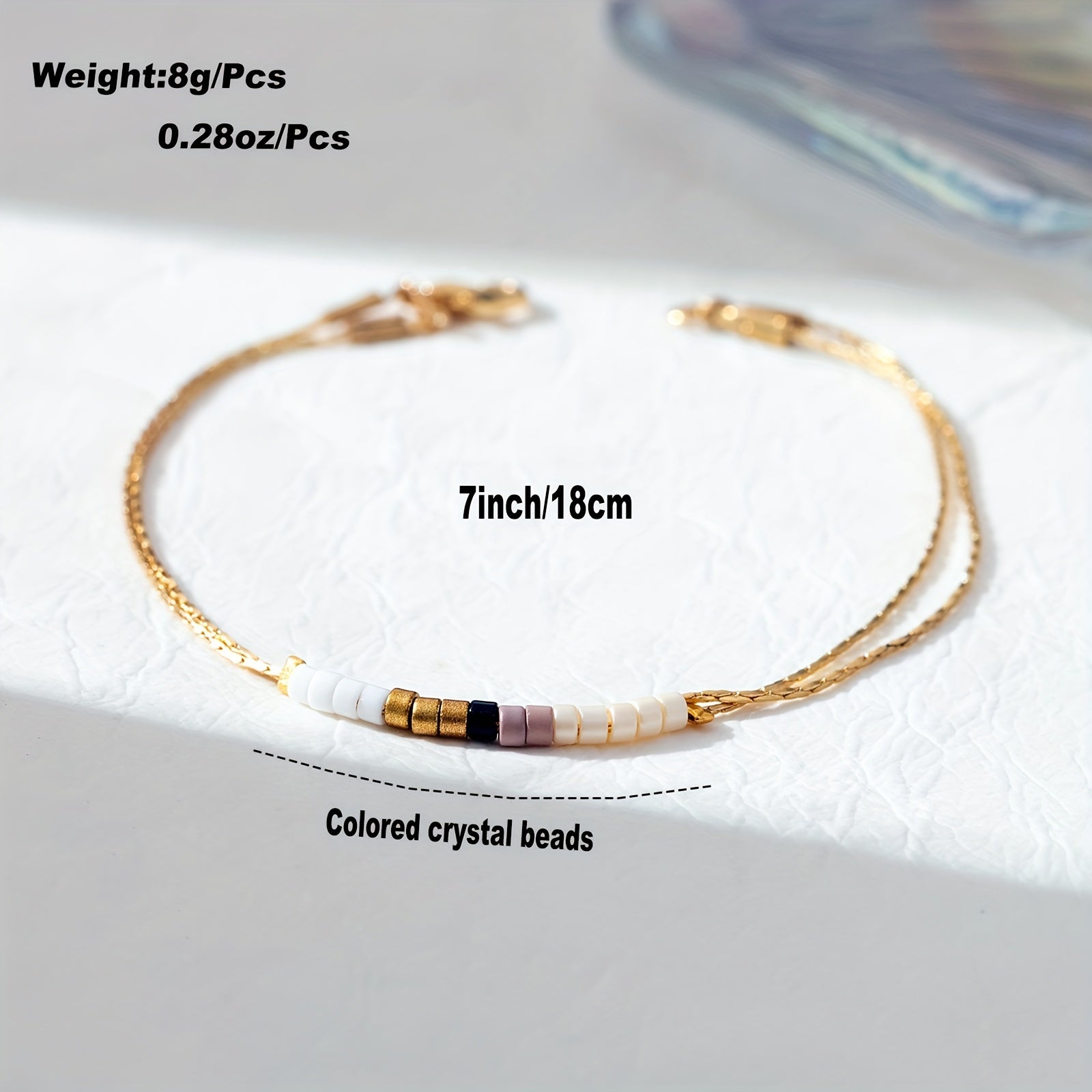 Add a touch of minimalist boho style to your outfit with this colorful crystal beads multilayer bracelet. Made with copper plated 14K plating, this bracelet is a perfect gift for any occasion.
