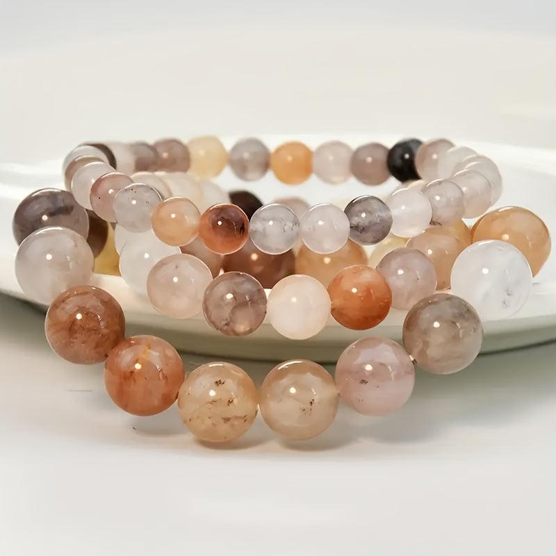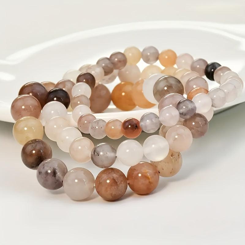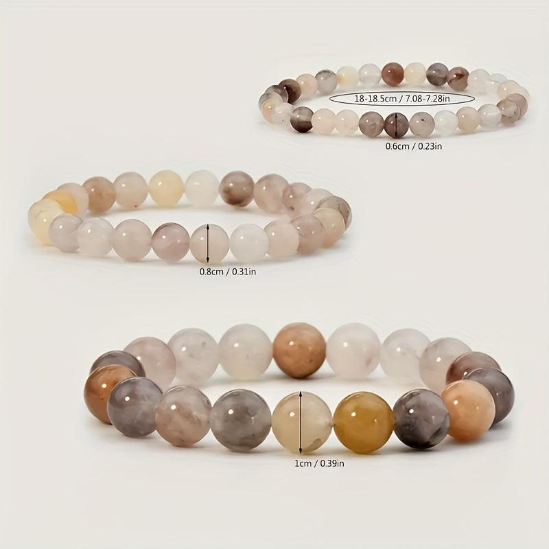 Elevate your look with this 3-piece set of stretch bracelets featuring natural stone beads. Perfect for parties, vacations, and casual outfits. No metal components for added comfort.