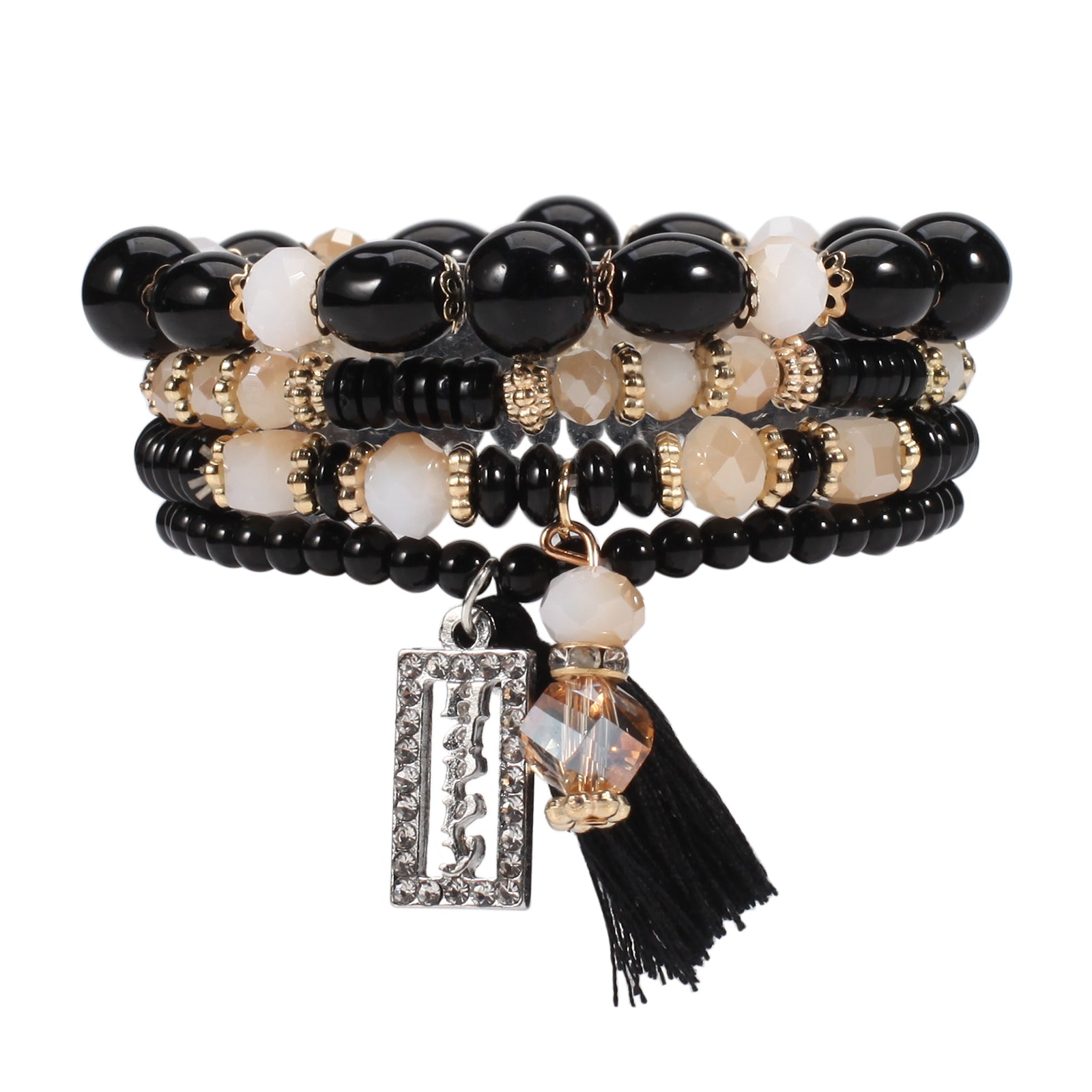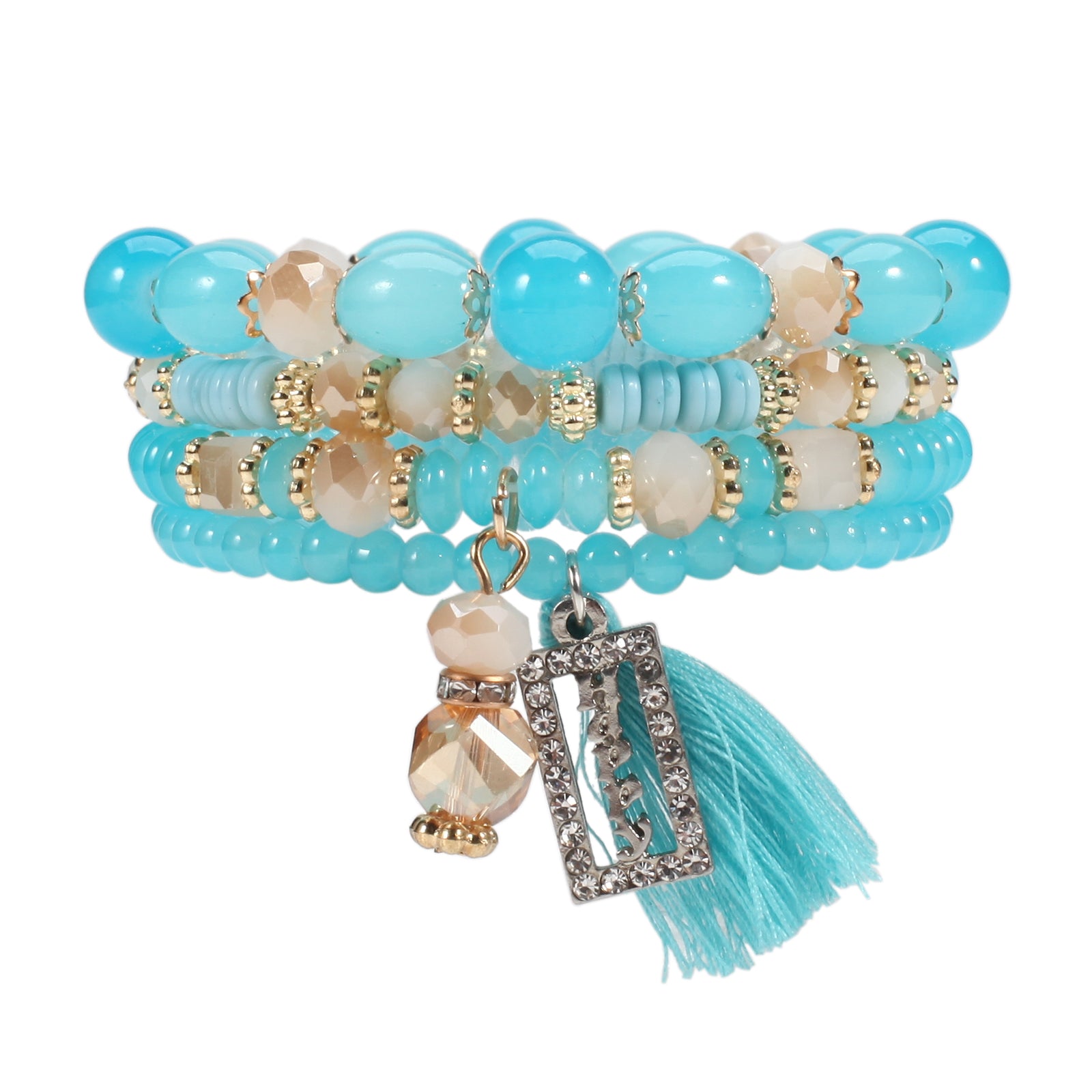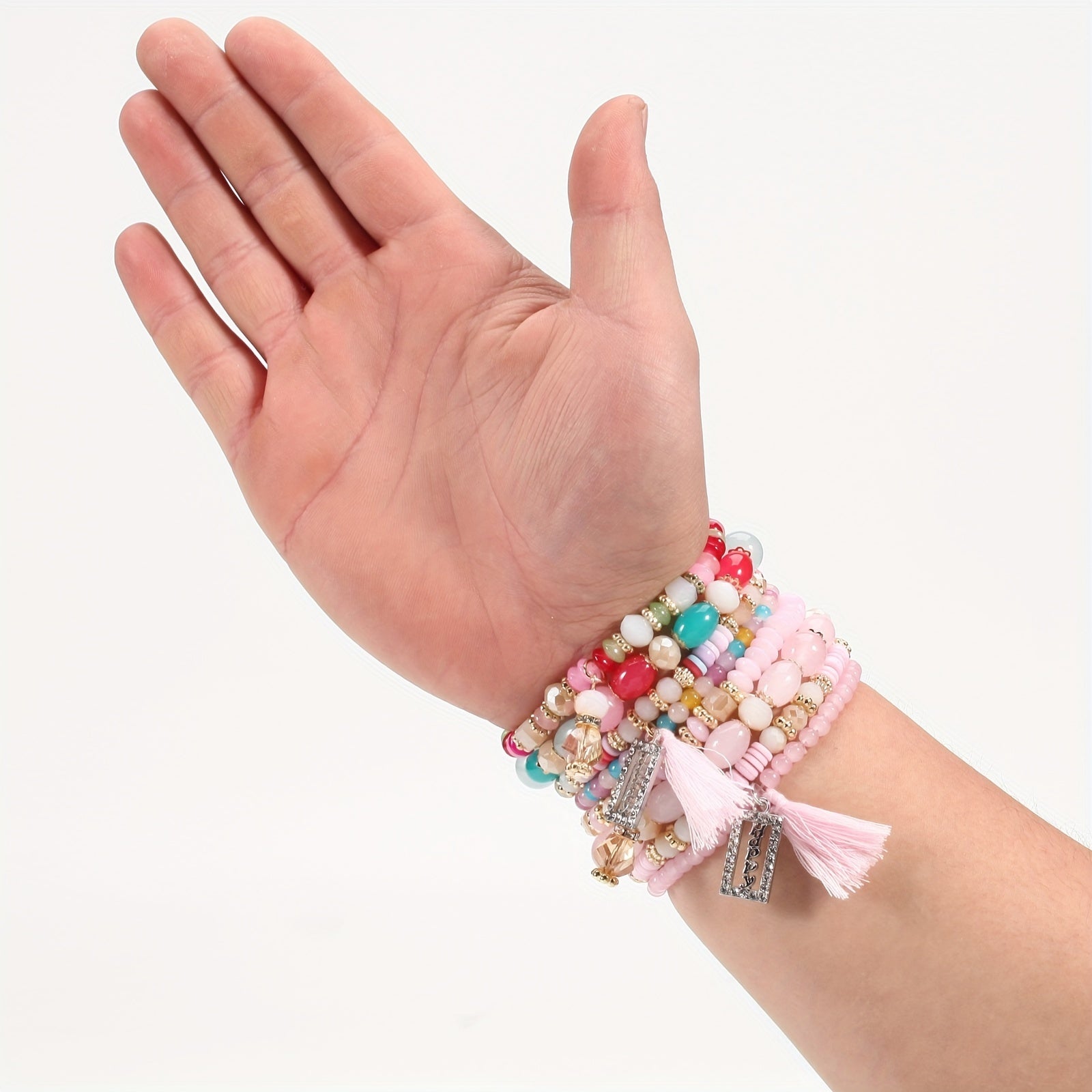 Elevate your bohemian look with this trendy tassel pendant beaded bracelet set. Perfect for adding a touch of style to your hand jewelry accessories.