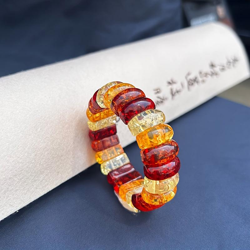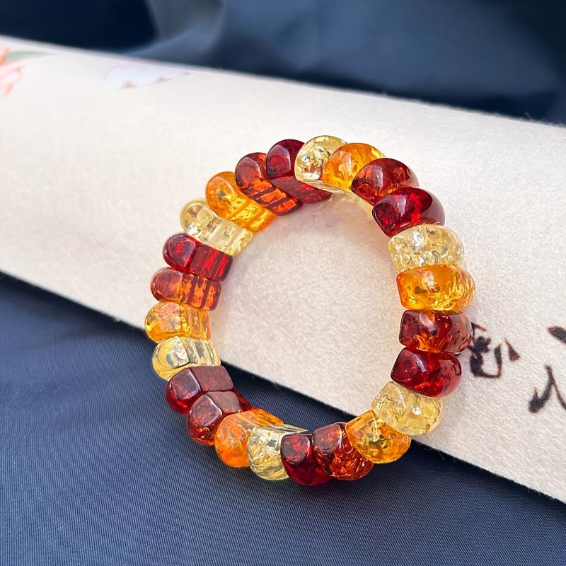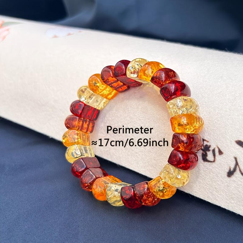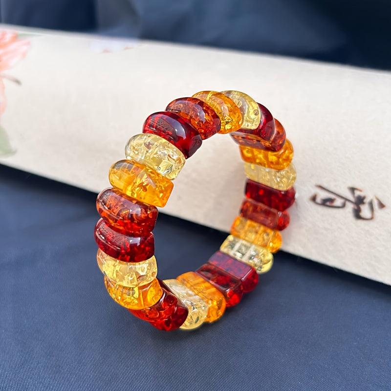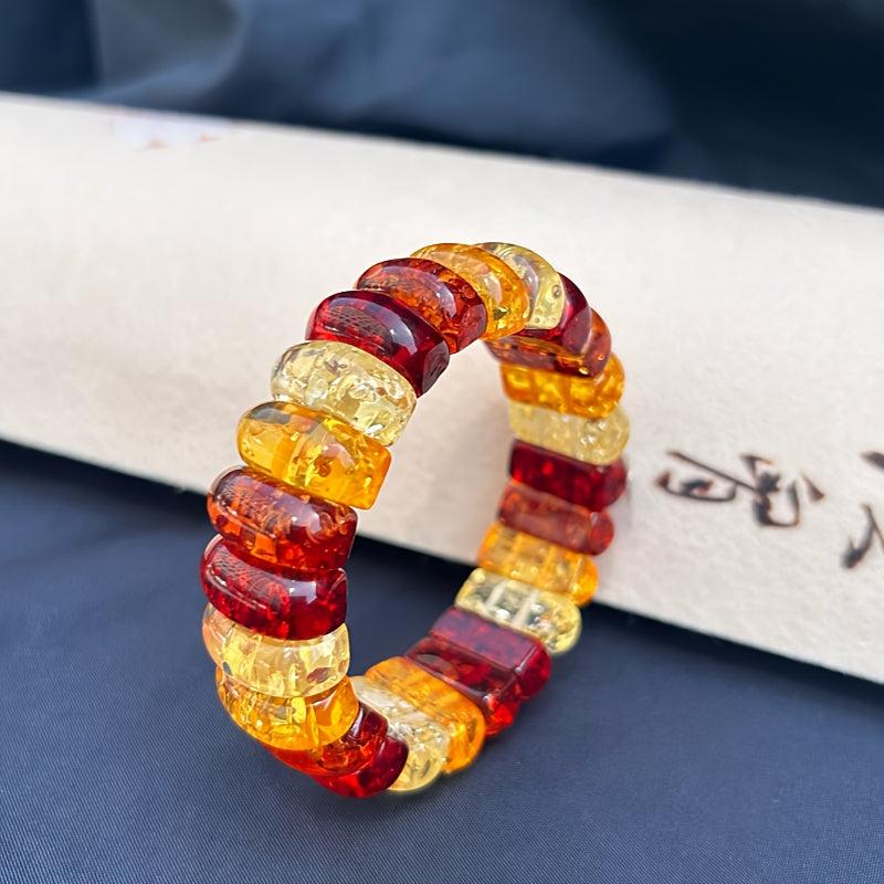 Boho Style Women's Bracelet Natural Amber Floral Beads Red Orange Yellow Flower