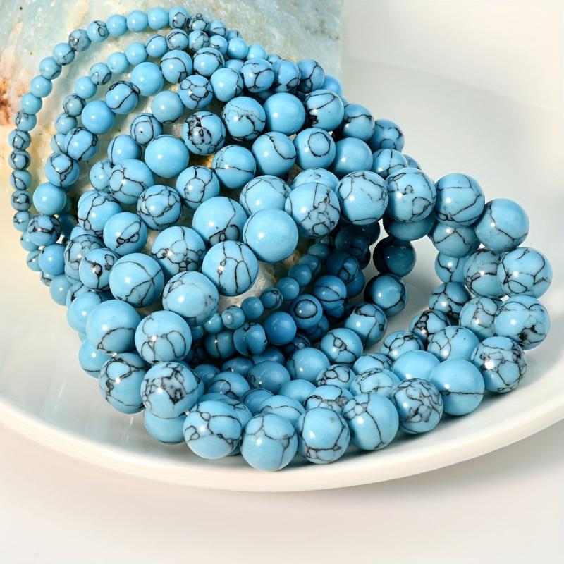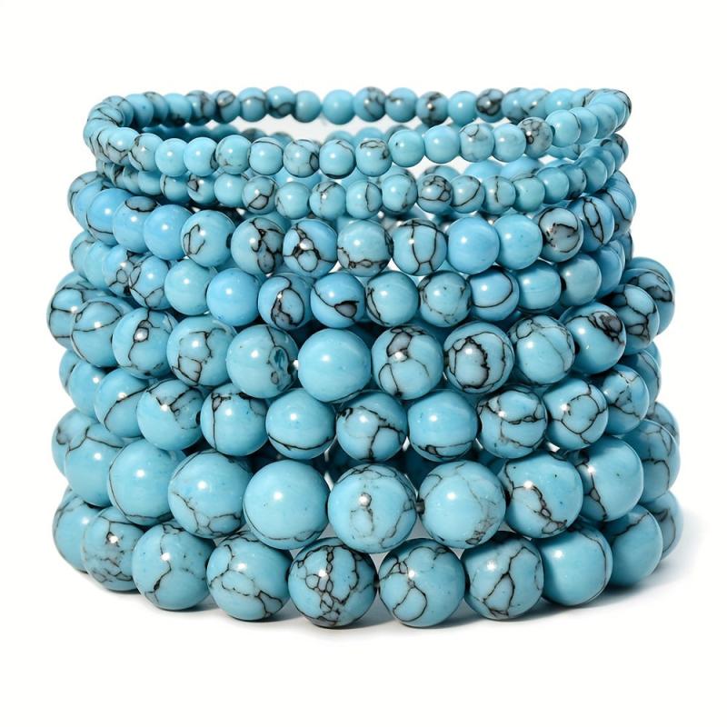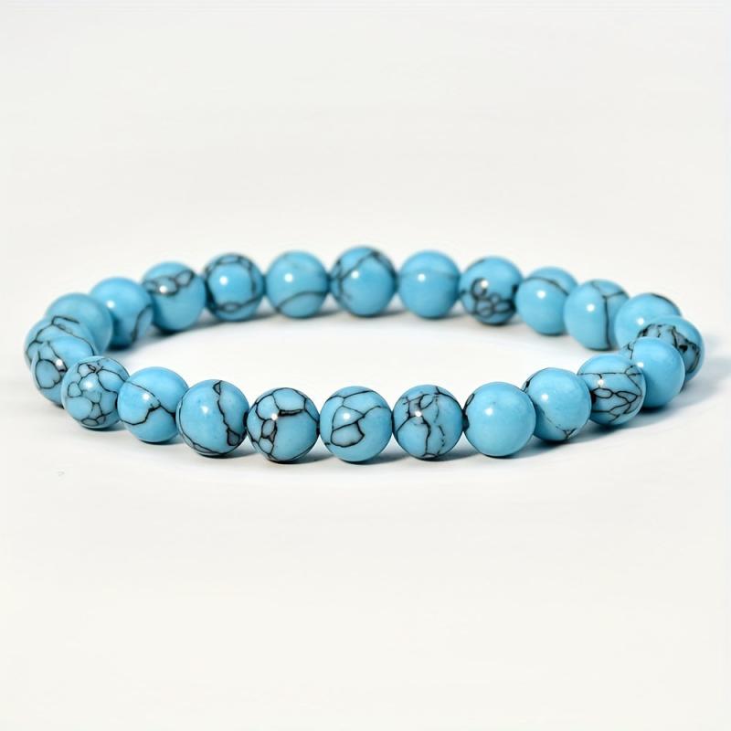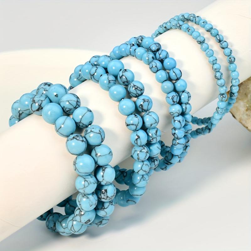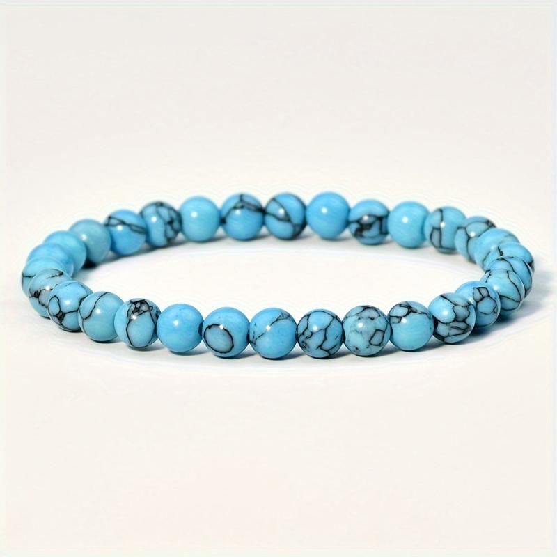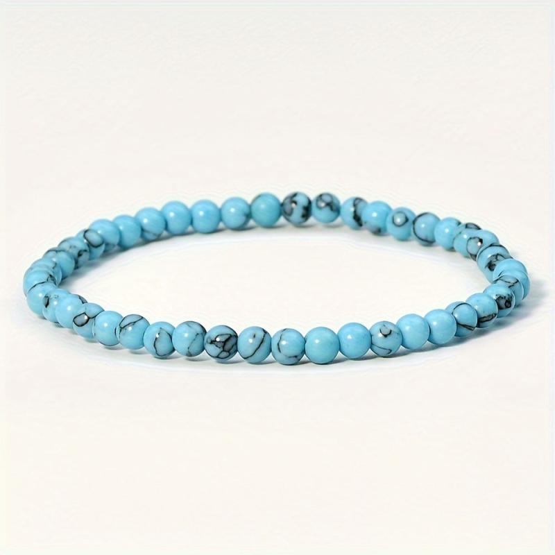Add a touch of boho style with this synthetic turquoise bead bracelet. Perfect for daily wear or vacations, this round stone bracelet features the December birthstone.