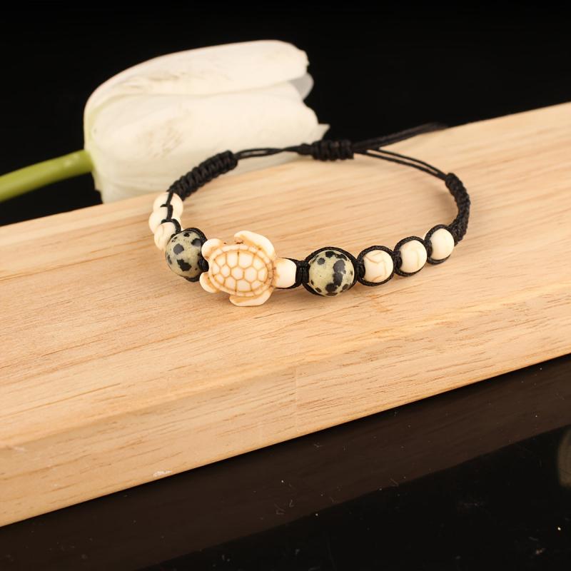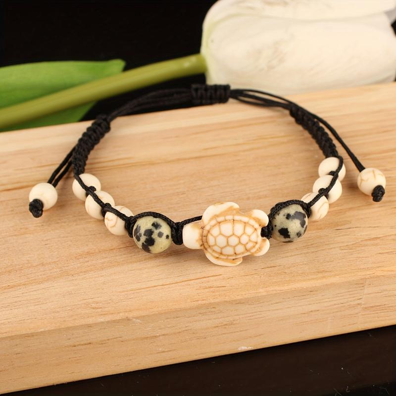 Elevate your casual attire or vacation look with this bohemian-inspired turtle shell and agate beaded bracelet. Crafted with synthetic fiber cord and beads, it adds a touch of nature to your style.