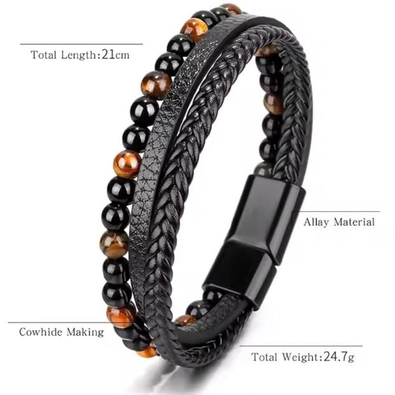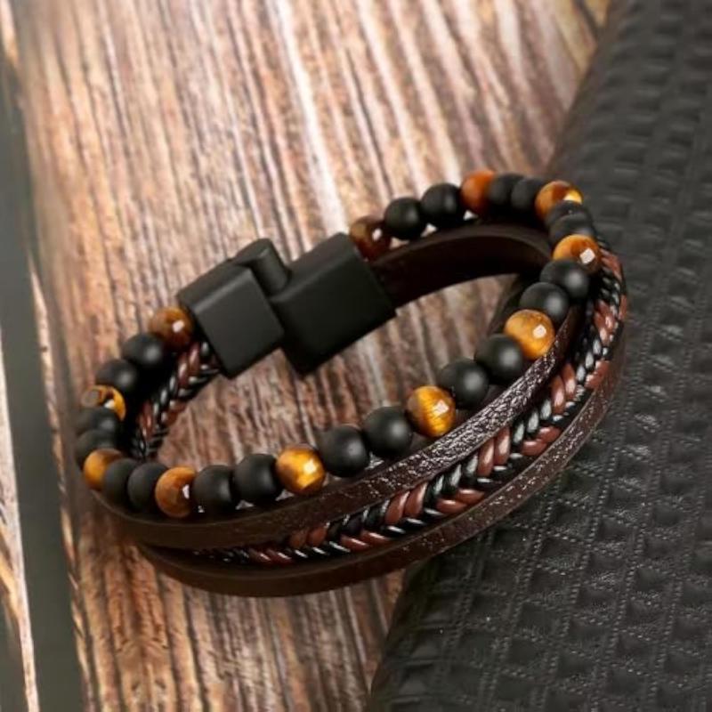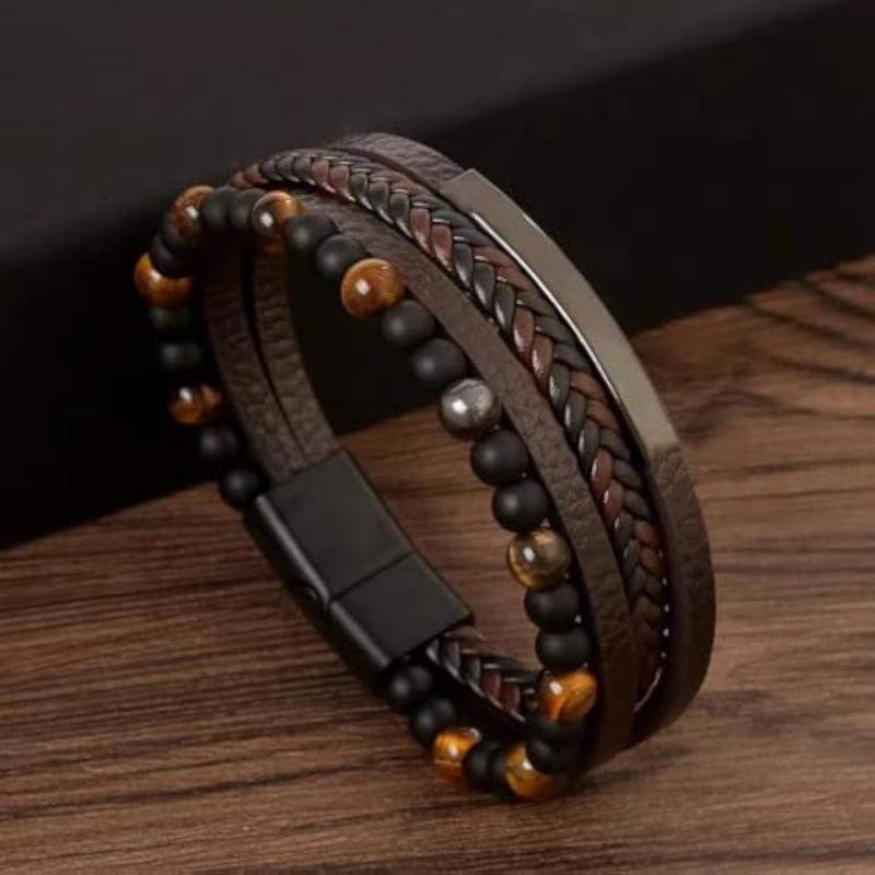 Stylish bracelet made with silver stainless steel beads on brown leather. Perfect gift for birthdays and anniversaries.
