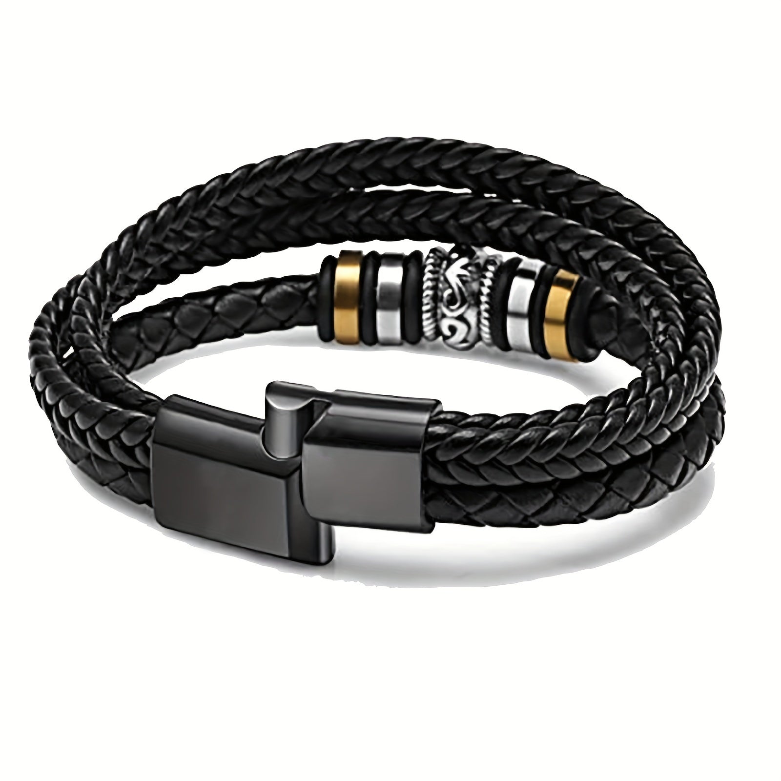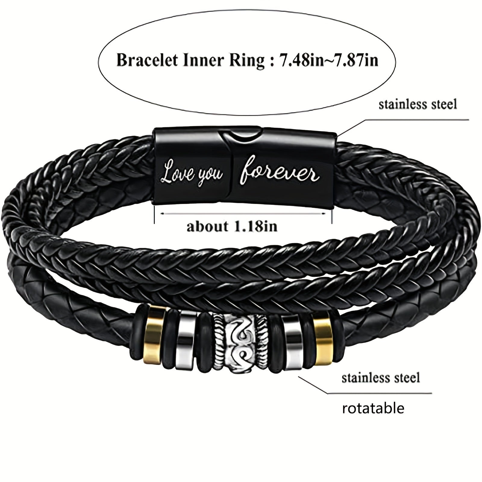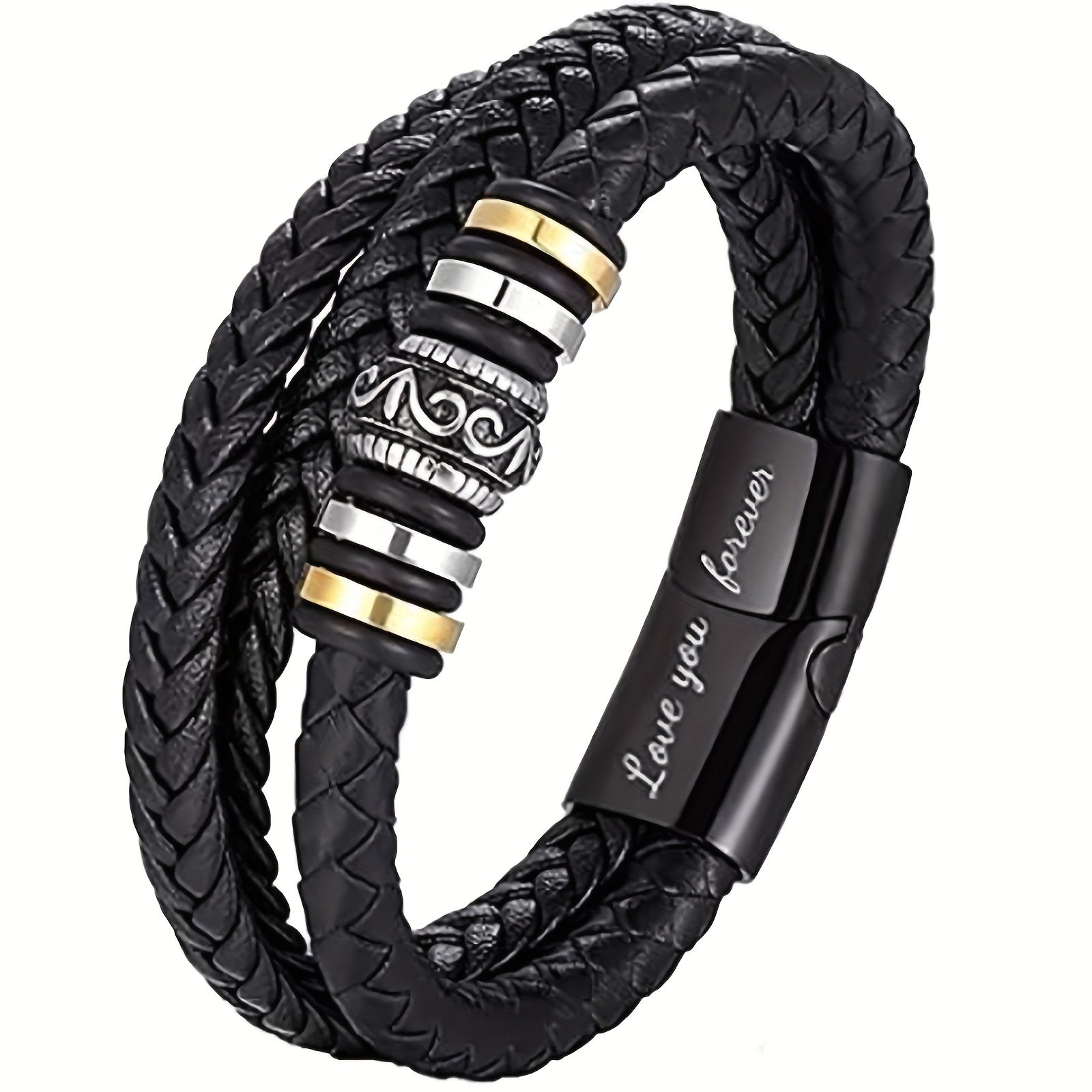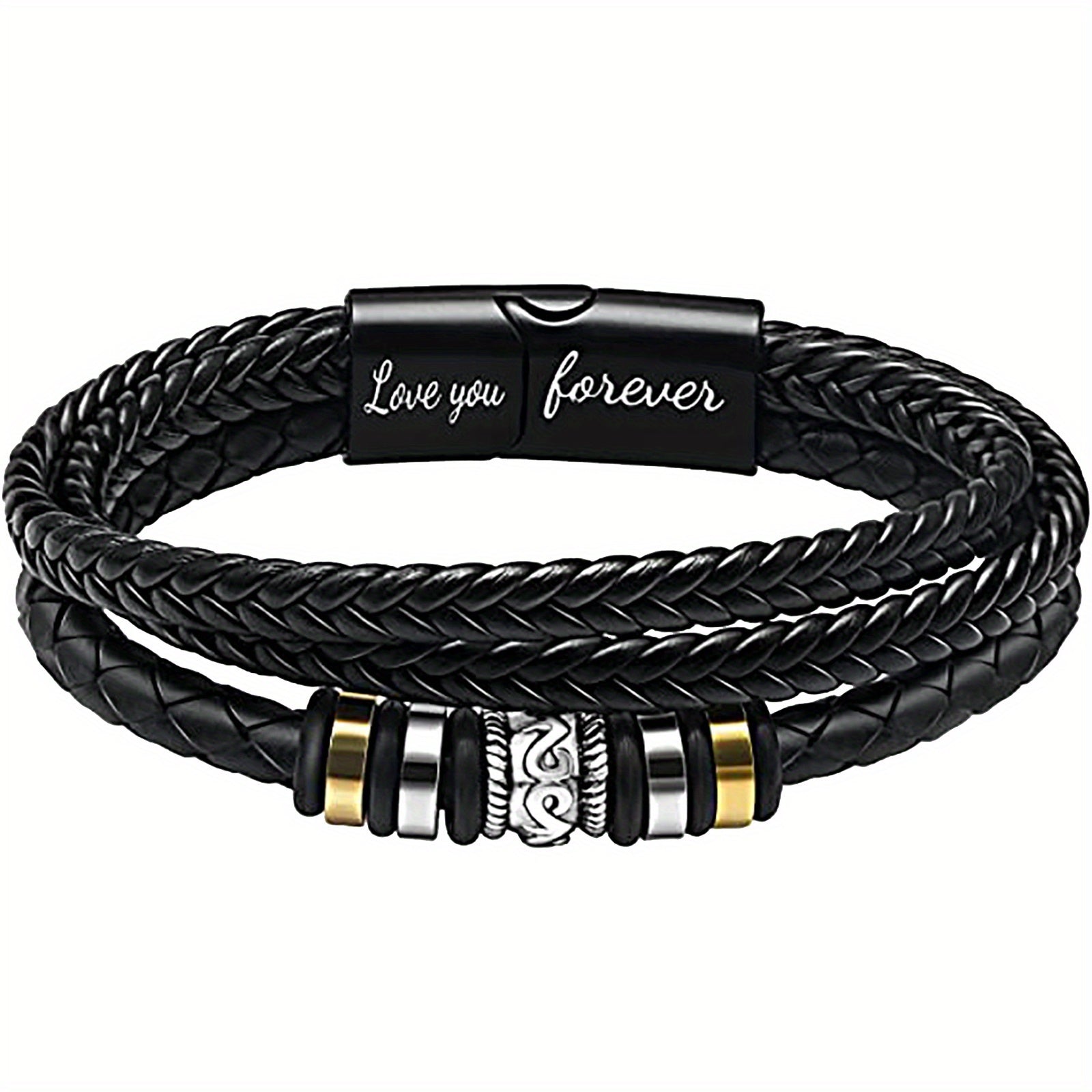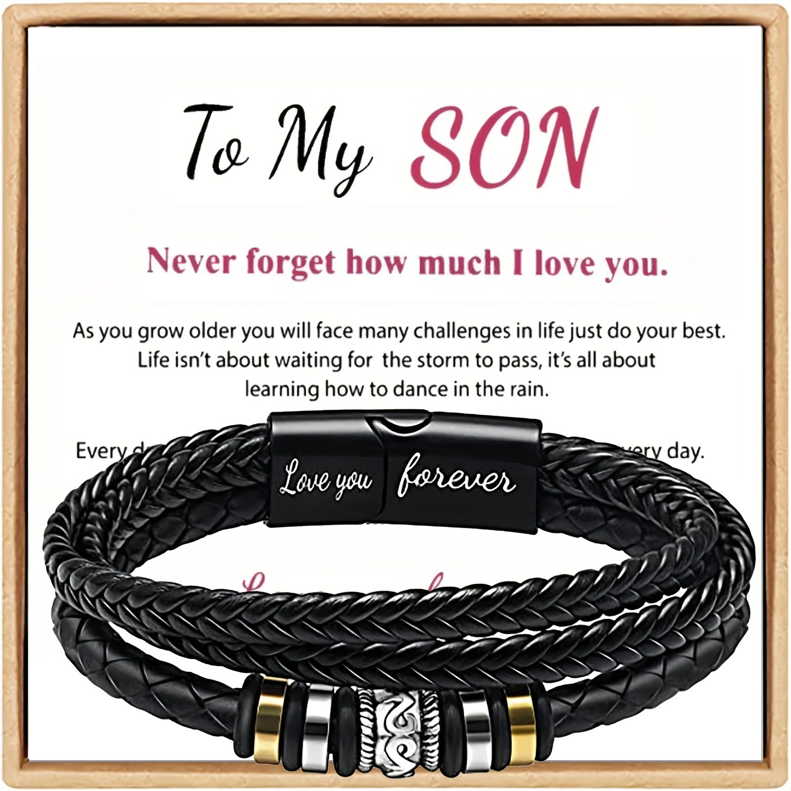 Show your love and support with this braided leather bracelet featuring a stainless steel buckle. Perfect gift for your son or grandson.