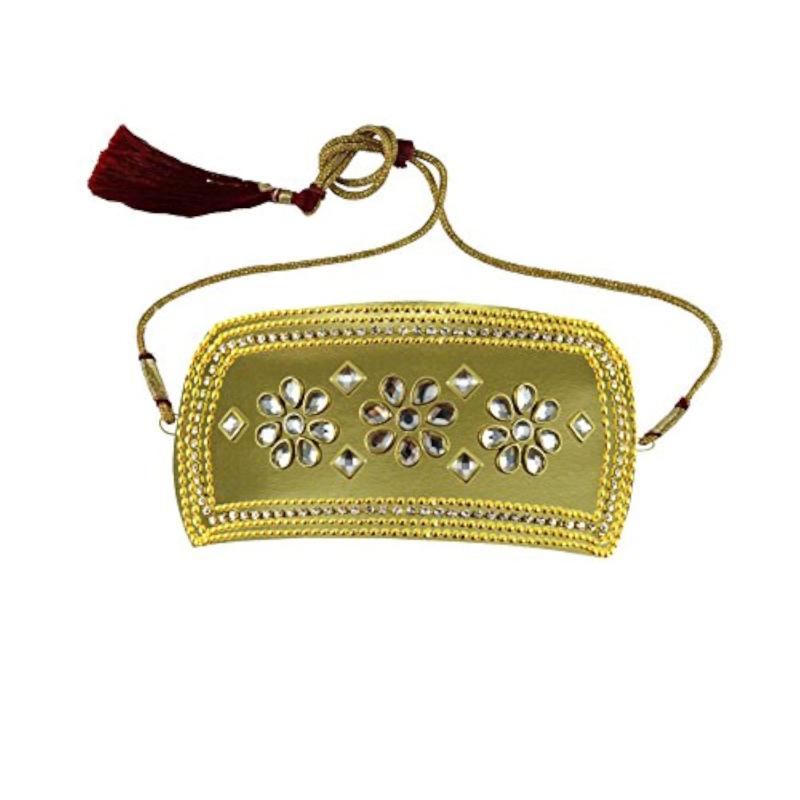 This beautiful bajubandh is made of brass with intricate stone stud detailing. Perfect for ethnic occasions.