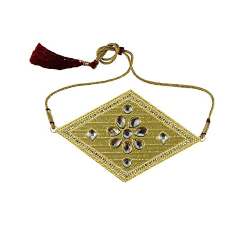 Elevate your ethnic look with this exquisite brass bajubandh featuring captivating stone studs. This free-size armband is perfect to glam up any outfit.