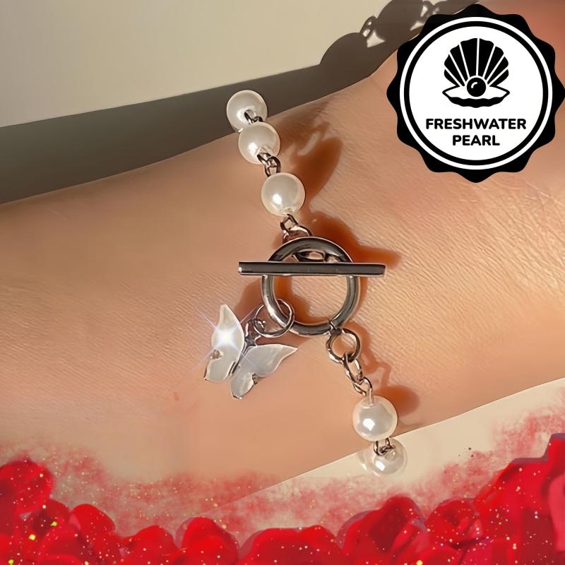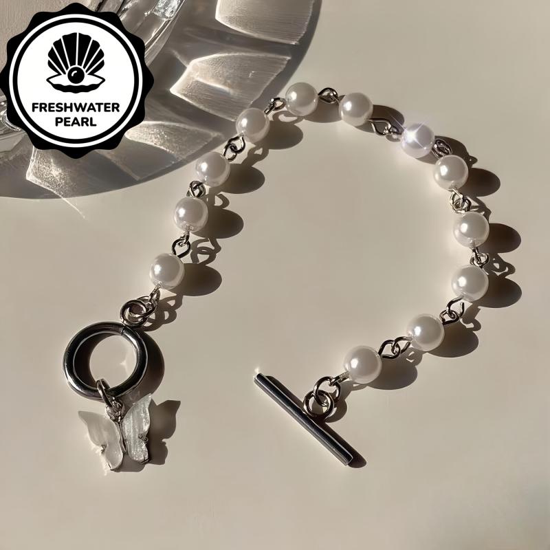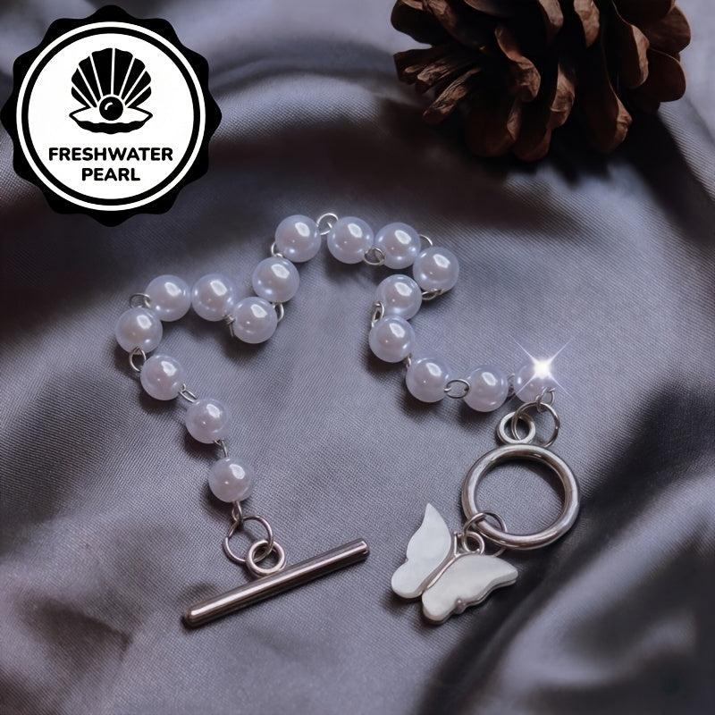 Add a touch of elegance to your outfit with this beautiful butterfly bracelet featuring freshwater pearls. An ideal gift for all seasons.