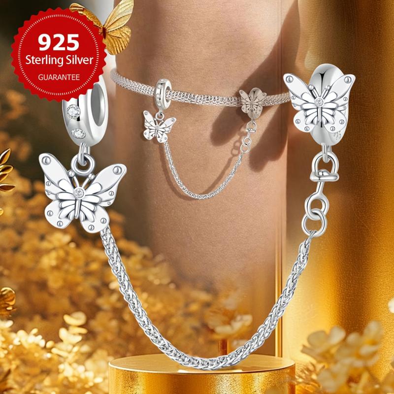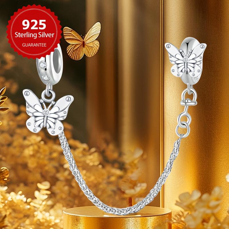 This stunning single piece butterfly safety chain is made of pure S925 silver, perfect for parties and dates. Weighing approximately 2.6 grams, it is a stylish accessory.