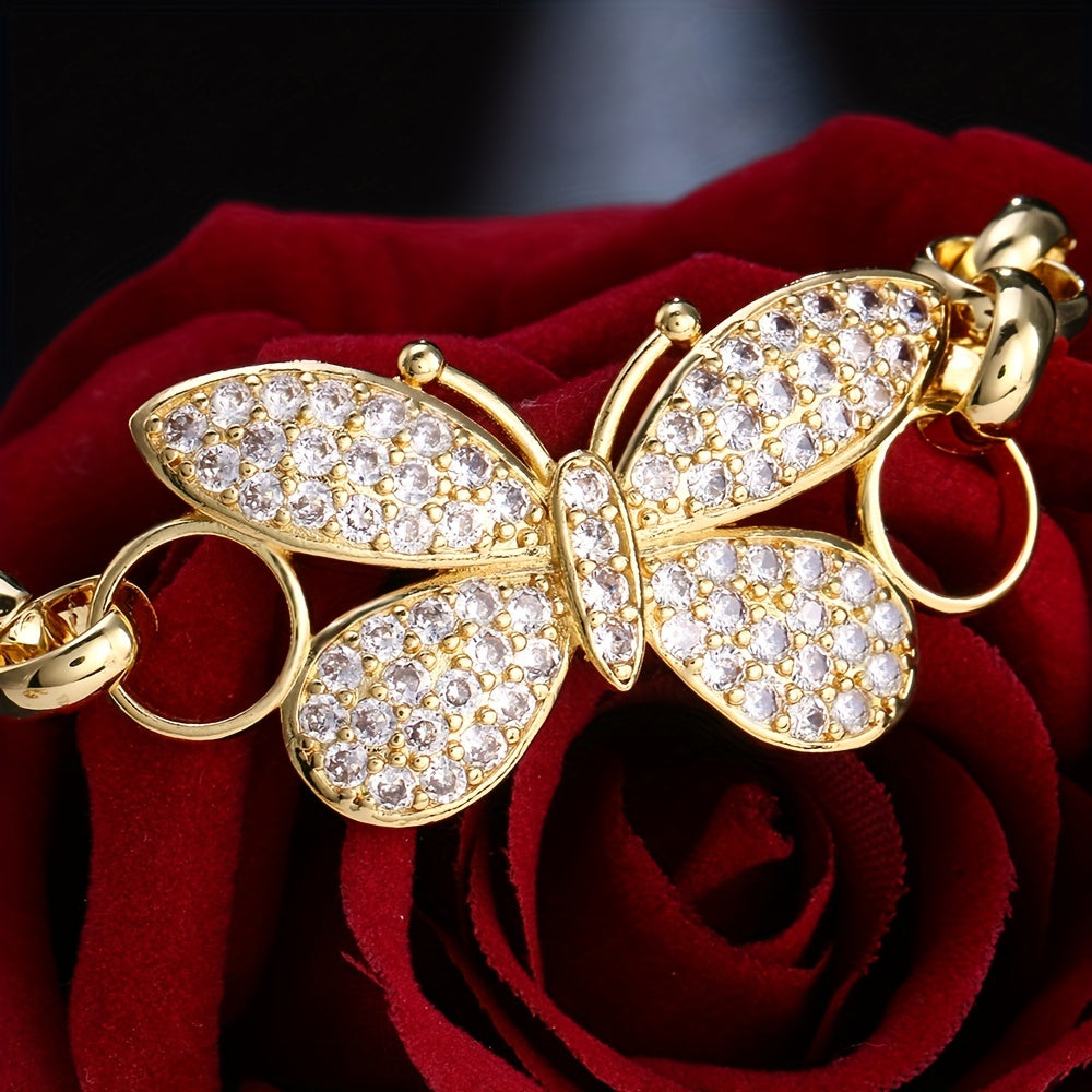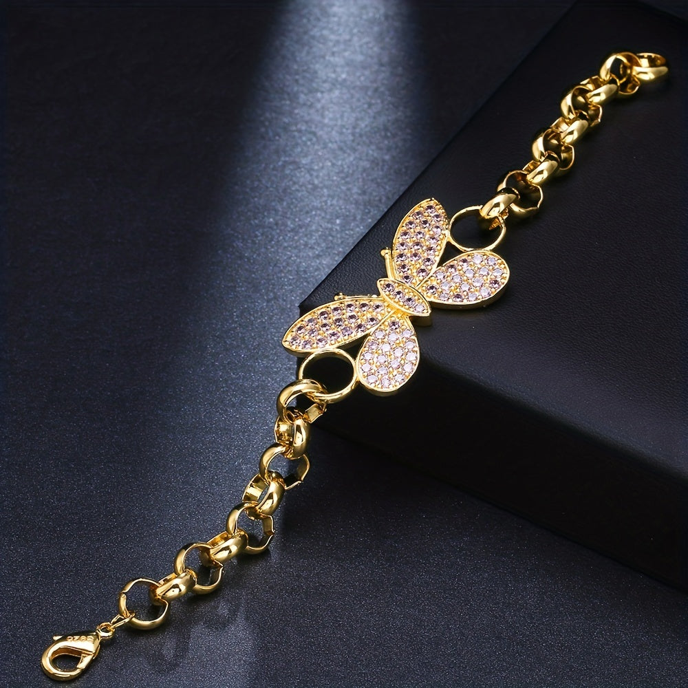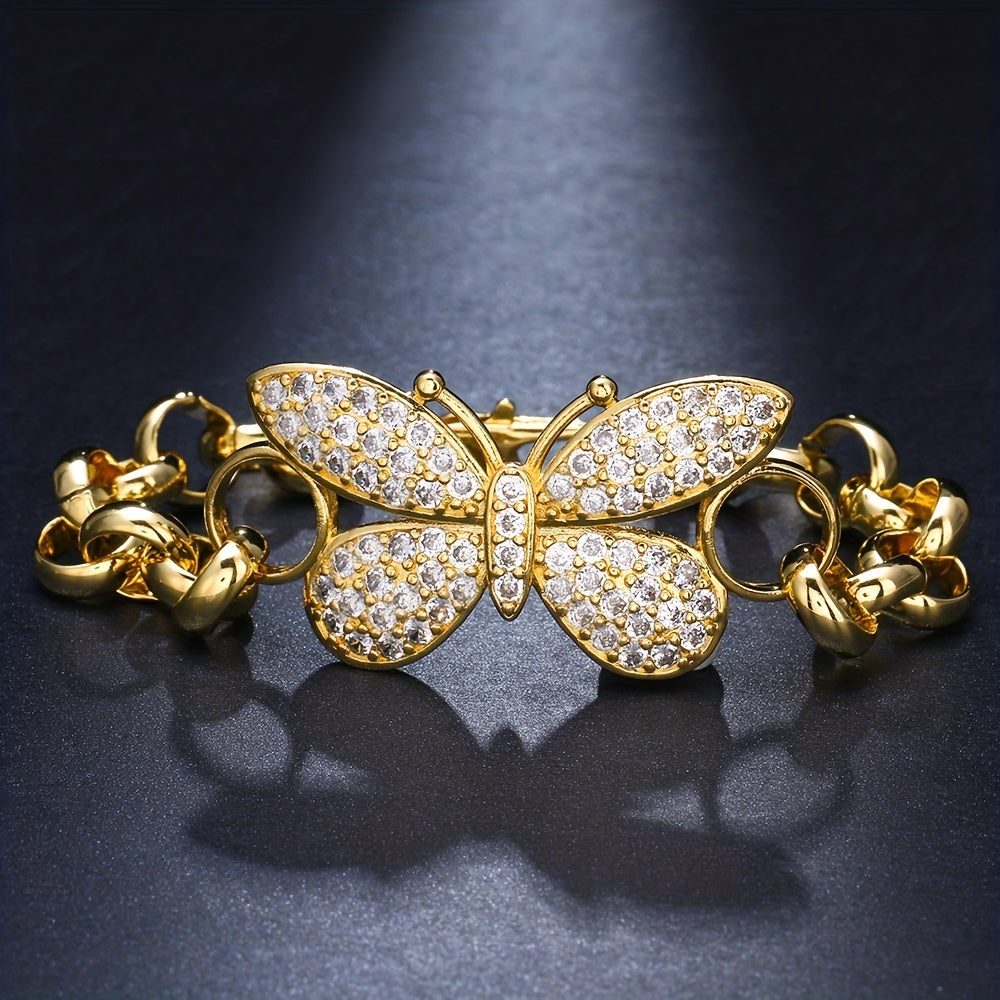This butterfly zircon bracelet is a unique and stylish accessory that adds a touch of glamour to any outfit. It features a golden hip hop design that is sure to make a statement.