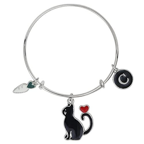 Adorn your wrist with this delightful charm bracelet featuring a C letter, raddish, and cat shaped enamel charms. Rhodium plated for extra shine.
