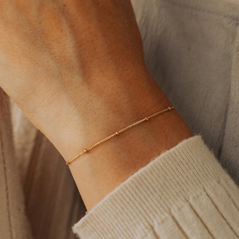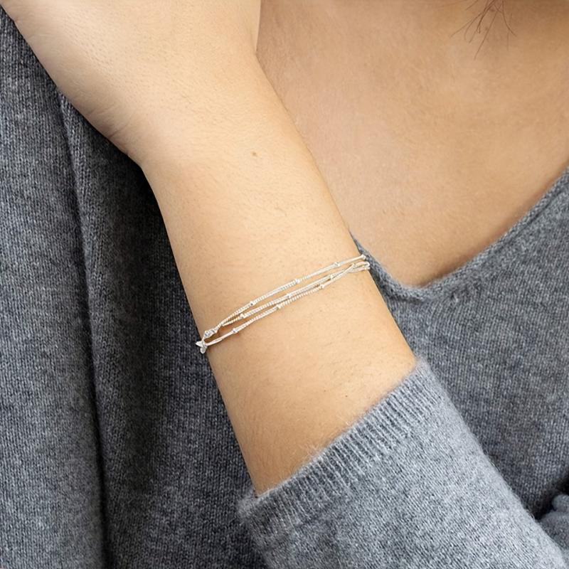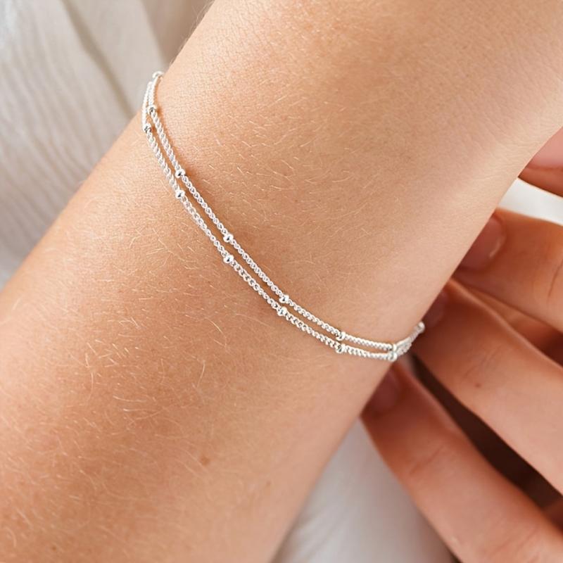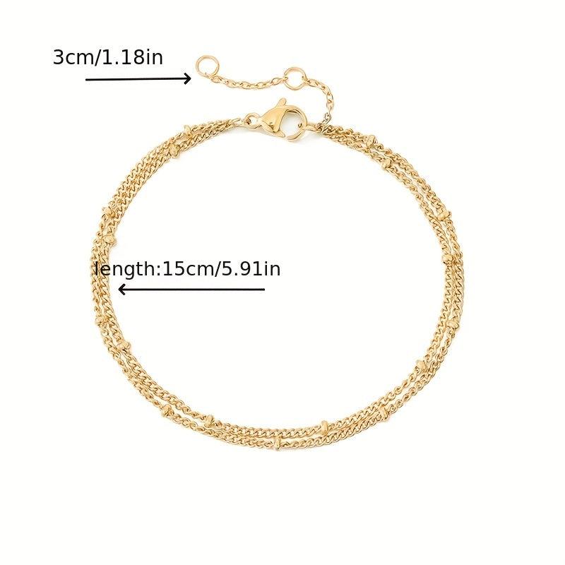Add a touch of elegance to your casual attire with this minimalist layered bead chain stainless steel bracelet. Perfect for holiday or everyday wear.