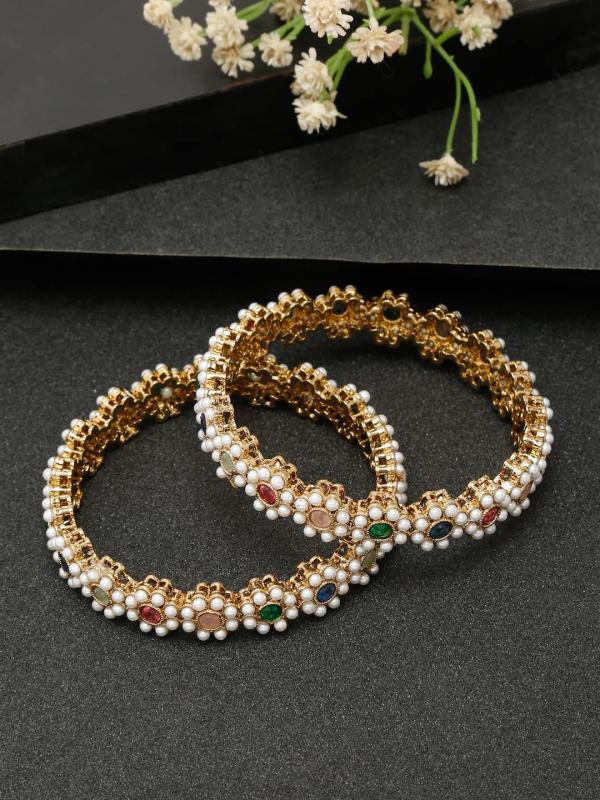 Elevate your style with this stunning set of plated bangles, inspired by celebrity fashion trends. Perfect for adding a touch of glamour to any outfit.