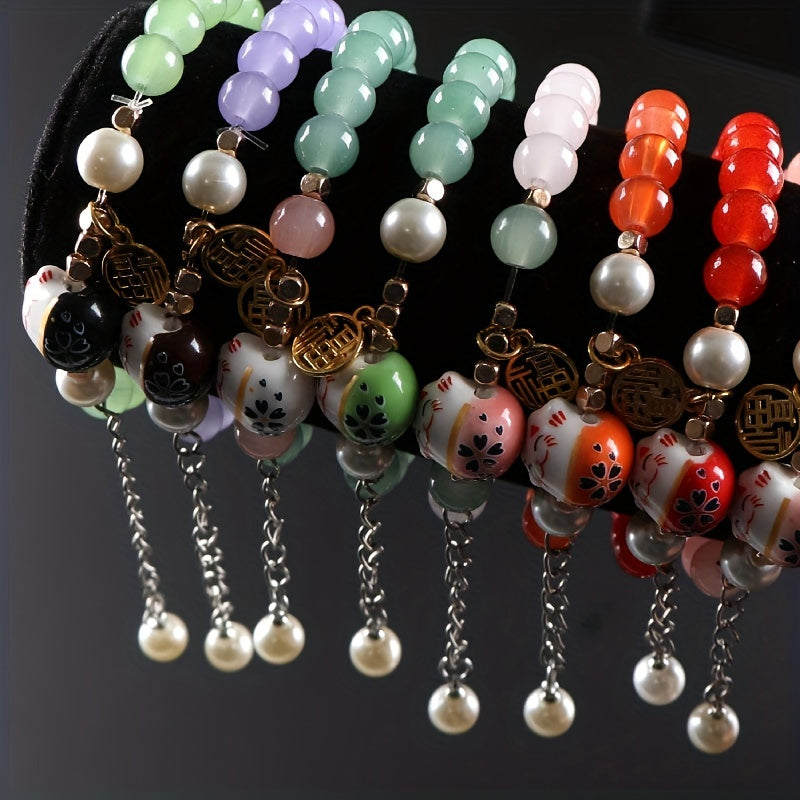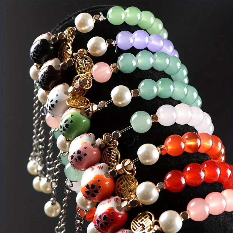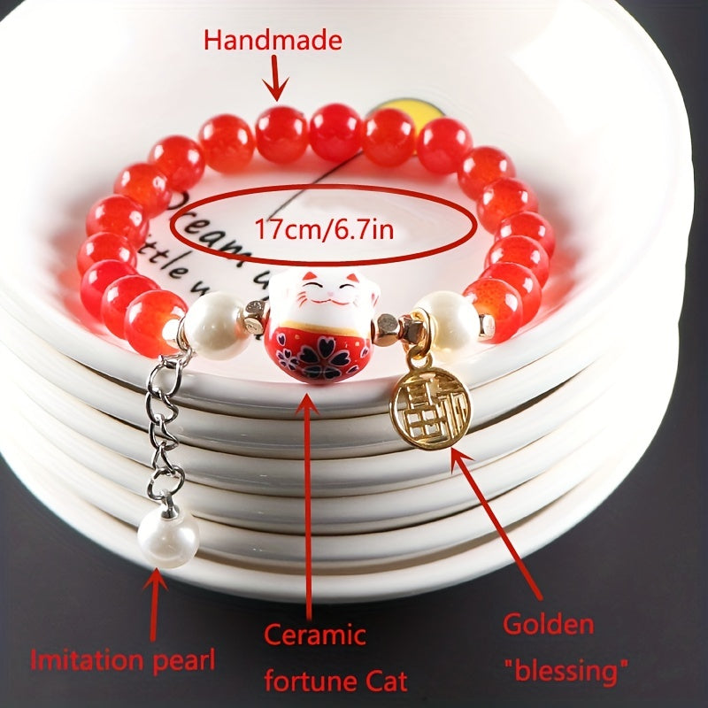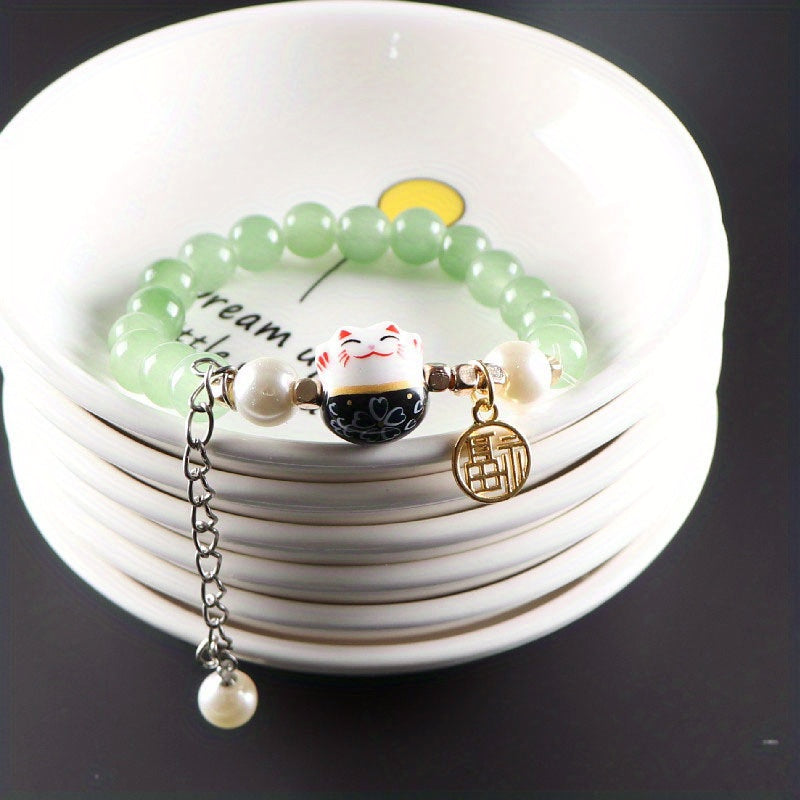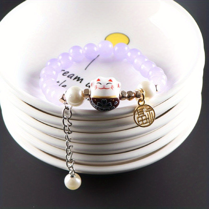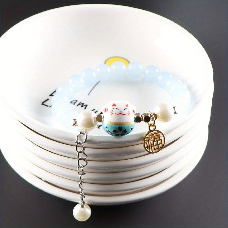 Bring good luck and style with this ceramic lucky cat bracelet designed for men. Handcrafted with attention to detail, this unique piece is a great addition to any outfit.