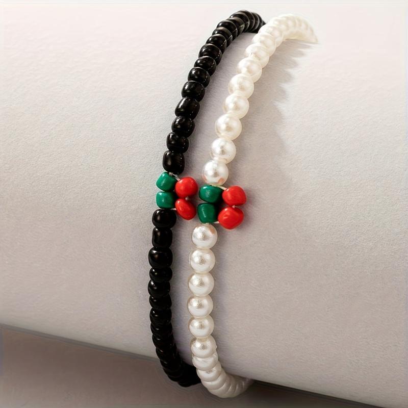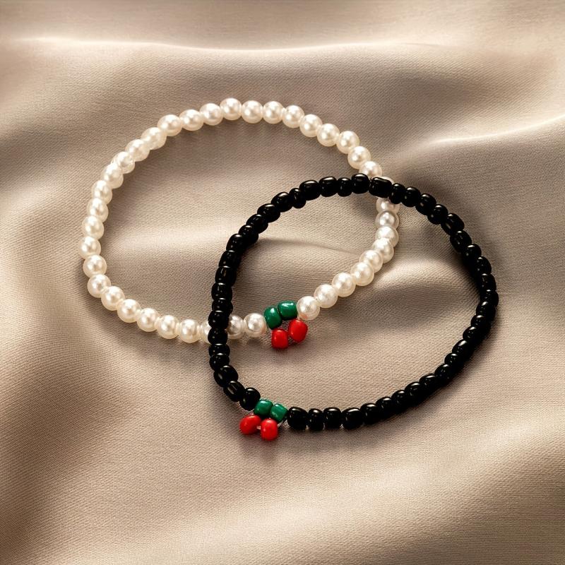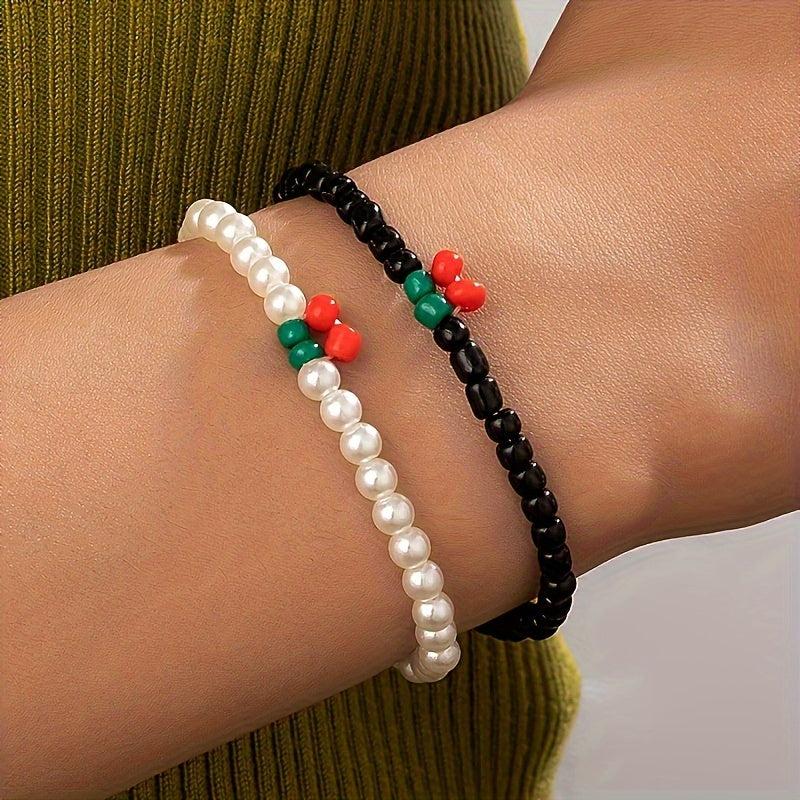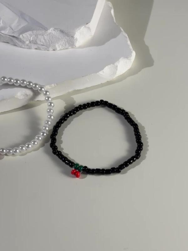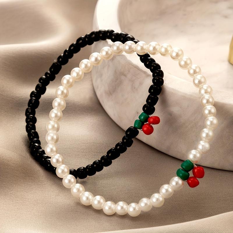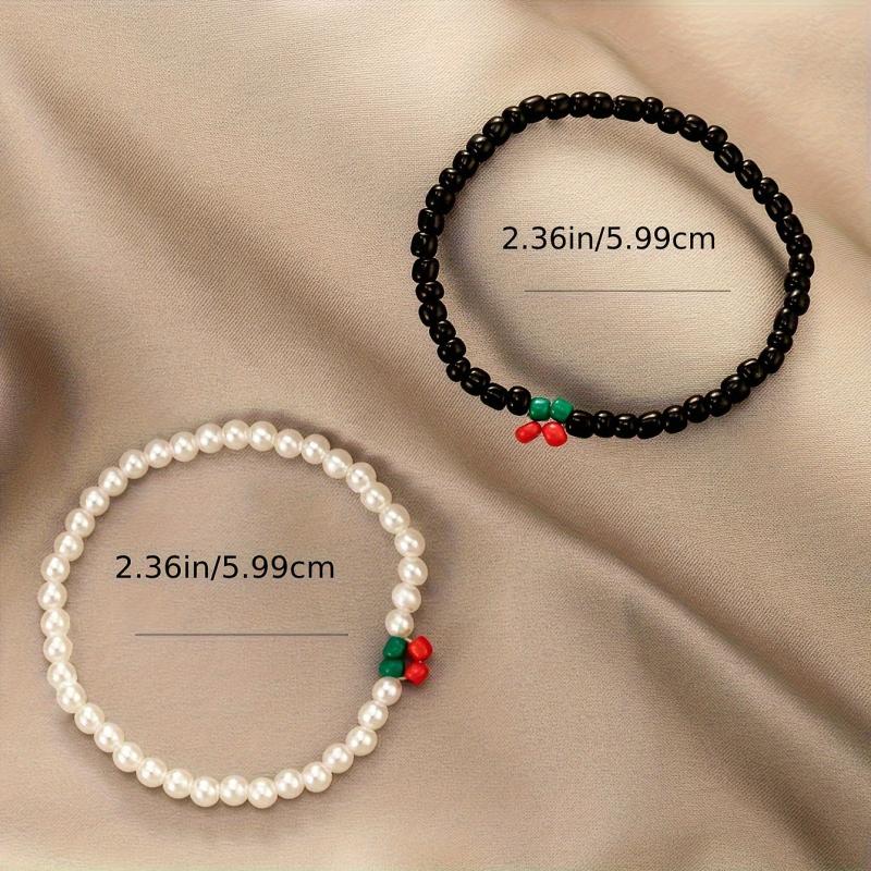Elevate your look with this 2-piece bracelet set featuring cherry and faux pearl beads. Perfect for parties, dates, and casual attire.