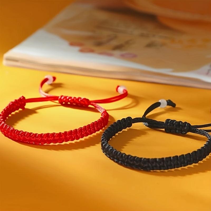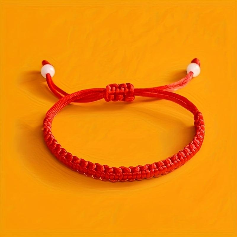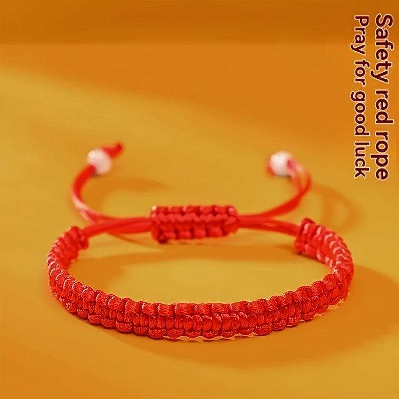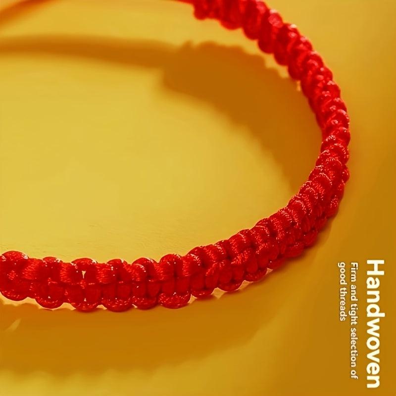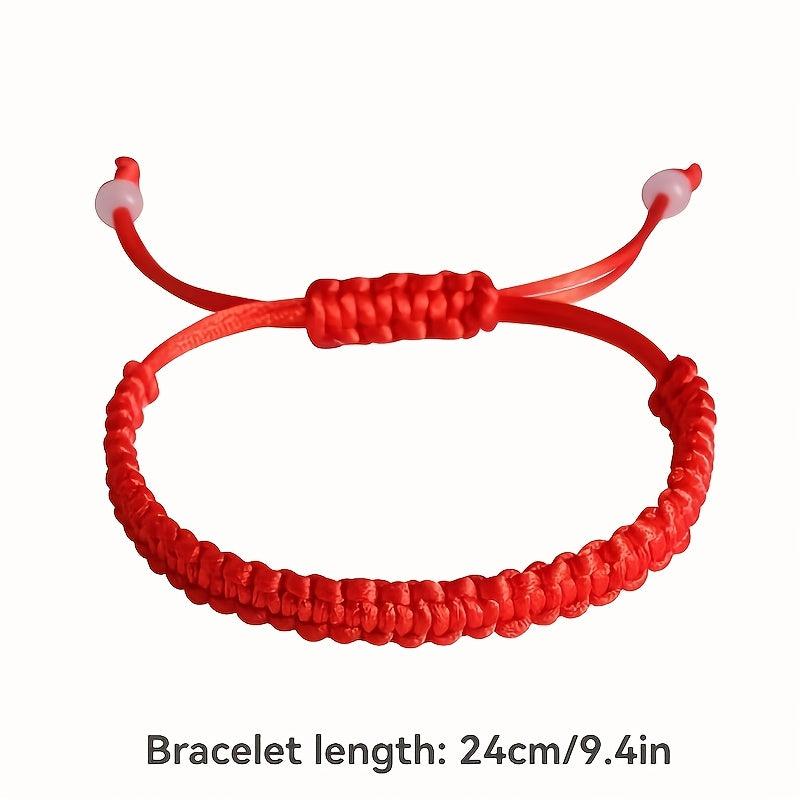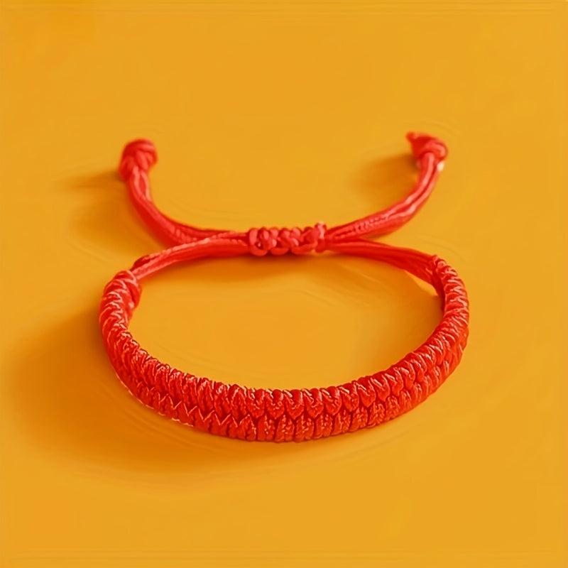 Hand-woven Chinese knot bracelet in classic red color, suitable for men and women. Made with durable materials, perfect for casual attire or as a cultural accessory gift idea.