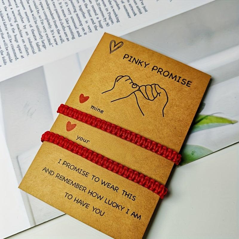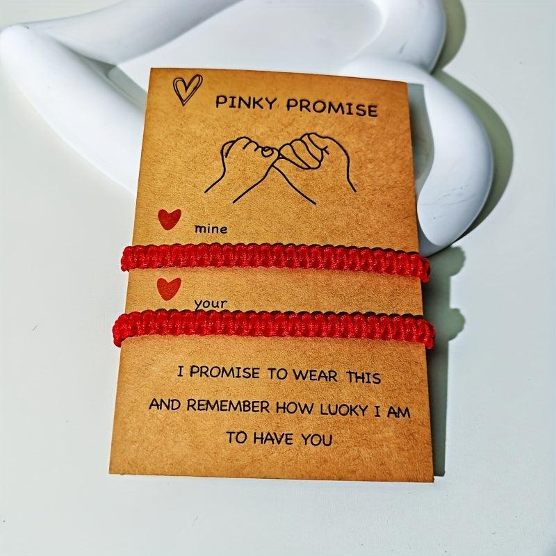 These hand woven red bracelets are a perfect Valentine's gift for couples. The adjustable design fits both boyfriend and girlfriend.