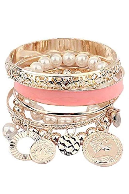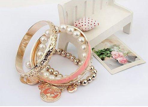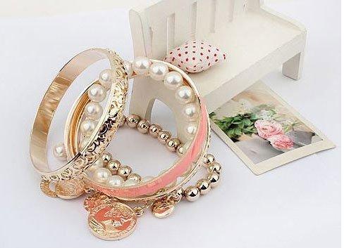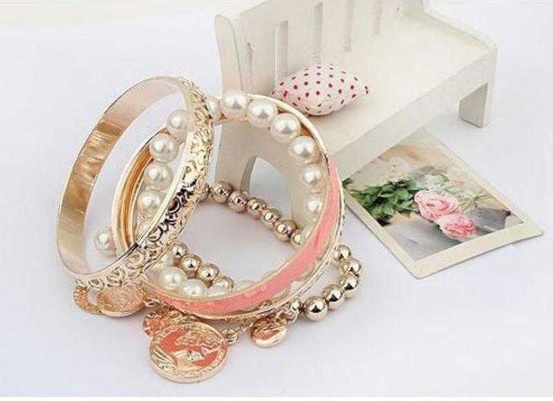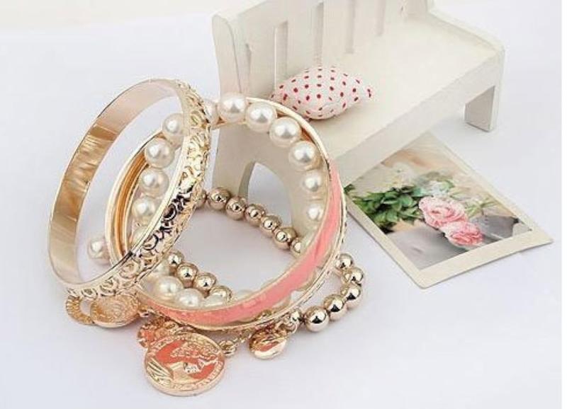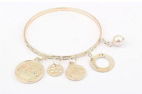 Enhance your style with this elegant charm bracelet showcasing a collection of pearl coins. Perfect for a touch of sophistication.